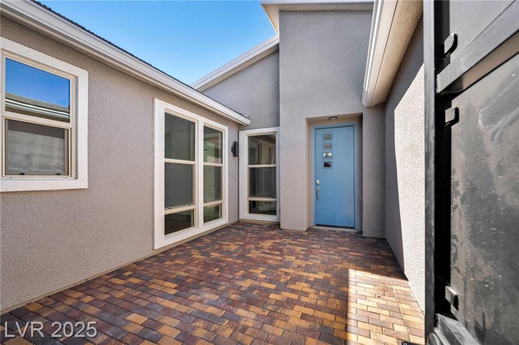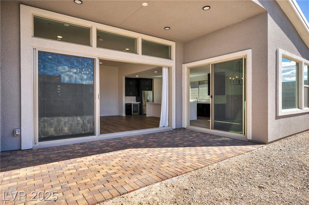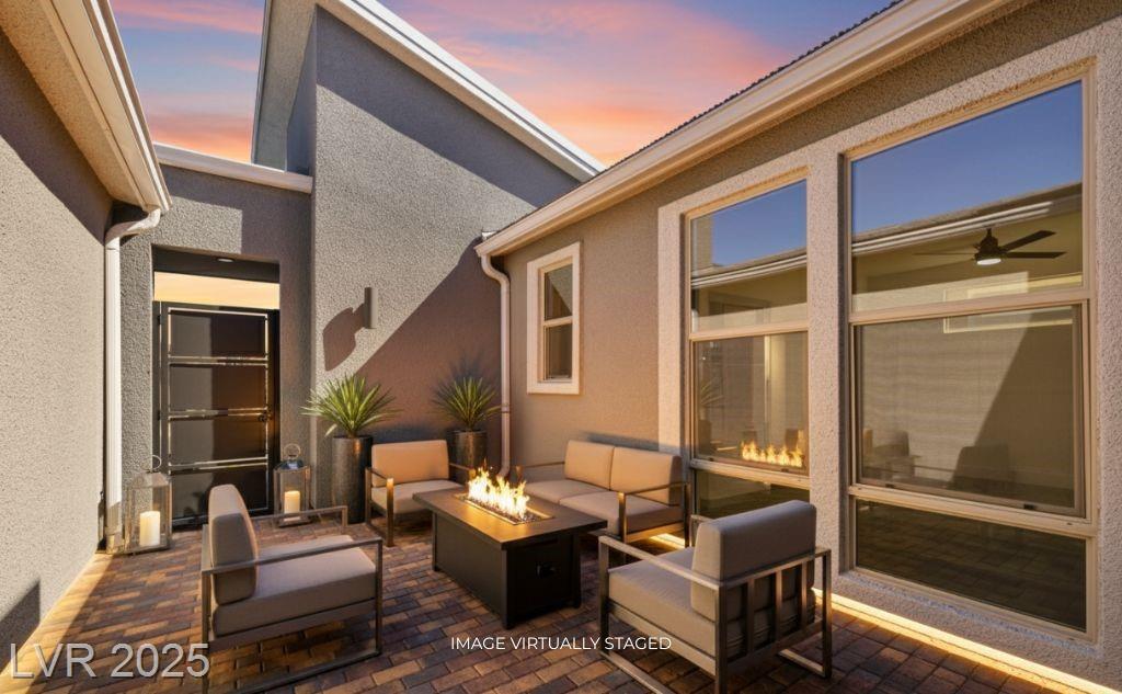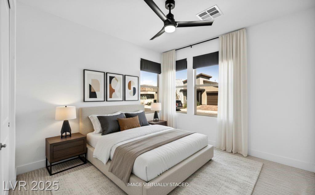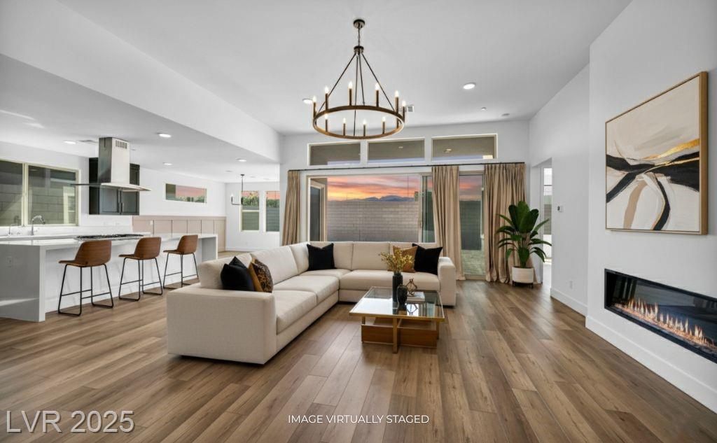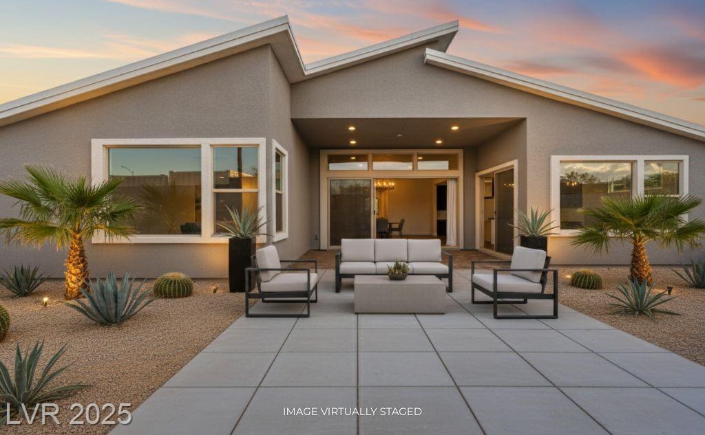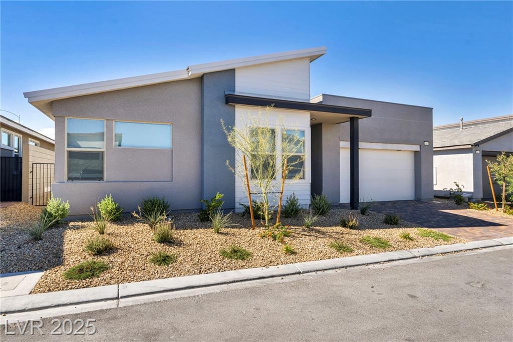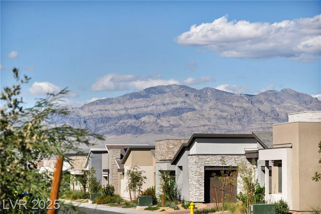 Welcome to this barely lived-in Tripointe home in the gated Alpine Ridge community at Kyle Pointe! Completed in June 2024, this largest Plan 3 model sits within a single-story community at Kyle Pointe and boasts over $126,000 in sleek modern upgrades. Enjoy 10’ ceilings, a sliding stacking door for seamless indoor/outdoor living, and a gated entry courtyard. The chef’s kitchen features double-stacked espresso cabinets, a waterfall quartz island, chef’s hood, wine fridge, and walk-in pantry. The luxurious primary suite offers vaulted ceilings, an oversized spa-style shower, and a massive walk-in closet connected to the laundry room. 3 additional bedrooms, two full baths, and a versatile den occupy a separate wing for added privacy. Additional highlights include a 3-car tandem garage with EV plug, full home water filtration system, and tankless water heater. Set on a pool-sized lot with backyard views of Mt. Charleston, just minutes from the 95 freeway! 2 parks in community.
