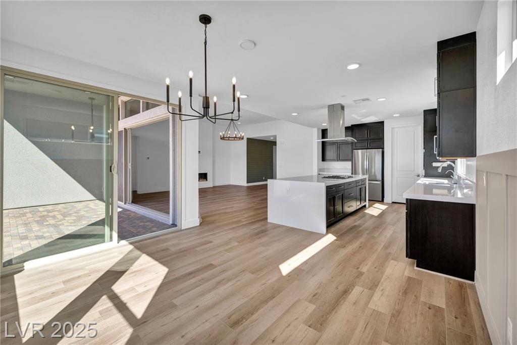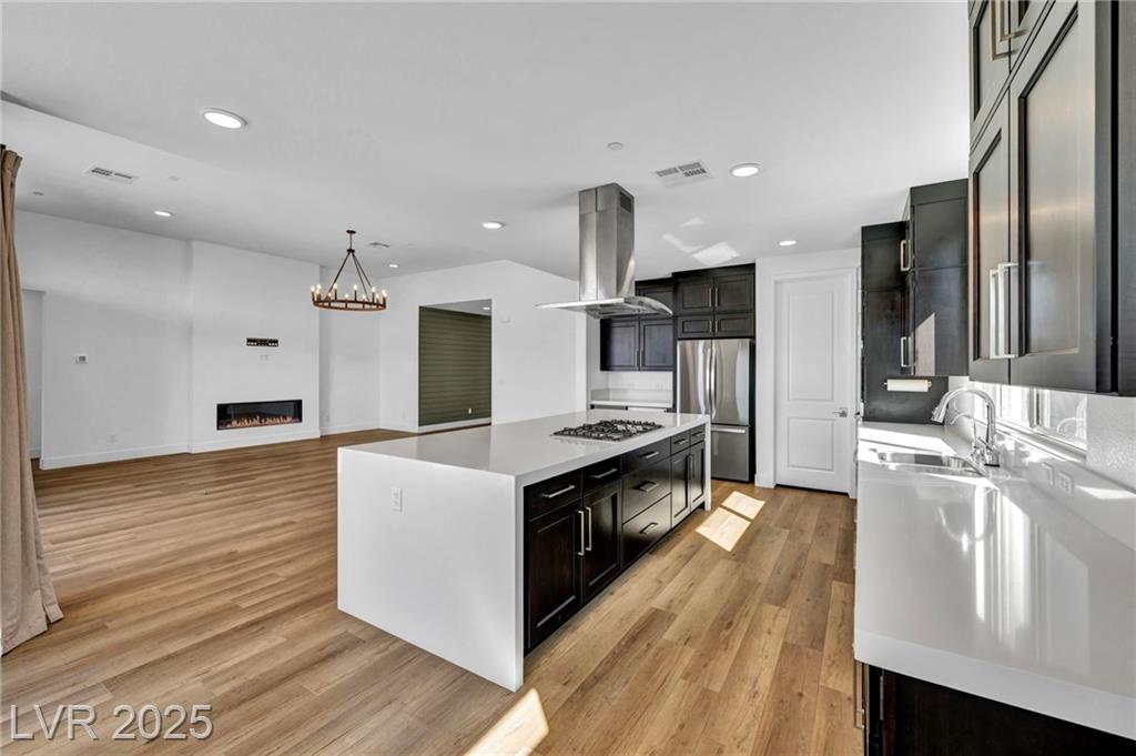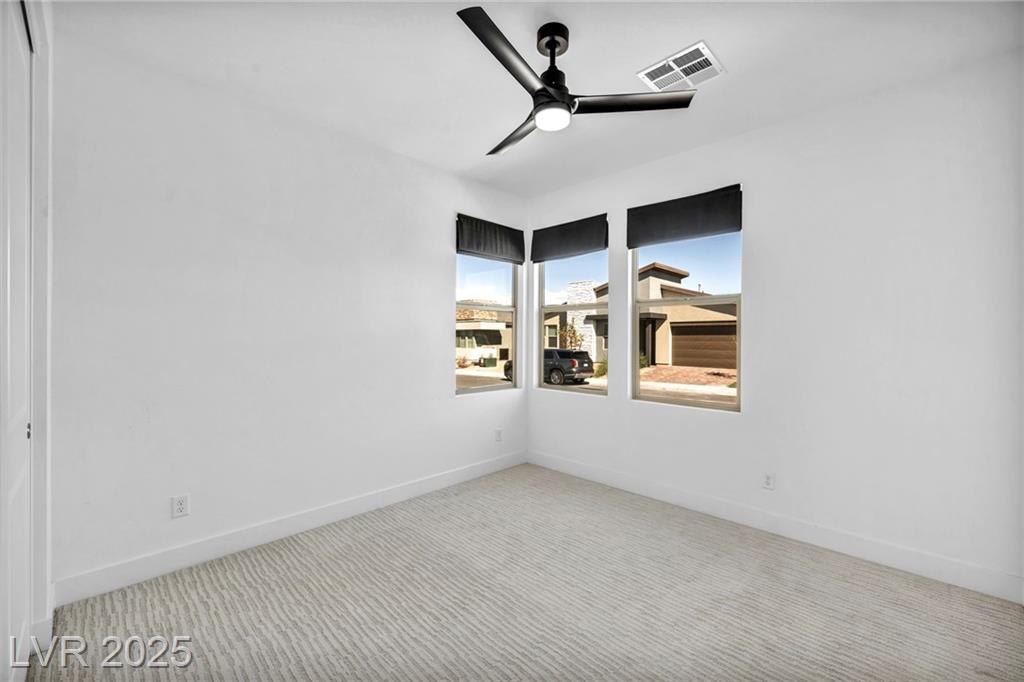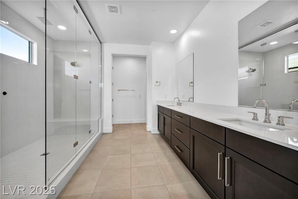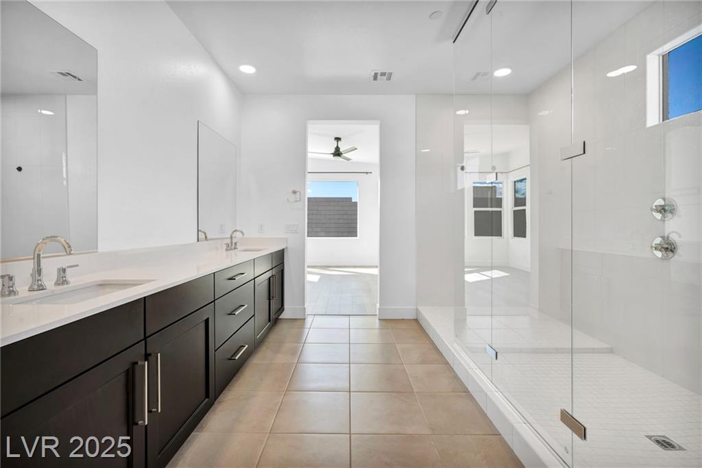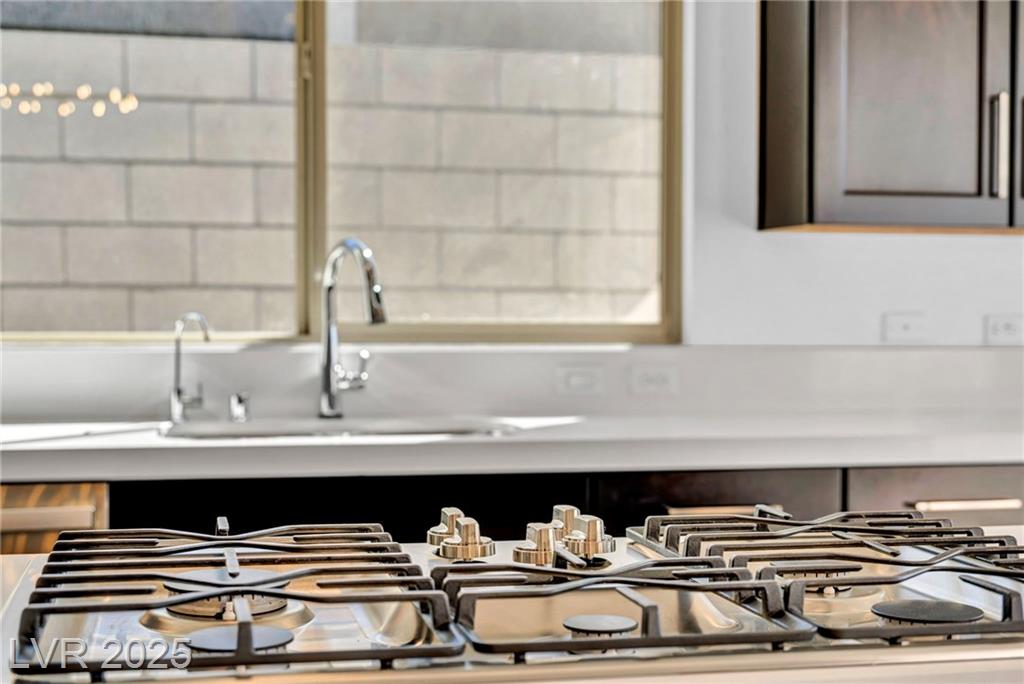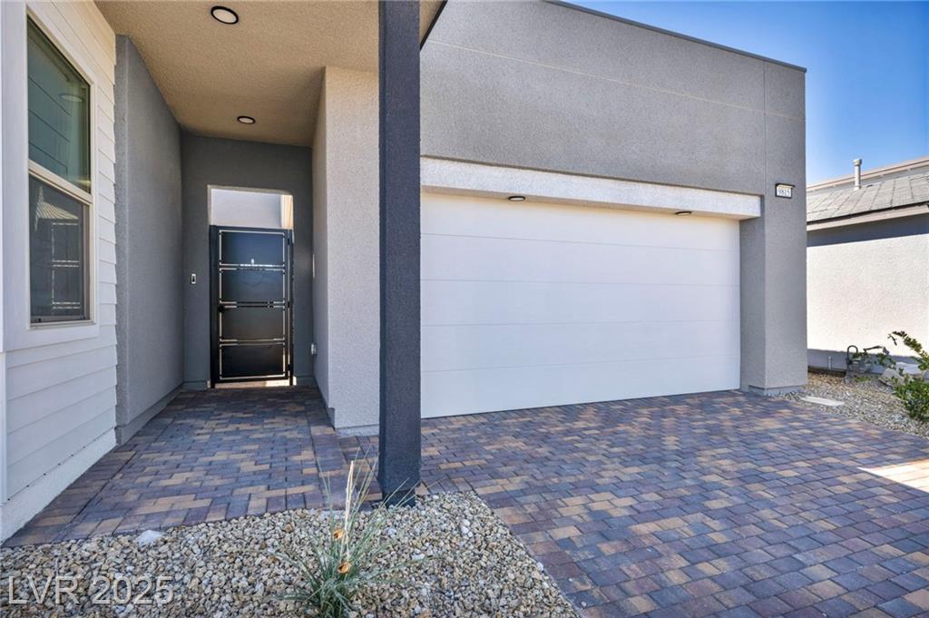 Welcome to this barely lived-in Tripointe home in the gated Alpine Ridge community at Kyle Pointe! Completed in June 2024, this largest Plan 3 model sits within a single-story community at Kyle Pointe and boasts over $126,000 in sleek modern upgrades. Enjoy 10’ ceilings, a sliding stacking door for seamless indoor/outdoor living, and a gated entry courtyard. The chef’s kitchen features double-stacked espresso cabinets, a waterfall quartz island, chef’s hood, wine fridge, and walk-in pantry. The luxurious primary suite offers vaulted ceilings, an oversized spa-style shower, and a massive walk-in closet connected to the laundry room. 3 additional bedrooms, two full baths, and a versatile den occupy a separate wing for added privacy. Additional highlights include a 3-car tandem garage with EV plug, full home water filtration system, and tankless water heater. Set on a pool-sized lot with backyard views of Mt. Charleston, just minutes from the 95 freeway! 2 parks in community.