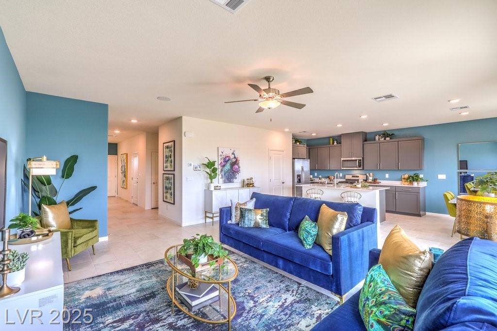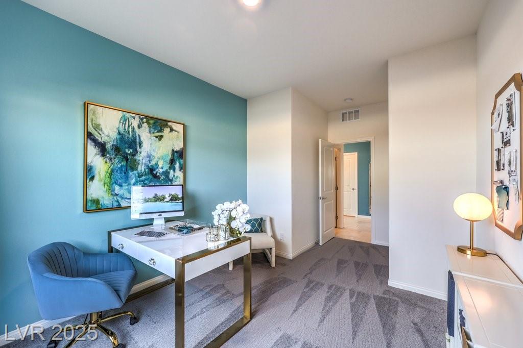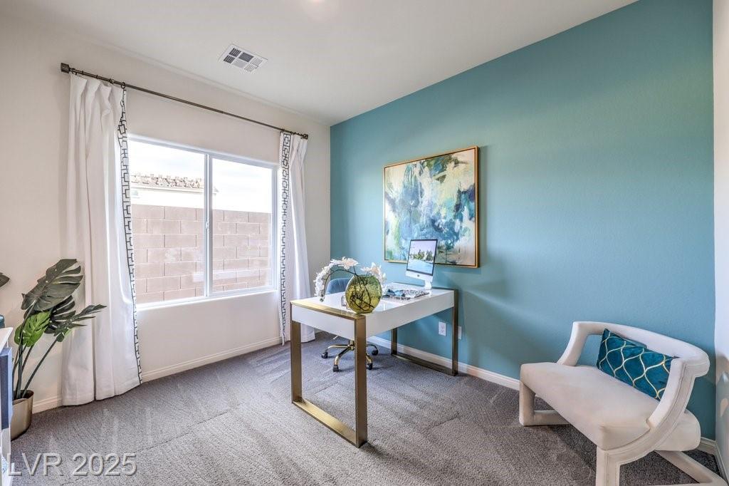 From 215, take the Revere exit and go North. Go left on Tule Springs Parkway. Left on Eglington and follow the road around to the right. The sales office is on the right at 7464 Dominguez Bay Dr, North Las Vegas, NV 89084.