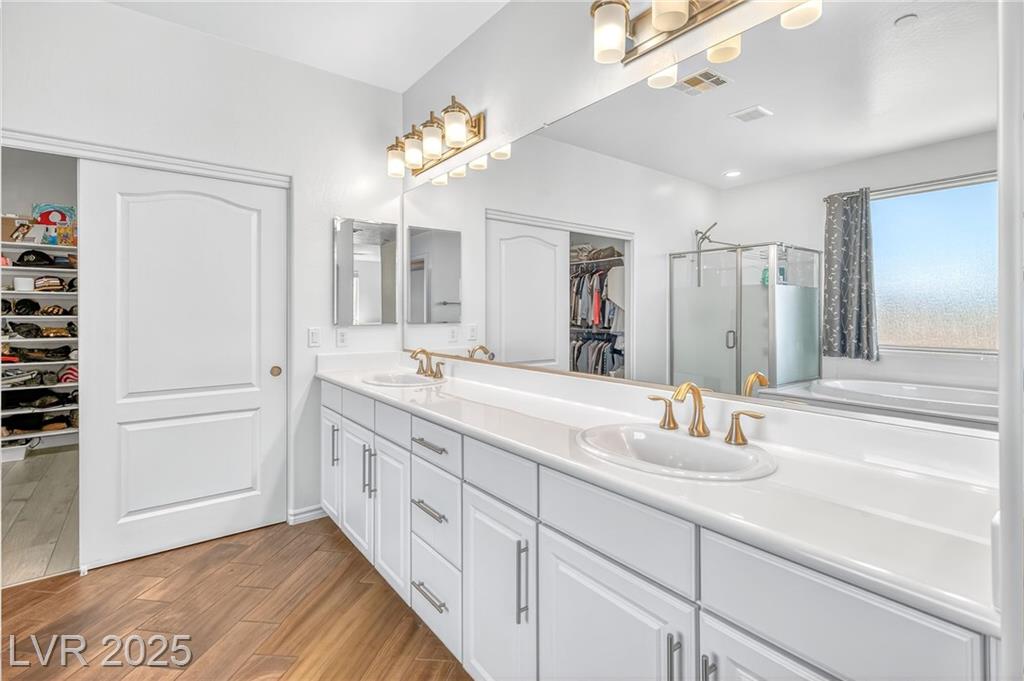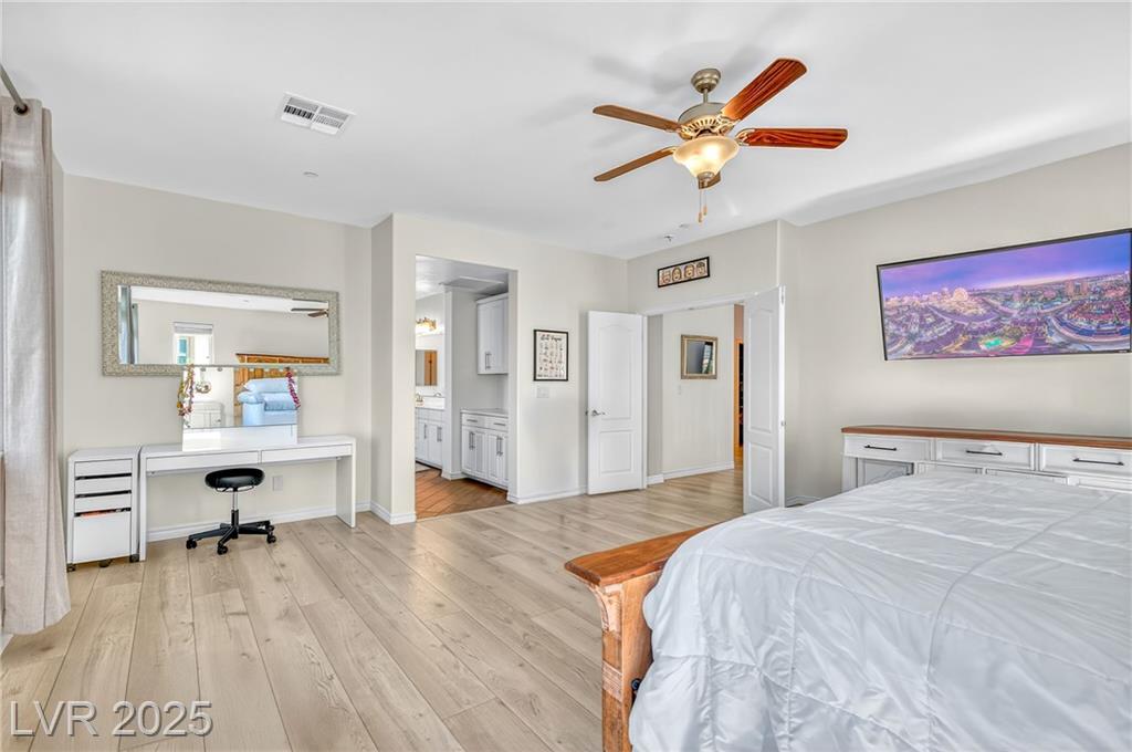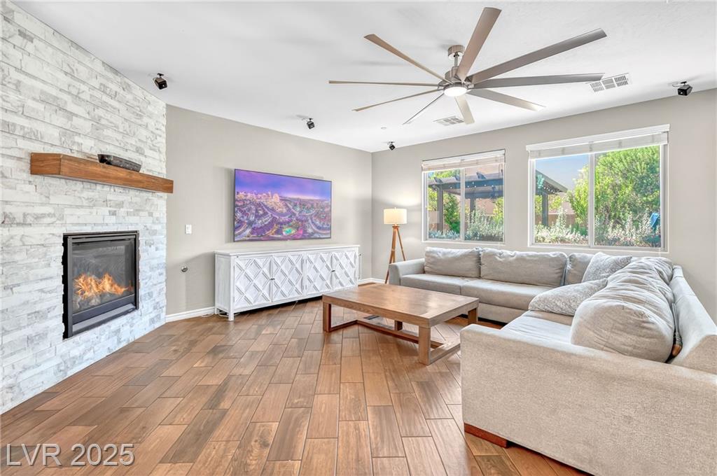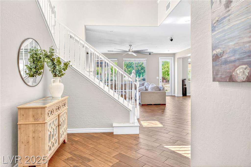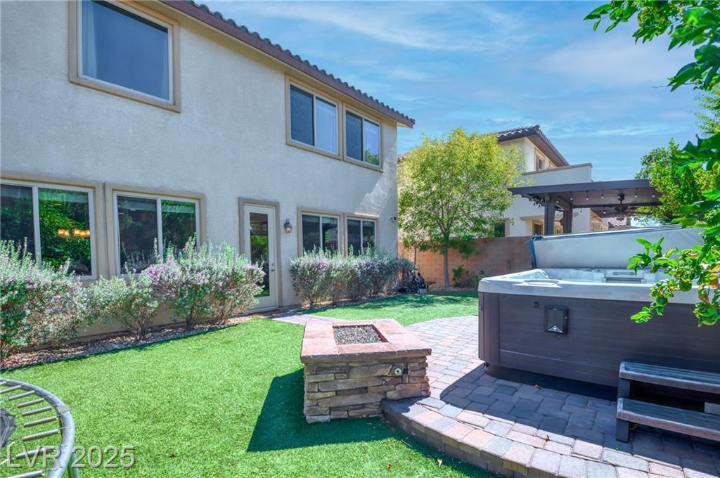 Elegant 4-bdrm home in Tuscany Village, one of Henderson’s most desirable guard-gated communities. Offering 3,200+ sq. ft., 3 baths, an expansive loft perfect for an office, & 3-car garage, this home is in excellent condition w/ a modern, open floor plan. The kitchen boasts a lrg island, SS appliances & butler’s pantry, opening to a great room w/ soaring ceilings. Updates include newer lighting, ceiling fans, & beautiful flooring throughout. The upstairs primary suite features a spa-inspired bath & luxe finishes. Outdoors... a private backyard oasis w/ custom spa, gas firepit & gazebo, ideal for entertaining. Home is equipped w/ a premium fixed-rate solar system for maximum energy efficiency & savings, plus an EV charger. Tuscany Village residents enjoy resort-style amenities: pool, spa, golf, tennis, racquetball, clubhouse, gym, & parks. HOA fees are approx. $220/mo—lower than many Las Vegas communities. Only 15 miles from the Strip, this Henderson home offers luxury & sustainability.