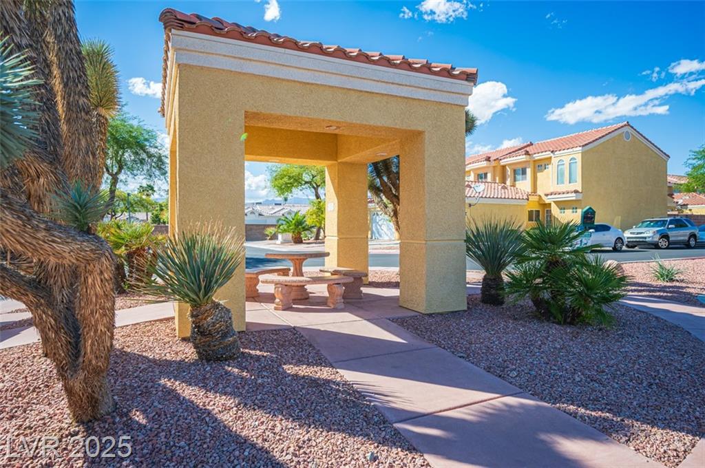 Welcome to this HIGHLY UPDATED 3-bedroom, 2-bathroom, 2-CAR GARAGE townhome nestled in a quiet, GATED COMMUNITY. Open floor plan with lots of natural light. BEDROOM and a full bathroom DOWNSTAIRS make it ideal for guests, a home office, or multigenerational living. Upstairs, you'll find a spacious primary suite with a massive walk-in closet and mountain views, a full bathroom, and an additional bedroom. LARGE, fully fenced, PRIVATE, and low maintenance BACKYARD—ideal for relaxing or entertainment. Community features a POOL, SPA, and plenty of guest parking. PRIME SPRING VALLEY LOCATION to groceries, restaurants, schools, and Downtown Summerlin shopping. This home has it all!