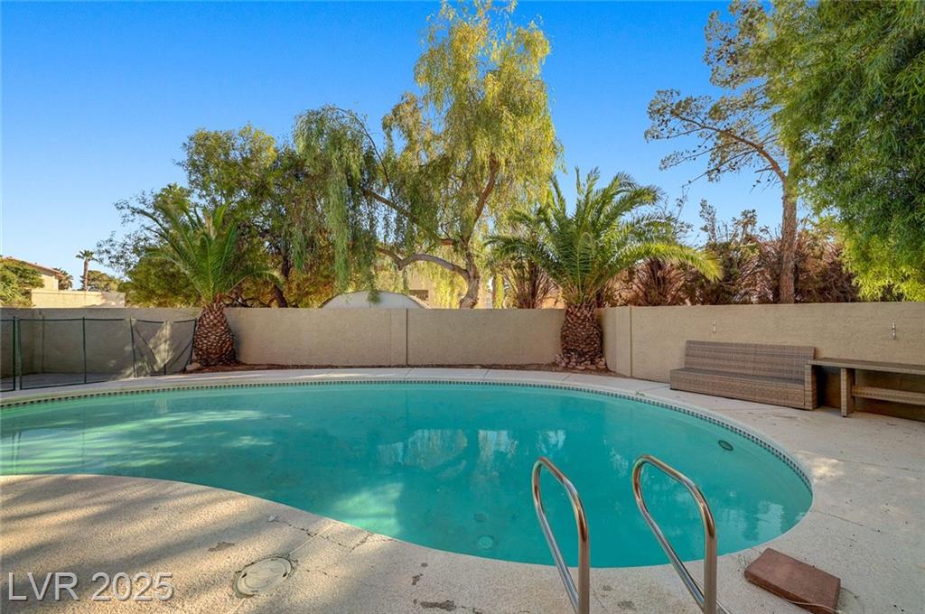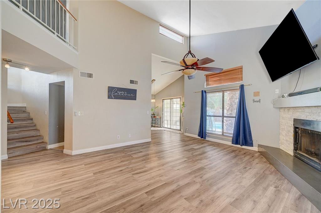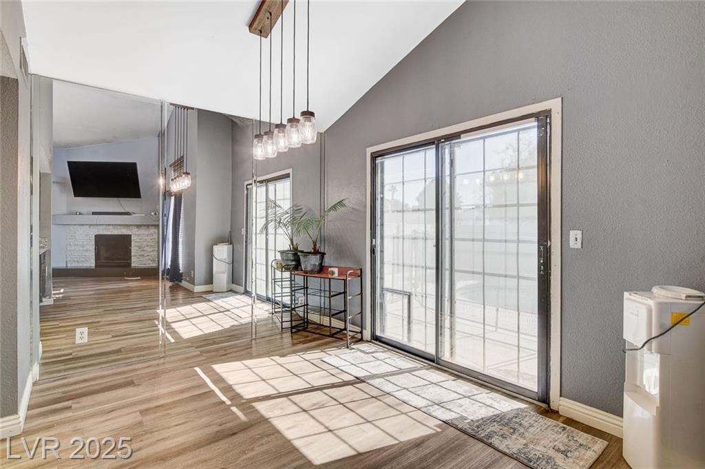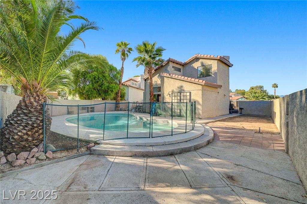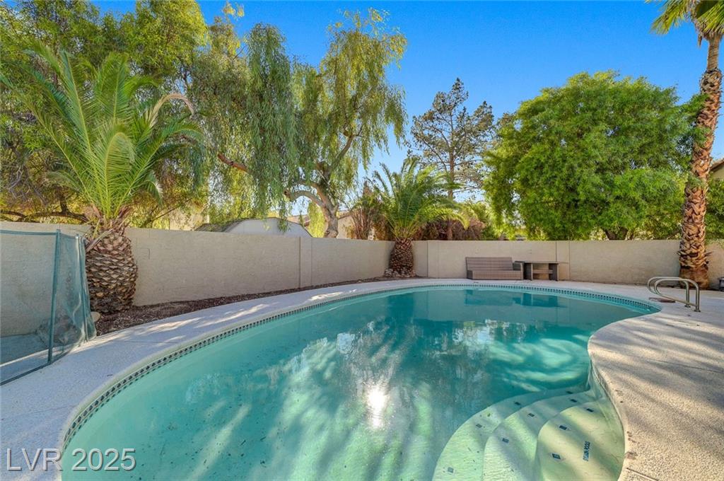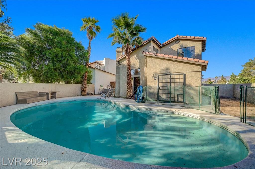 Located in the desirable Northwest area of Las Vegas, this beautiful 2 story CORNER LOT home has it all! Featuring 4 bedrooms and 2.5 baths, with the primary bedroom conveniently downstairs—complete with stylish barn doors, a walk-in closet with built in organizers, and a beautifully remodeled bathroom and shower. Enjoy vaulted ceilings and a cozy gas fireplace in the living room, plus a bright dining area and a kitchen with granite countertops, stainless steel appliances, and a walk-in pantry. Laminate and tile flooring throughout, Ecobee thermostat, and solar panels for energy efficiency. The spacious backyard is perfect for entertaining with a patio, in-ground pool with BRAND NEW pool pump, and a relaxing spa. Additional highlights include a 2 car garage with storage, tankless water heater, water softener, and LOW HOA! Close to freeways, schools, shopping, dining, and more! Must see this home today!