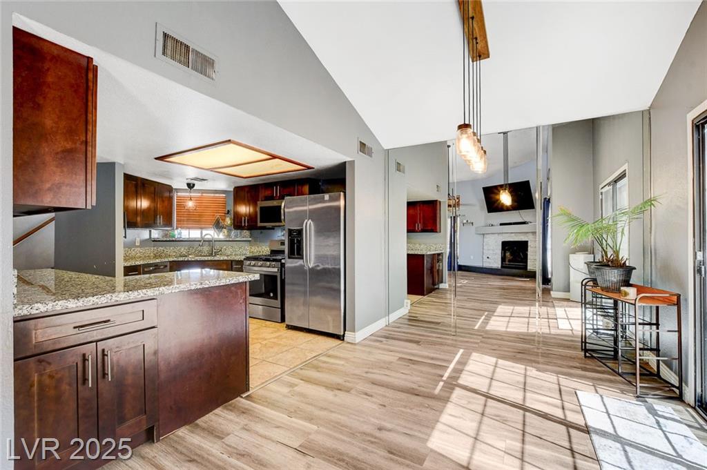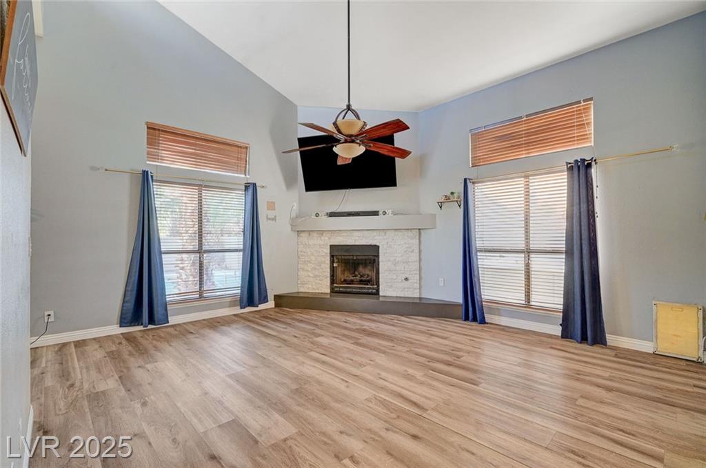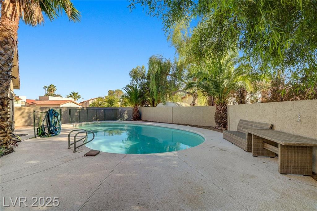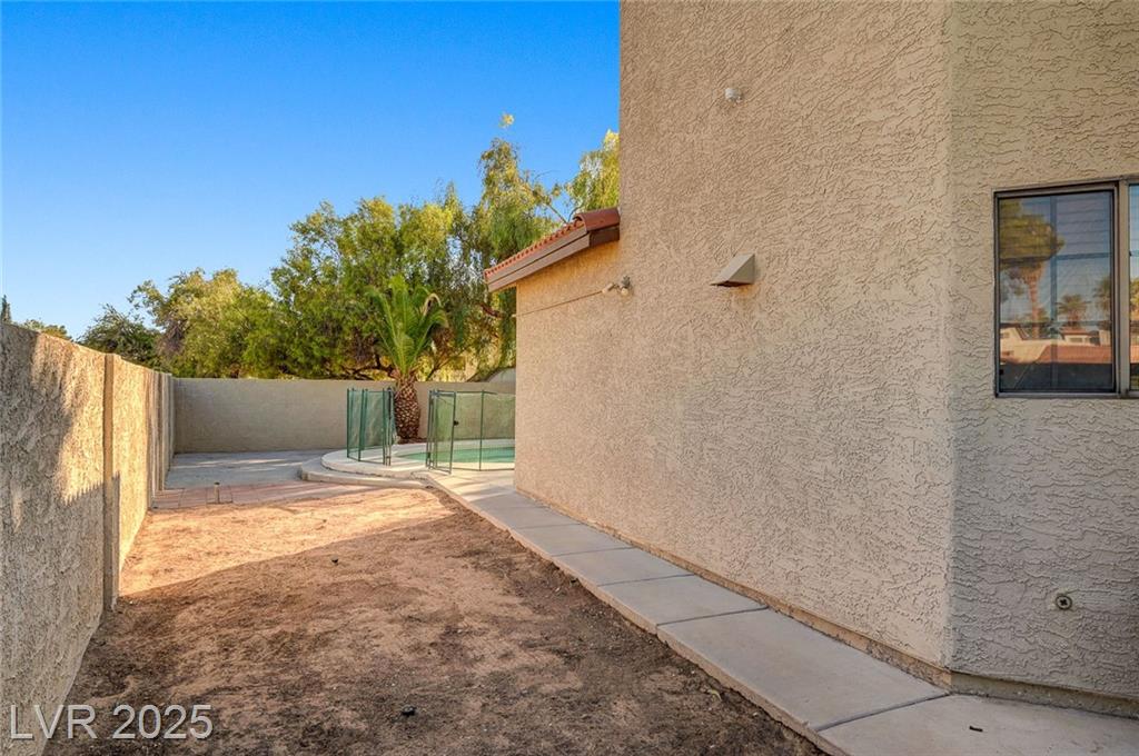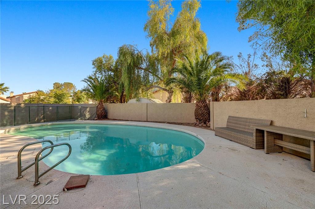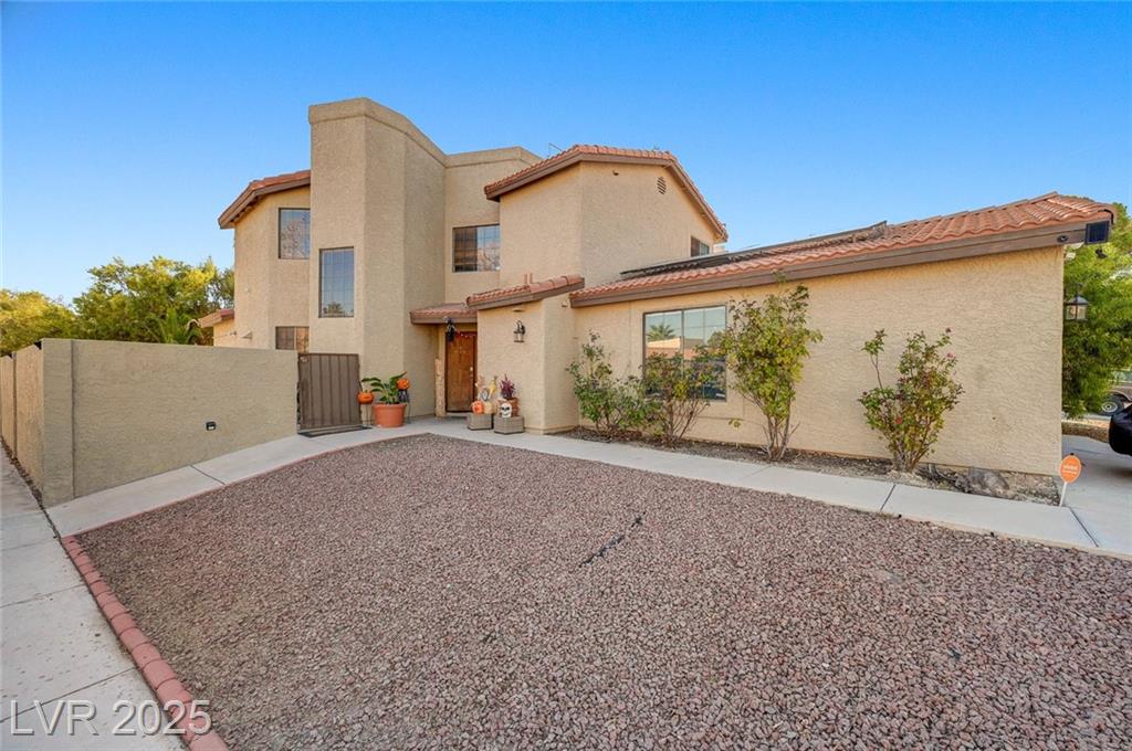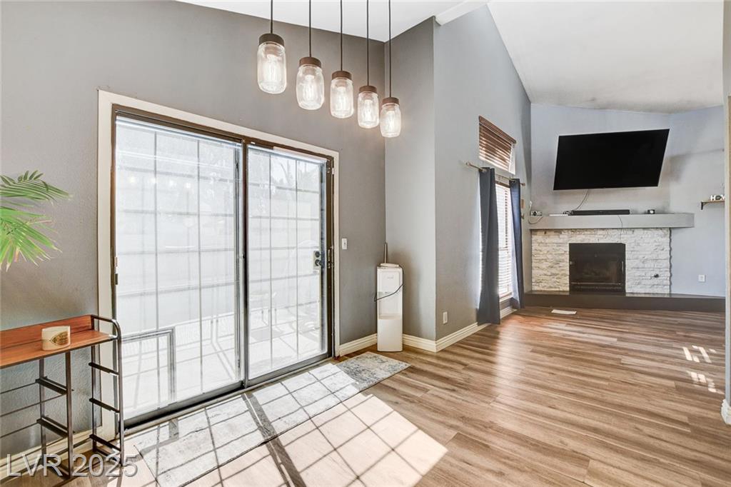 Located in the desirable Northwest area of Las Vegas, this beautiful 2 story CORNER LOT home has it all! Featuring 4 bedrooms and 2.5 baths, with the primary bedroom conveniently downstairs—complete with stylish barn doors, a walk-in closet with built in organizers, and a beautifully remodeled bathroom and shower. Enjoy vaulted ceilings and a cozy gas fireplace in the living room, plus a bright dining area and a kitchen with granite countertops, stainless steel appliances, and a walk-in pantry. Laminate and tile flooring throughout, Ecobee thermostat, and solar panels for energy efficiency. The spacious backyard is perfect for entertaining with a patio, in-ground pool with BRAND NEW pool pump, and a relaxing spa. Additional highlights include a 2 car garage with storage, tankless water heater, water softener, and LOW HOA! Close to freeways, schools, shopping, dining, and more! Must see this home today!