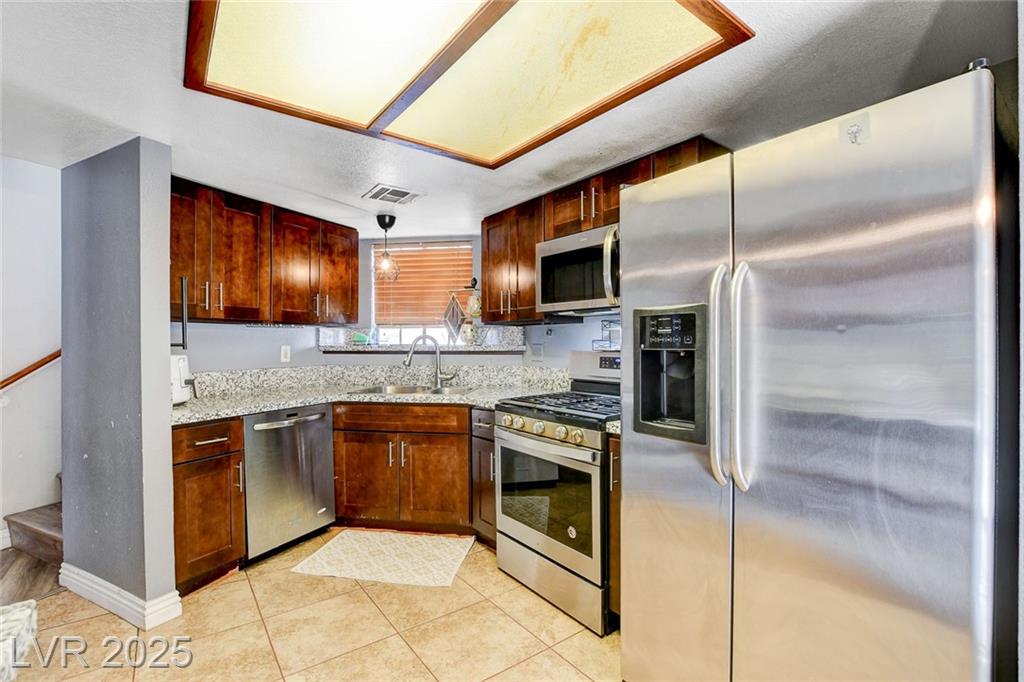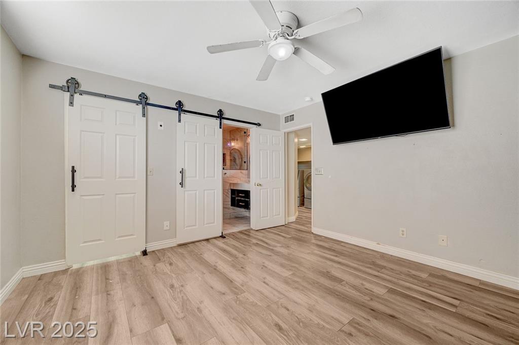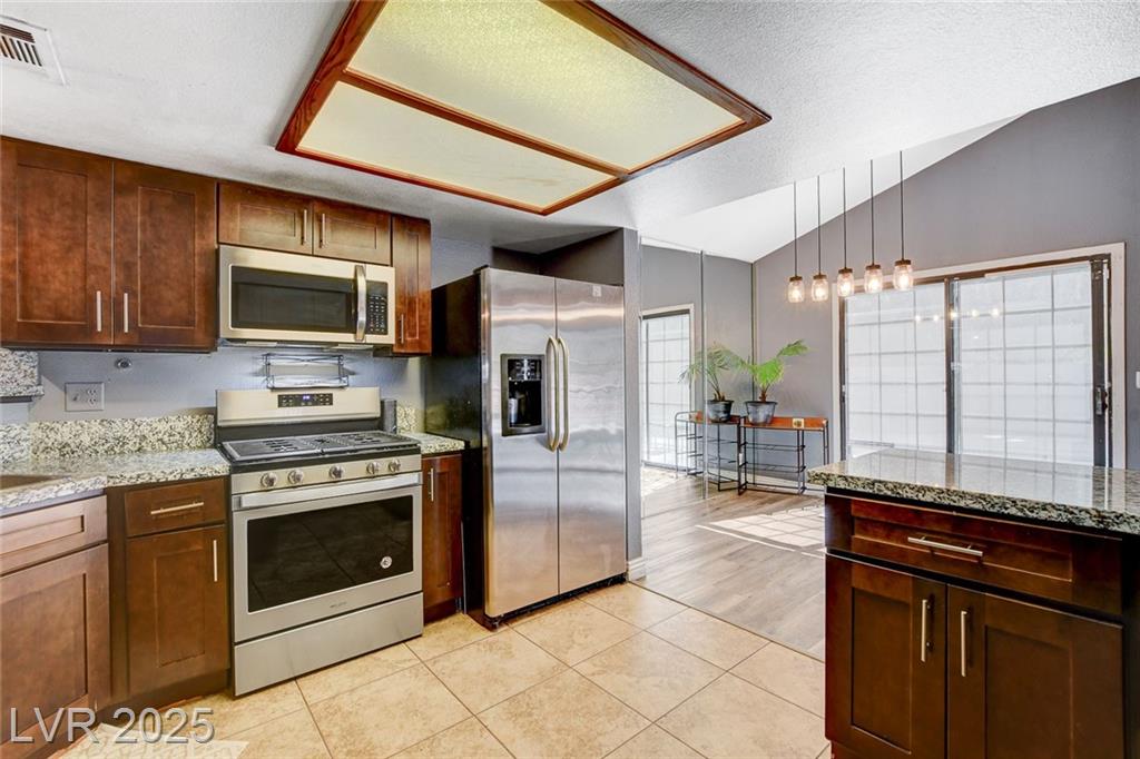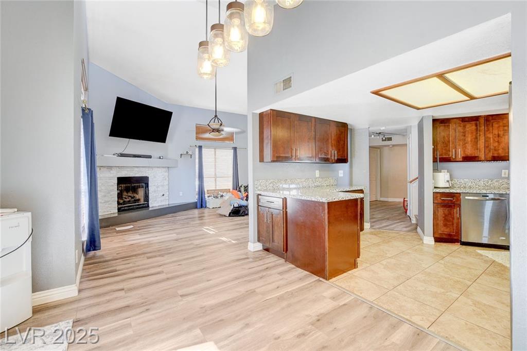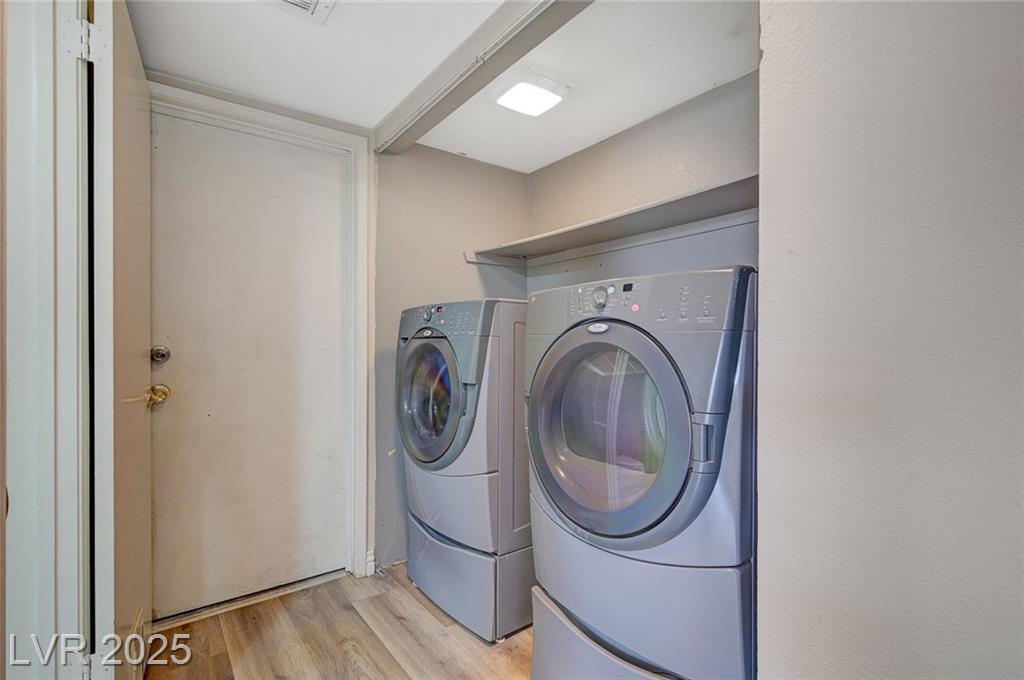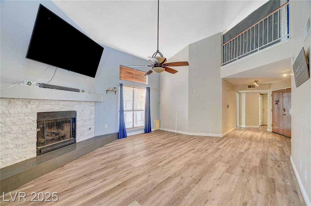 Located in the desirable Northwest area of Las Vegas, this beautiful 2 story CORNER LOT home has it all! Featuring 4 bedrooms and 2.5 baths, with the primary bedroom conveniently downstairs—complete with stylish barn doors, a walk-in closet with built in organizers, and a beautifully remodeled bathroom and shower. Enjoy vaulted ceilings and a cozy gas fireplace in the living room, plus a bright dining area and a kitchen with granite countertops, stainless steel appliances, and a walk-in pantry. Laminate and tile flooring throughout, Ecobee thermostat, and solar panels for energy efficiency. The spacious backyard is perfect for entertaining with a patio, in-ground pool with BRAND NEW pool pump, and a relaxing spa. Additional highlights include a 2 car garage with storage, tankless water heater, water softener, and LOW HOA! Close to freeways, schools, shopping, dining, and more! Must see this home today!
