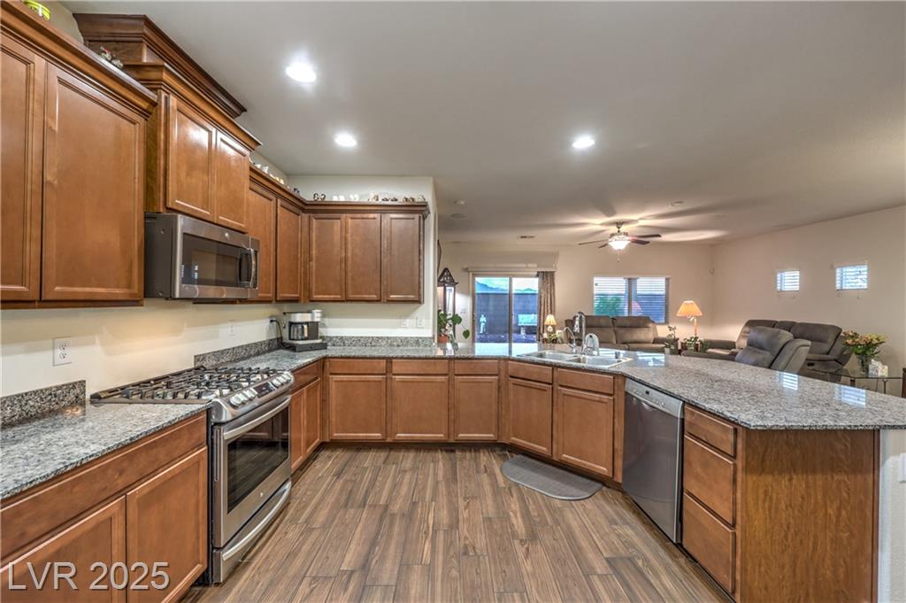 Two primary suites, fully paid-off solar, and over 3,100 sq ft of flexible living space—this home checks every box! Tucked on a premium corner lot, this 4-bedroom, 3.5-bathroom stunner is ideal for multigenerational living, long-term guests, or anyone craving space to spread out. The heart of the home is a spacious kitchen with granite counters, stainless steel appliances, and rich espresso cabinetry, opening to bright and airy living and dining areas. Upstairs, a generous loft offers endless possibilities—home office, media room, play space—you decide! Additional highlights include a 3-car garage, dedicated laundry room with built-ins and sink, and energy-efficient fully owned solar. Homes with this kind of layout, size, and value don’t come along often—schedule your showing today!