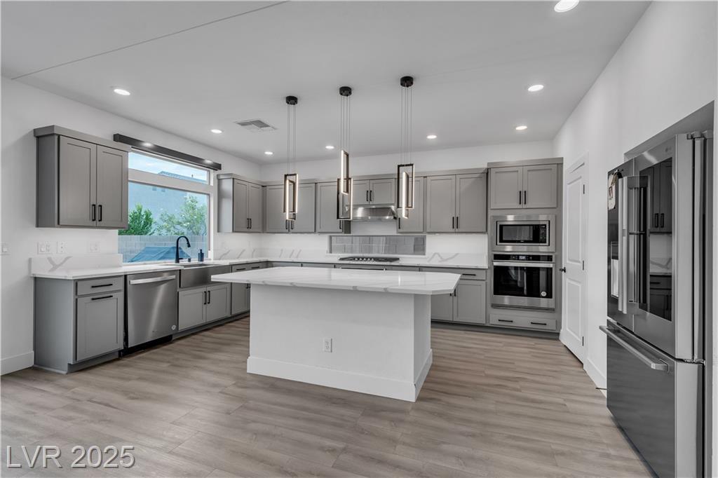 Rare 6-bedroom modern home on a premium corner lot—loaded with nearly $200,000 in upgrades! Over $128K in builder options plus $70K in custom improvements make this home truly stand out. Inside you’ll find custom ethernet wiring in every room, EV-ready garage, solar pre-plumb, designer lighting, and pre-wired surround sound. Interior finishes include luxury LVP flooring, new baseboards, motorized roller shades (blackout in all bedrooms), and custom closets. The chef’s kitchen features an LG Studio refrigerator, pendant lighting, and upgraded fixtures. Exterior upgrades include professional landscaping with turf, pavers, lighting, and a widened driveway, plus epoxy garage floors and an AO Smith water softener. Both AC units have 10-year extended warranties. Move-in ready and better than new, this spacious home combines elegance, efficiency, and comfort in one exceptional package!