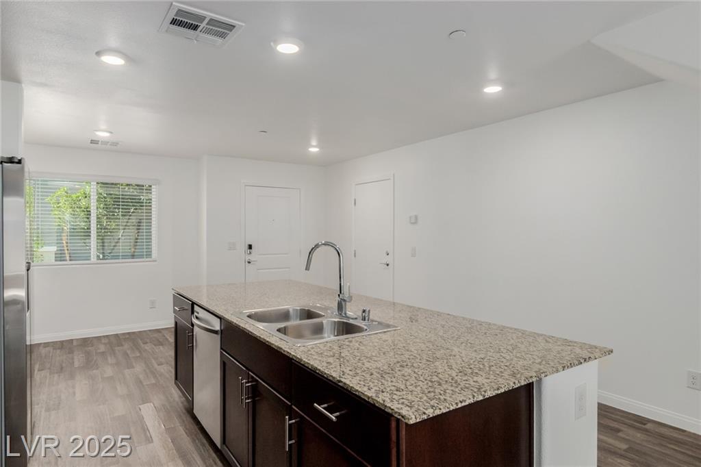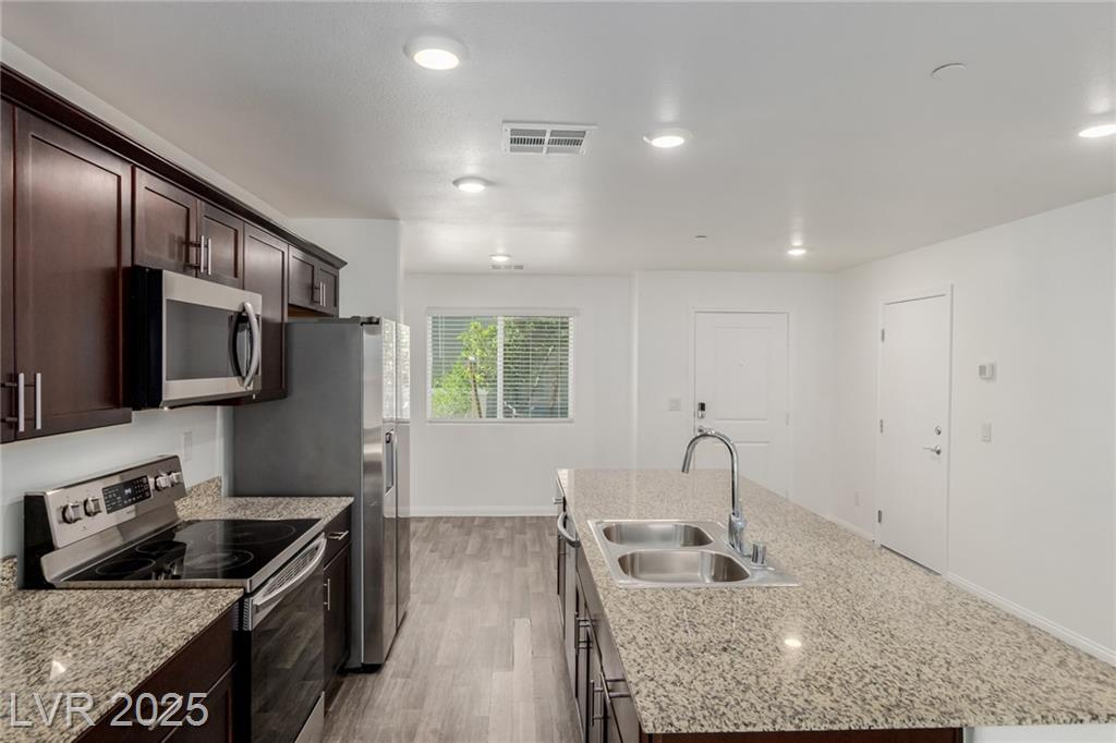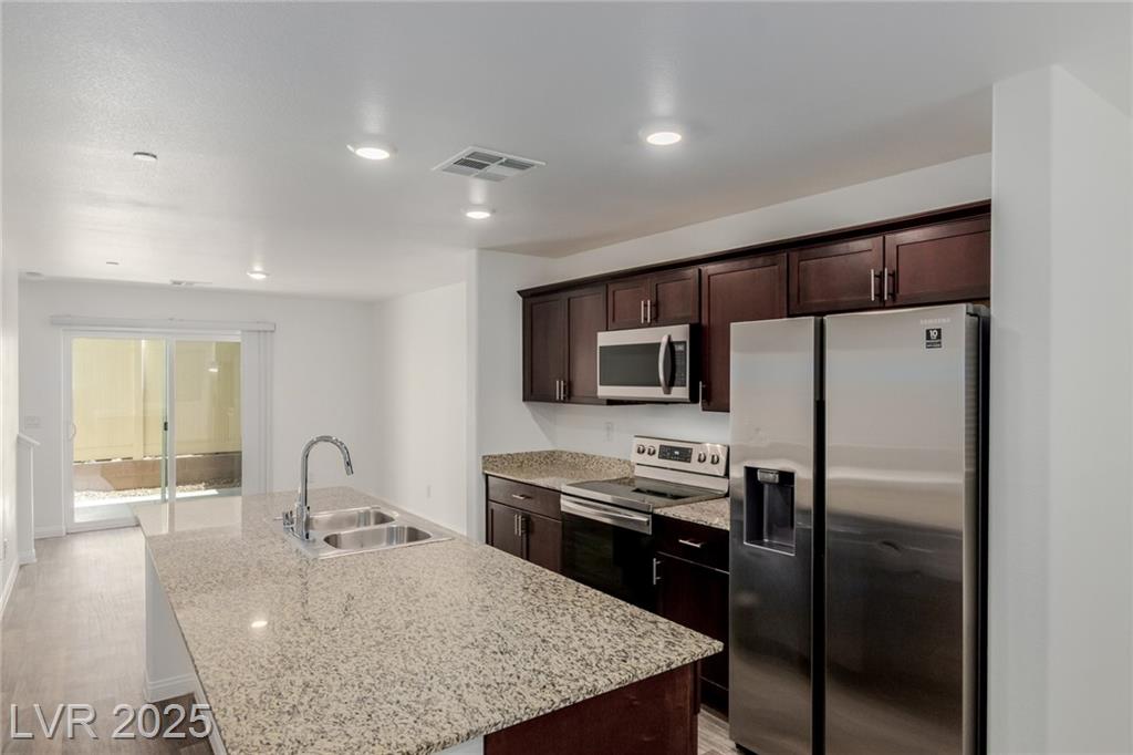 Modern 3-bedroom townhome in the Mosaic community! Open floor plan, granite countertops, stainless steel appliances, and luxury vinyl plank flooring throughout. The primary suite features dual sinks and a walk-in closet. Private fenced yard and attached 2-car tandem garage. Community features pools, parks, and walking trails. Water, trash, and internet included. Convenient location near Las Vegas Blvd and St. Rose Pkwy—close to shopping, dining, and freeway access.