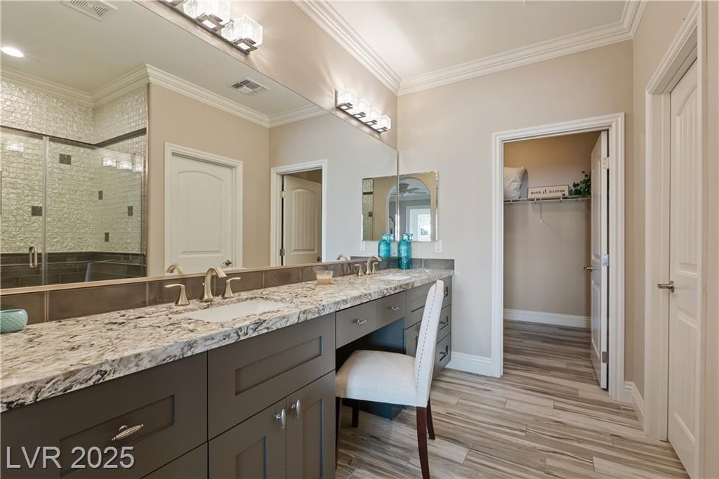 Elegance awaits in the heart of the Cottage Court community with NO HOA. This former model stands as a beacon of luxury and functionality. The property showcases top-of-the-line finishes and an impressive 24' X 65' x 16', insulated and air conditioned RV garage. Three spacious bedrooms, complete w/ baths are part of the generous 1974 sf. The kitchen is a showstopper with Cambria Quartz countertops and custom cabinets by Decorative Specialties that elevate every culinary endeavor to an art form. As you enter through the model foyer adorned with an on-site designed mosaic inlay mirroring the beauty of the stunning glass double doors. Bedrooms 2 and 3 are thoughtfully separated for both function and privacy, each offering its own unique entryway bathed in natural light. Beyond its aesthetic allure lies unparalleled efficiency – this home is built to rigorous standards as a certified Energy Star Plus masterpiece. Open Cell Spray Foam insulation wraps all exterior walls and trusses.