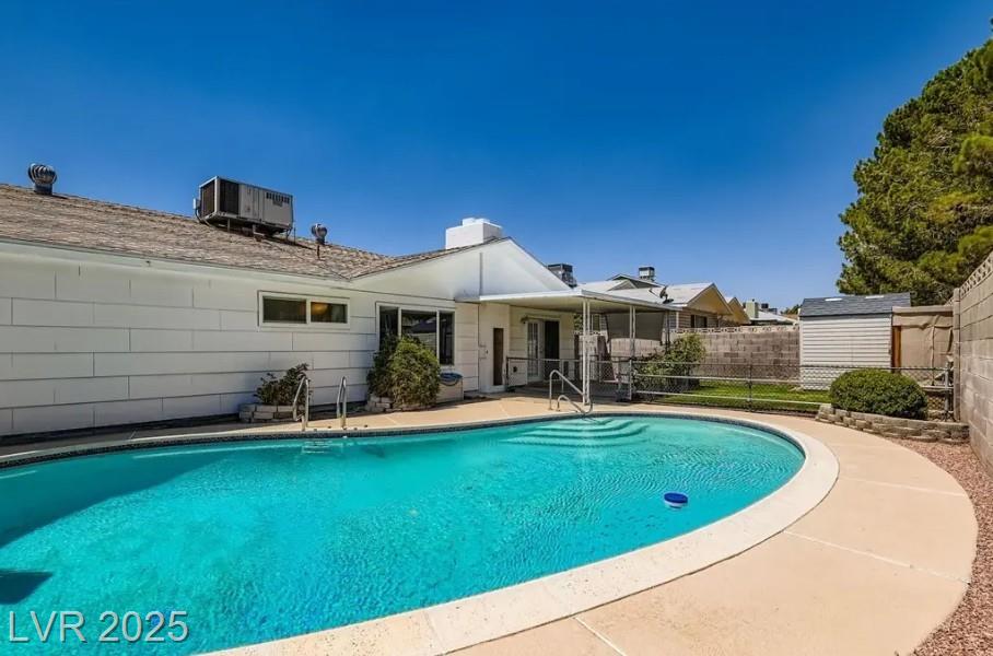 Base Rent is $1999. Single-story home with a private in-ground pool! Enjoy great curb appeal with desert and mature landscaping out front. Step through the double doors into a spacious living area featuring a stone-faced fireplace and French doors leading to the backyard oasis. This home offers 3 bedrooms and 2 bathrooms, with laminate wood flooring throughout most of the house and carpet in the bedrooms. The updated kitchen includes stainless steel appliances—double ovens, 5-burner cooktop, a dishwasher, and upgraded refrigerator. The backyard is perfect for relaxing or entertaining, with a fenced pool up to 8 feet deep, a covered patio, a shed, and a small grassy garden area. Both interior and exterior have been freshly painted. No HOA or SID fees! Verify all costs with your agent before submitting your application.