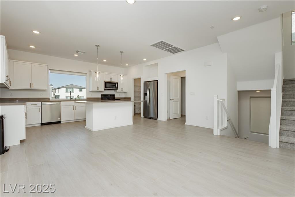 Modern 3-story home in desirable Southwest Las Vegas! This spacious 4 bed, 4 bath residence offers contemporary style, open living spaces, and a stunning rooftop terrace with panoramic views. The sleek kitchen features white shaker cabinets, quartz countertops, stainless steel appliances, a walk-in pantry, and a large island that is perfect for entertaining. The primary suite includes a walk-in closet and spa-like bath with dual sinks and an oversized shower. A first-floor guest suite adds flexibility for visitors or multigenerational living. Additional highlights: two-car garage, low-maintenance landscaping, energy-efficient design, and prime location near the 215 Beltway, shopping, dining, and the Strip. Stylish, functional, and move-in ready!