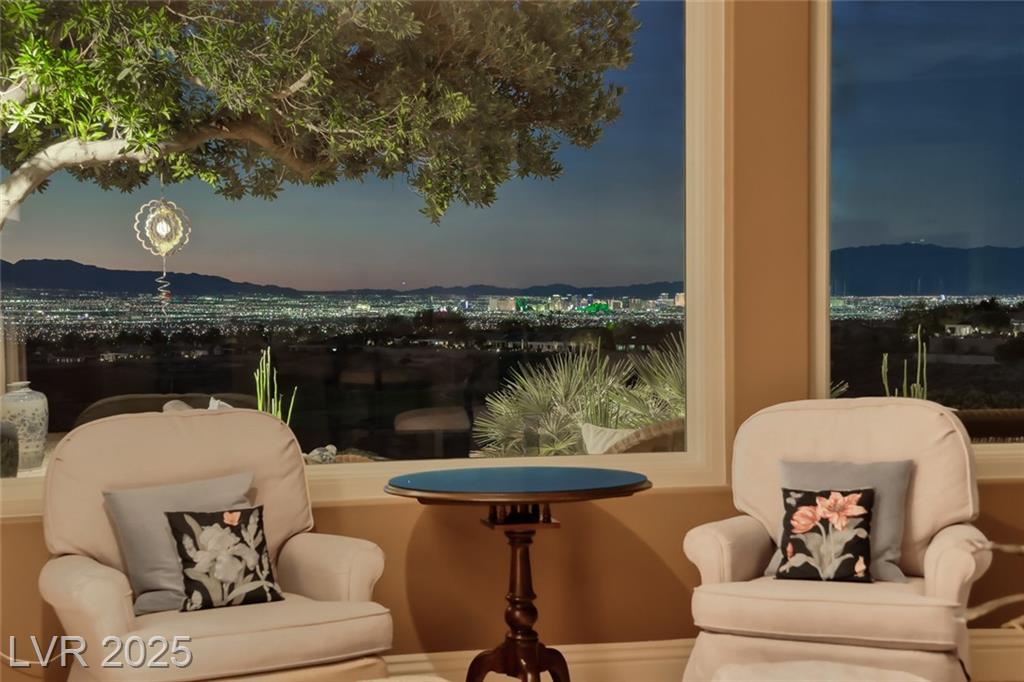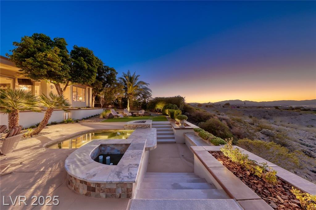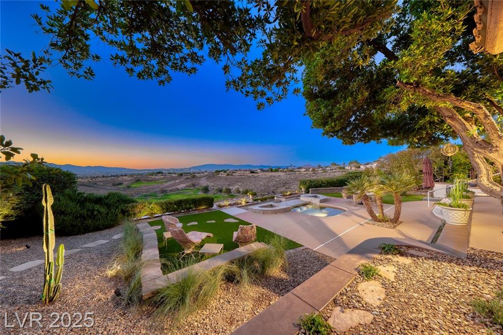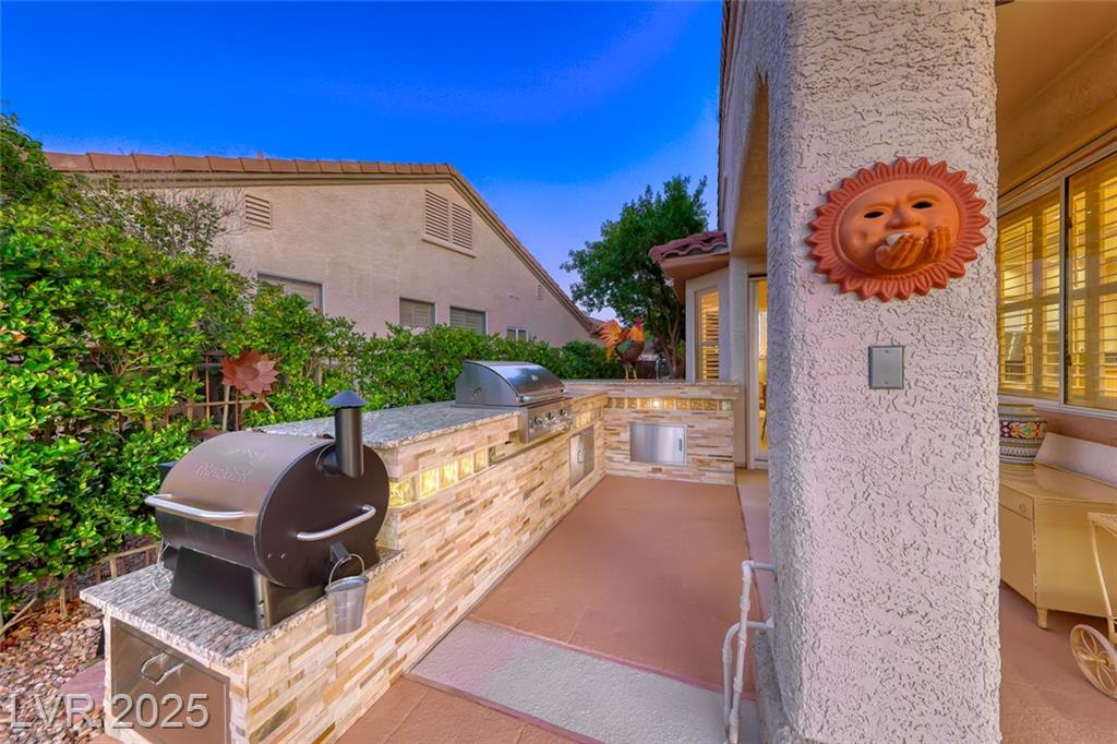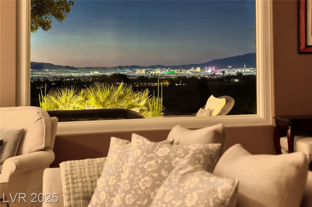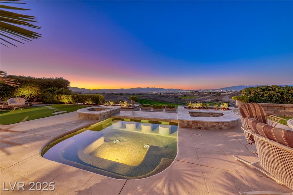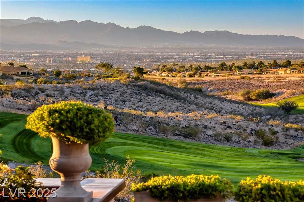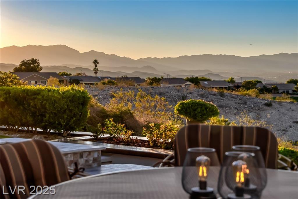 Unparalleled luxury with the best views Sun City Anthem has to offer. This highly upgraded Concord model offers unmatched panoramic views of the entire Las Vegas Strip, Golf Course, and Mountains. Exceptional curb appeal with custom iron gates & professional landscaping set the stage. Inside, travertine flooring, plantation shutters, and skylights enhance the bright, open layout. The gourmet kitchen features granite countertops, stainless appliances, and large breakfast bar. Enjoy a wet bar, cozy fireplace, and elegant finishes. The spacious primary suite has a bay window with valley views, TOTO toilet, and luxury bath. Guest suite includes dual sinks & custom steam shower. Step into your private backyard oasis with outdoor kitchen, BBQ, Traeger smoker, granite counters, and inground spa all showcasing million-dollar views. Fully fenced for privacy & pets. Prime location in Model Village just steps to the main clubhouse. This is true resort-style living at its finest!