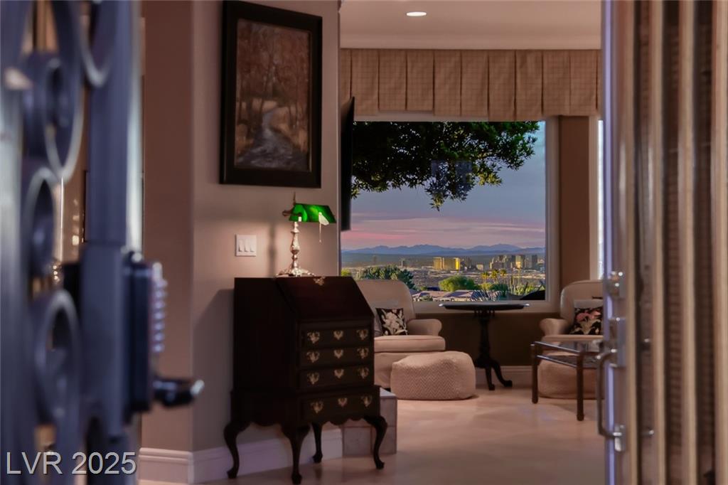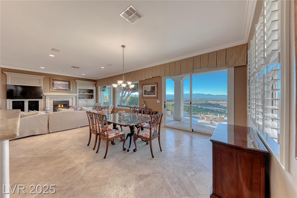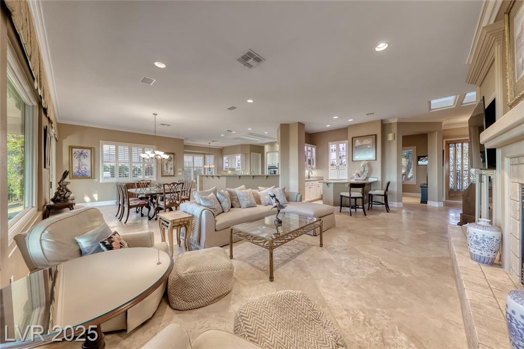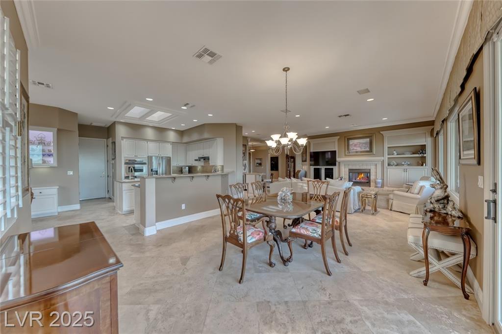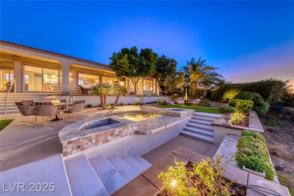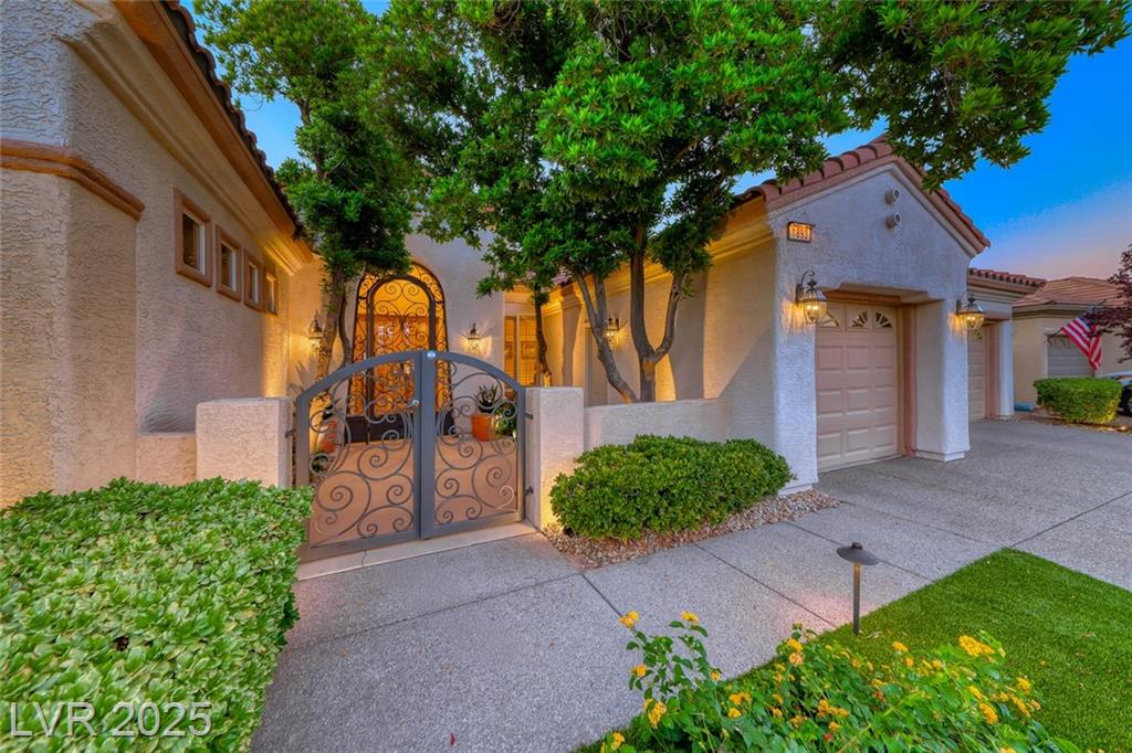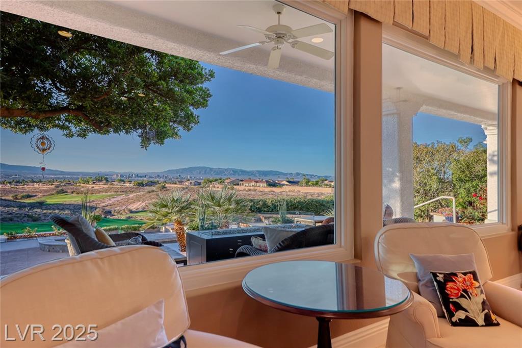 Unparalleled luxury with the best views Sun City Anthem has to offer. This highly upgraded Concord model offers unmatched panoramic views of the entire Las Vegas Strip, Golf Course, and Mountains. Exceptional curb appeal with custom iron gates & professional landscaping set the stage. Inside, travertine flooring, plantation shutters, and skylights enhance the bright, open layout. The gourmet kitchen features granite countertops, stainless appliances, and large breakfast bar. Enjoy a wet bar, cozy fireplace, and elegant finishes. The spacious primary suite has a bay window with valley views, TOTO toilet, and luxury bath. Guest suite includes dual sinks & custom steam shower. Step into your private backyard oasis with outdoor kitchen, BBQ, Traeger smoker, granite counters, and inground spa all showcasing million-dollar views. Fully fenced for privacy & pets. Prime location in Model Village just steps to the main clubhouse. This is true resort-style living at its finest!