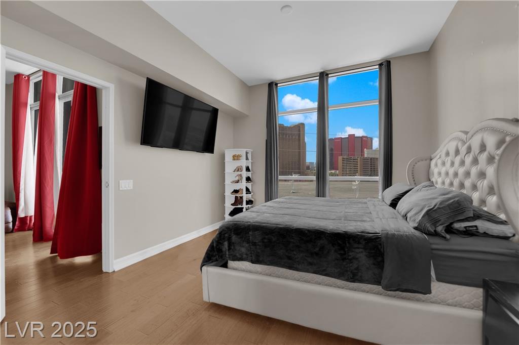 Live the high-rise lifestyle in this sleek 1-bedroom, 1-bathroom condo at Allure Las Vegas. Located on the 6th floor, enjoy effortless and exclusive access to LUXURY AMENITIES including the FITNESS CENTER, resort-style POOL, recreation LOUNGE, and CONFERENCE ROOM, just steps from your door on the same floor. Inside, the unit features RICH HARDWOOD FLOORS, a modern kitchen with GRANITE COUNTERTOPS, and STAINLESS STEEL APPLIANCES. Step onto your PRIVATE BALCONY for stunning VIEWS of the iconic LAS VEGAS STRIP and the concert grounds. GUARD-GATED, valet parking and water service are included, along with CONCIERGE service adding to the convenience of high-rise living. Whether you're seeking a stylish primary residence or a vibrant city escape, this is your chance to own in one of Las Vegas’s most coveted towers.
