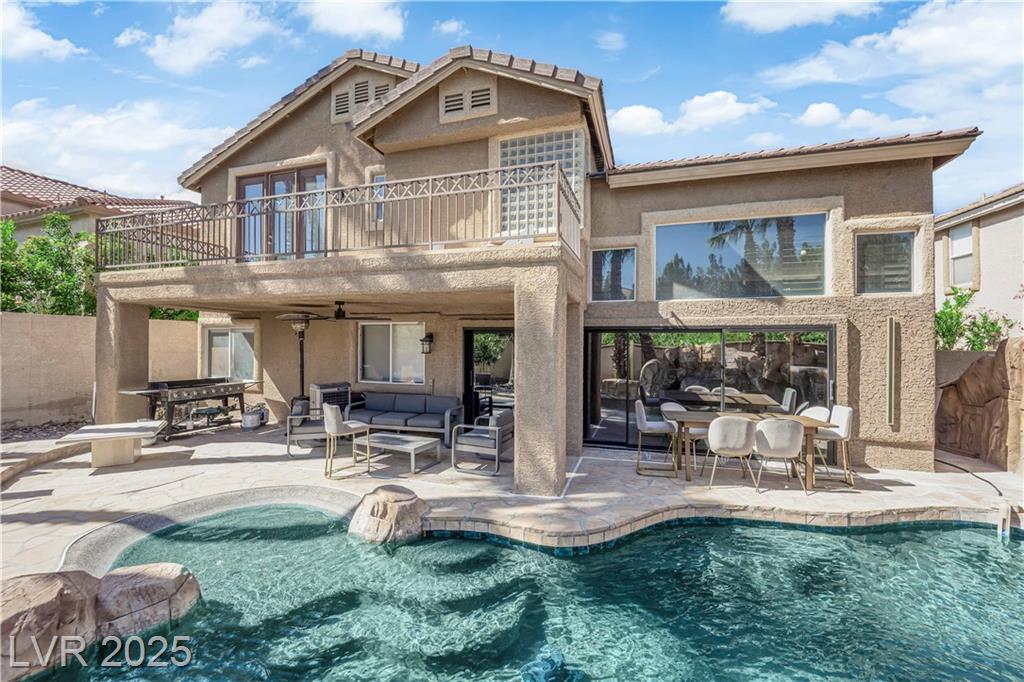 Discover modern luxury in this fully renovated home located in the highly desirable Highpointe Community of Summerlin. This stunning 5-bedroom residence (including an office) features an open floor plan with soaring high ceilings that create a bright and inviting atmosphere. The chef-inspired kitchen boasts premium finishes and all new appliances—installed just one year ago. Step outside to your private backyard oasis, complete with a heated pool and spa, perfect for year-round enjoyment and entertaining. Ideally situated with easy access to the 215 freeway, Downtown Summerlin, and nearby shopping centers. Enjoy the best of Summerlin living with top-rated schools, beautiful parks, and world-class golf courses just minutes away. Experience elegance, comfort, and convenience—your dream home awaits in Summerlin’s premier neighborhood.