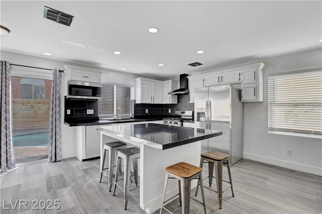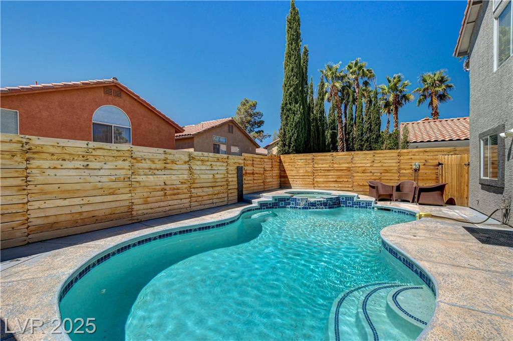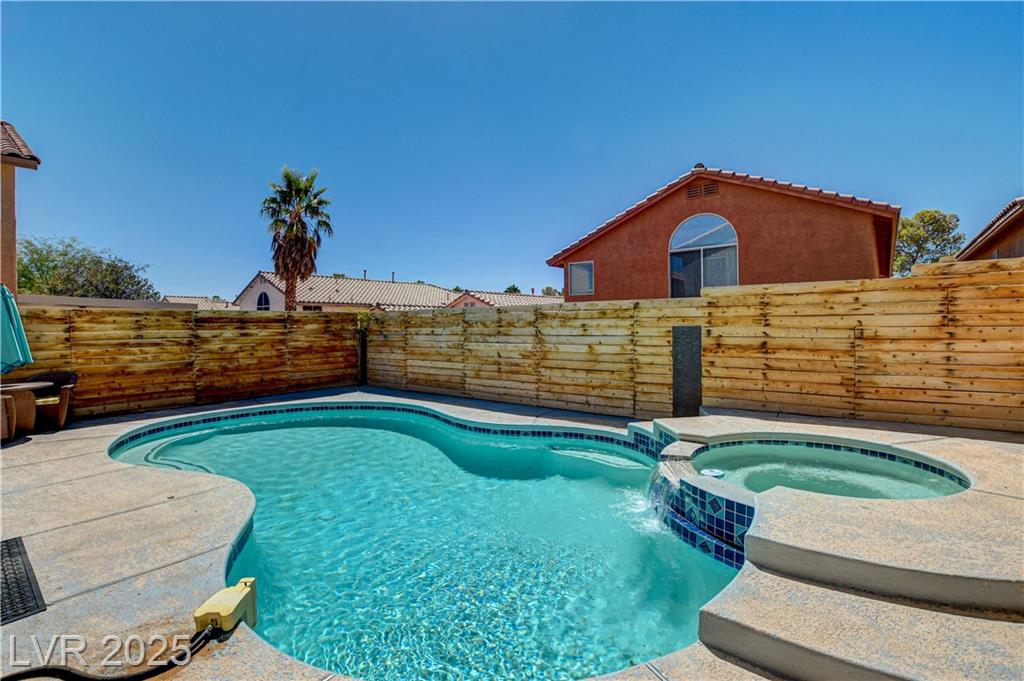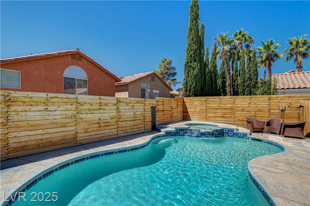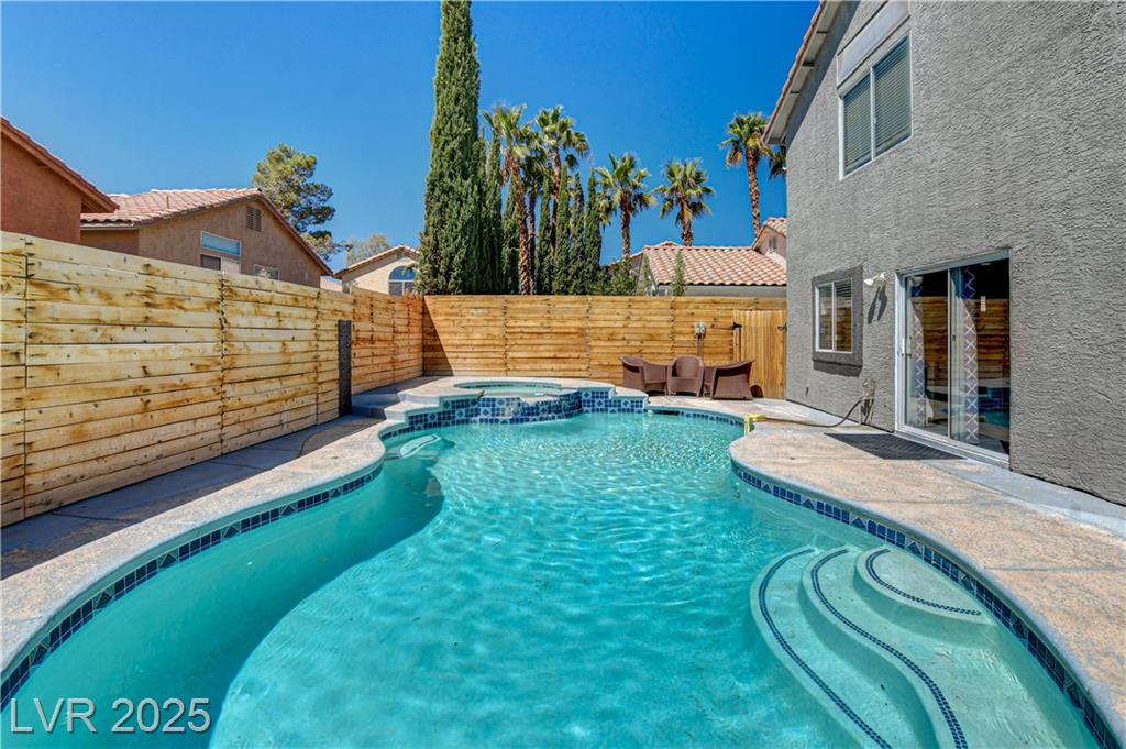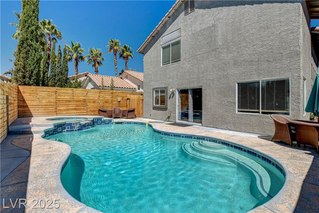 BRAND NEW UPGRADES & MOVE-IN READY! This beautiful, turn-key 5-bedroom, 2.5-bath home with NO HOA comes FURNISHED and showcases over $15,000 in brand-new upgrades! The kitchen shines with NEW black quartz countertops, stainless steel appliances, a sleek undermount sink, and freshly refinished white cabinets. The open floor plan offers soaring vaulted ceilings, abundant natural light, updated flooring and bathrooms (2021), and a NEW AC unit (2025). Enjoy a PRIVATE backyard oasis with a POOL, heated SPA, expansive patio, and side yard perfect for a dog run. The primary suite boasts a tile shower, soaking tub, double vanities, and large closet. Guest bath includes a massive steam shower and tub. Added highlights: 2-car garage, solar panels, and a digital smart door lock. PRIME LOCATION just 10 min to Downtown Summerlin and 20 min to the LV Strip or Red Rock Canyon. Ask about the 1% CREDIT to LOWER your interest rate or closing costs! Don’t miss out!