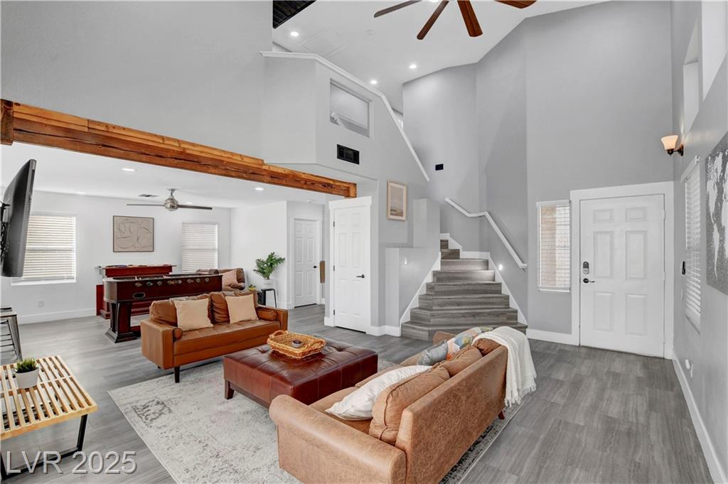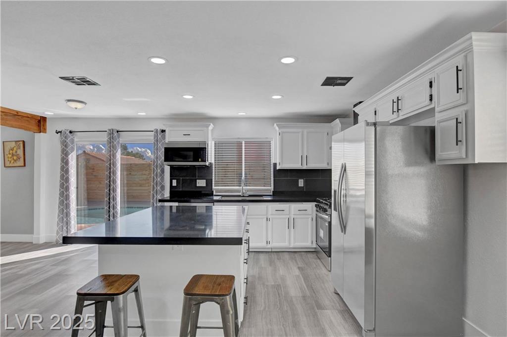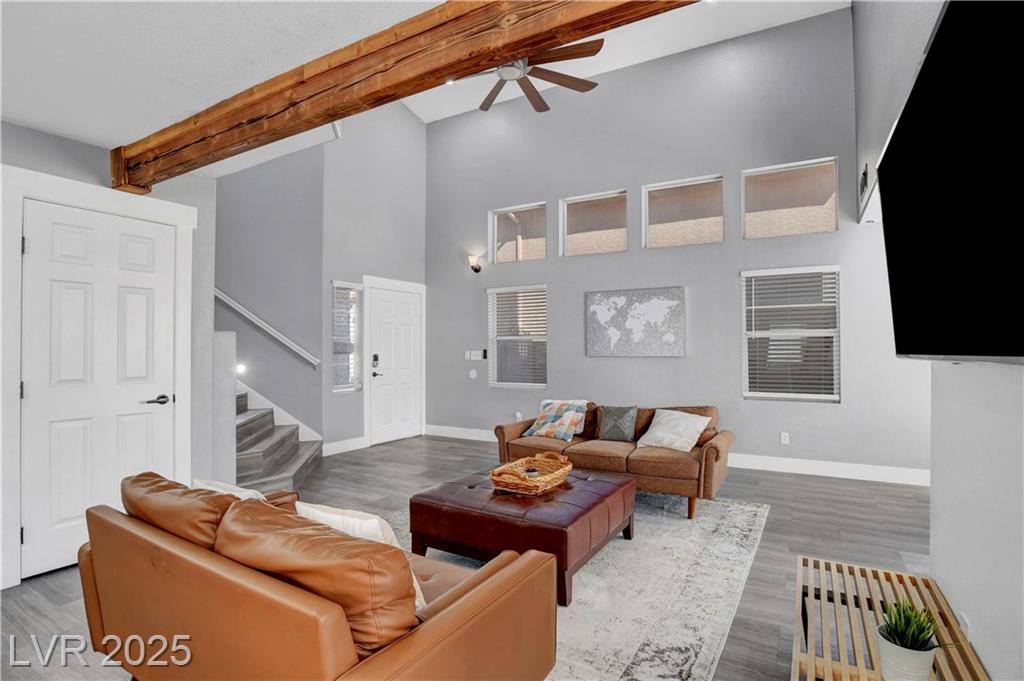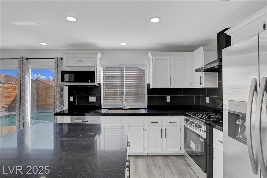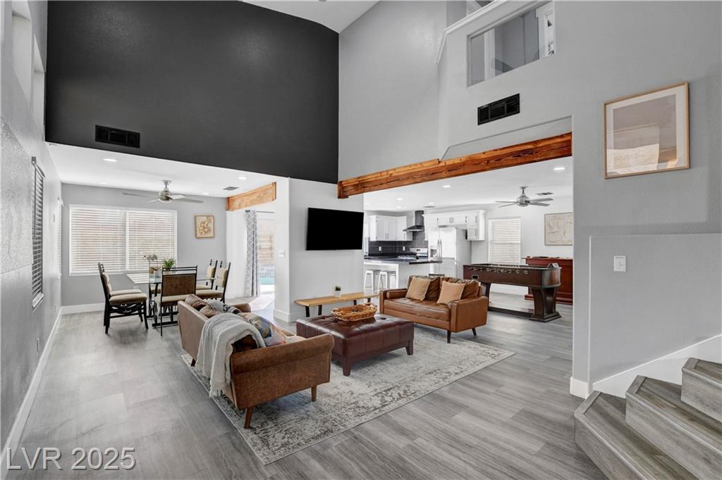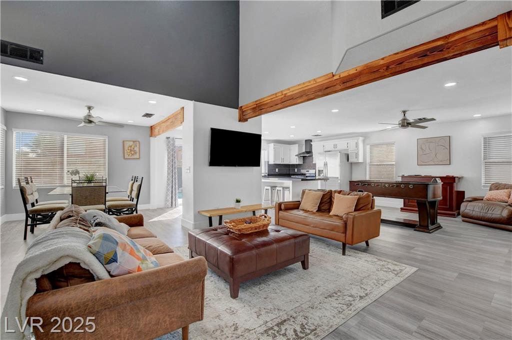 BRAND NEW UPGRADES & MOVE-IN READY! This beautiful, turn-key 5-bedroom, 2.5-bath home with NO HOA comes FURNISHED and showcases over $15,000 in brand-new upgrades! The kitchen shines with NEW black quartz countertops, stainless steel appliances, a sleek undermount sink, and freshly refinished white cabinets. The open floor plan offers soaring vaulted ceilings, abundant natural light, updated flooring and bathrooms (2021), and a NEW AC unit (2025). Enjoy a PRIVATE backyard oasis with a POOL, heated SPA, expansive patio, and side yard perfect for a dog run. The primary suite boasts a tile shower, soaking tub, double vanities, and large closet. Guest bath includes a massive steam shower and tub. Added highlights: 2-car garage, solar panels, and a digital smart door lock. PRIME LOCATION just 10 min to Downtown Summerlin and 20 min to the LV Strip or Red Rock Canyon. Ask about the 1% CREDIT to LOWER your interest rate or closing costs! Don’t miss out!