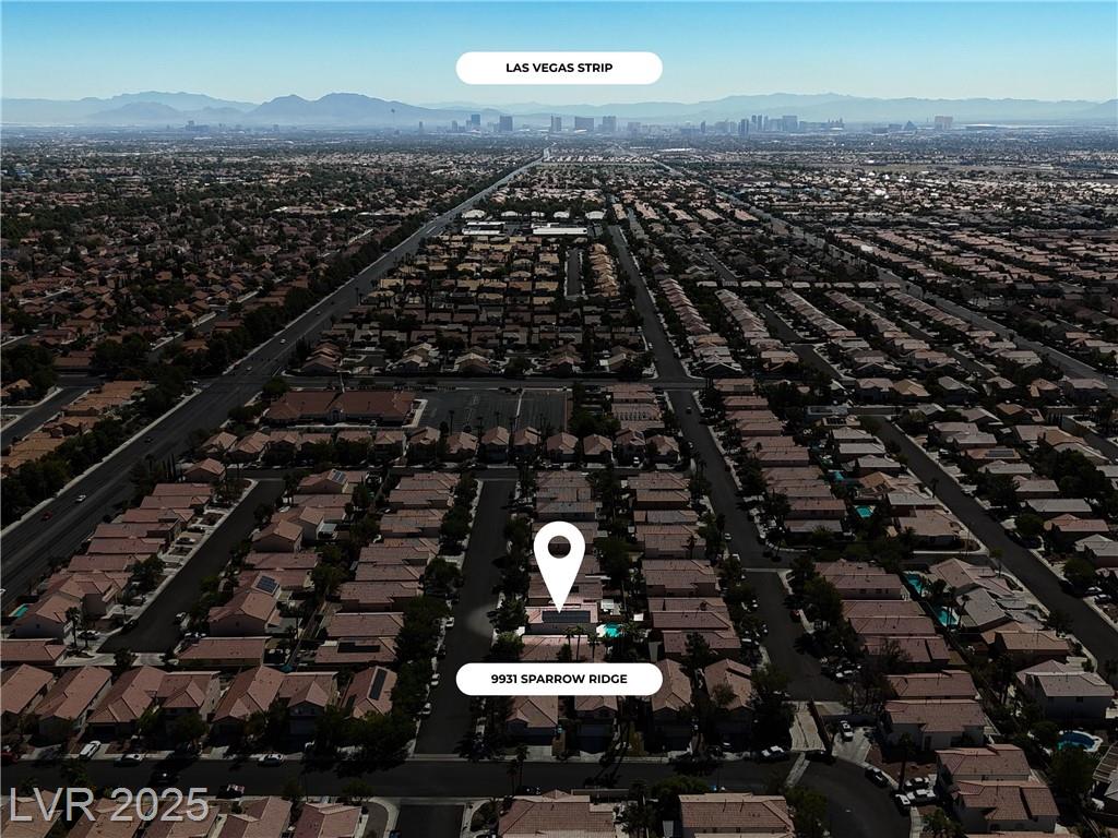 Desert Inn / Hualapai Way: East on Desert Inn, right (south) on Mountain Bluebird Street, left (east) on Sparrow Ridge to second house on right - 9931 Sparrow Ridge.