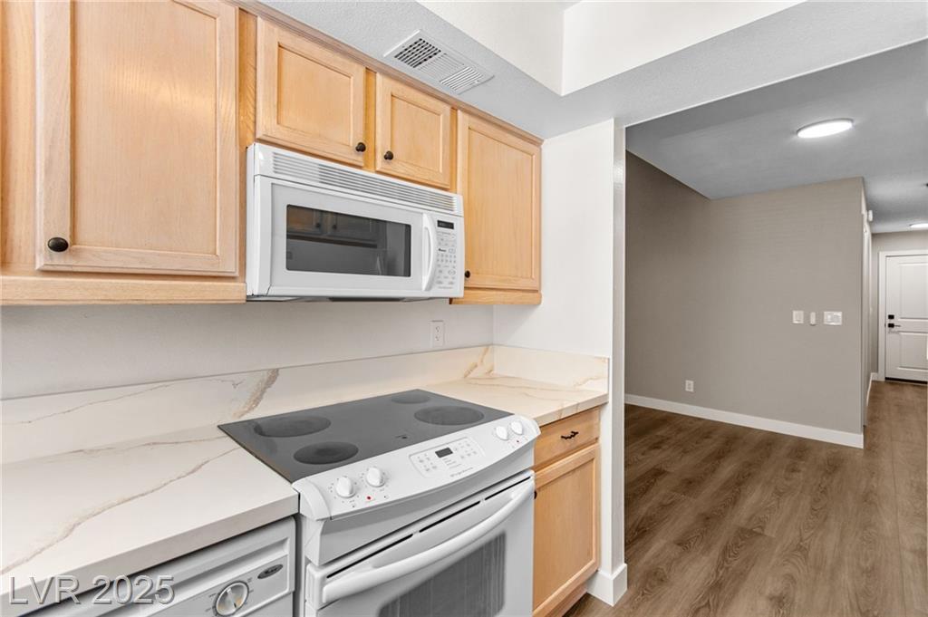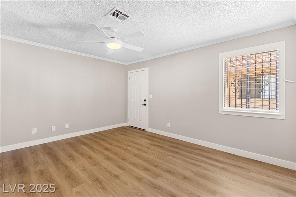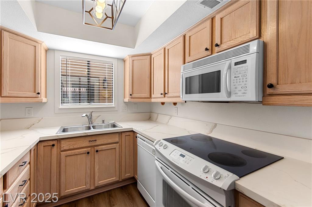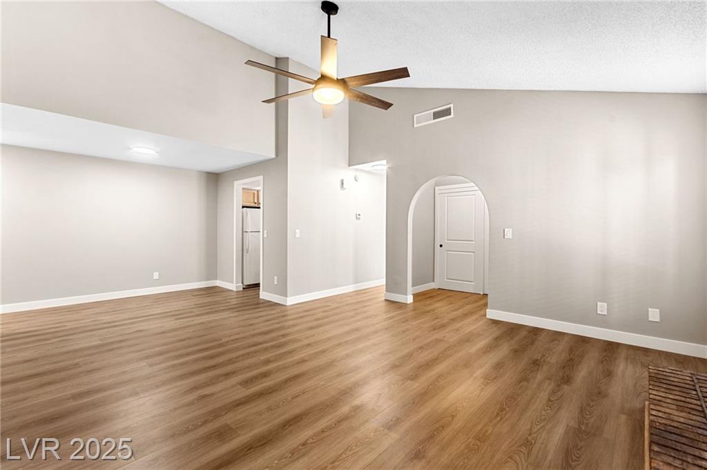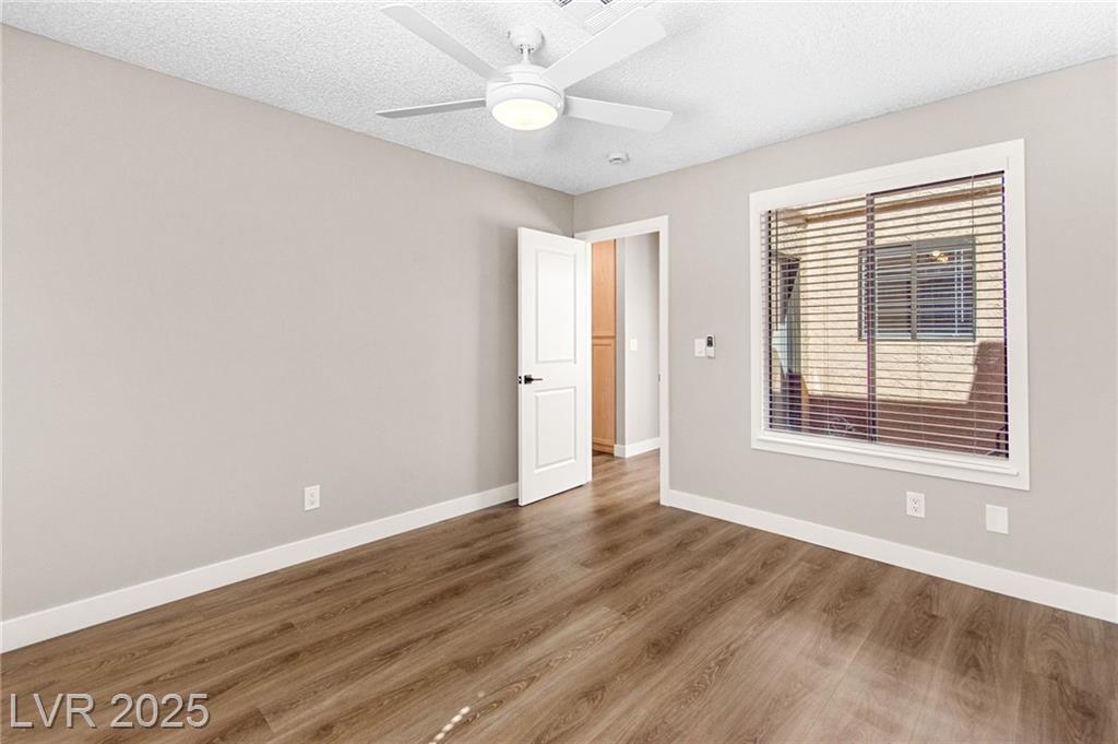 Charming one-story townhome with 2 bedrooms, 2 baths, and a versatile den that can function as an office or a third bedroom (door included, no closet). Enjoy an attached 2-car garage and a cozy enclosed atrium/patio. The primary suite has a private entry, and the open living area features vaulted ceilings and a striking stone fireplace. Thoughtful upgrades throughout include luxury vinyl plank flooring, quartz countertops, and ceiling fans. Residents enjoy access to a community pool and tennis courts. Conveniently located just minutes from the Strip, Airport, and UNLV.