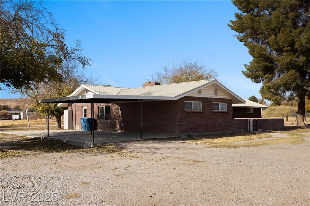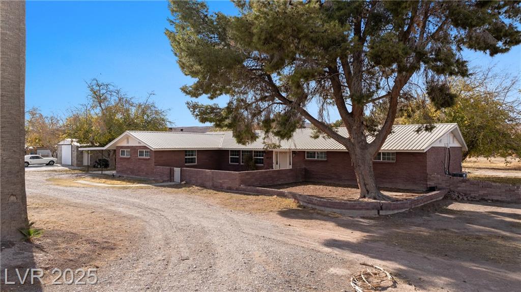 Welcome home if you huff and puff you wont blow this brick house down, this 5 bedroom ranch home with room for your toys is located in beautiful Logandale NV. On entering thru the courtyard to the front entrance you will enjoy a spacious living room with double sided fireplace, a well equipped kitchen with a large space for family dining. Enjoy the backyard with plenty of room for toys. Metal roof and great location this brick house is sure to please. Come enjoy all the small town living has to offer!