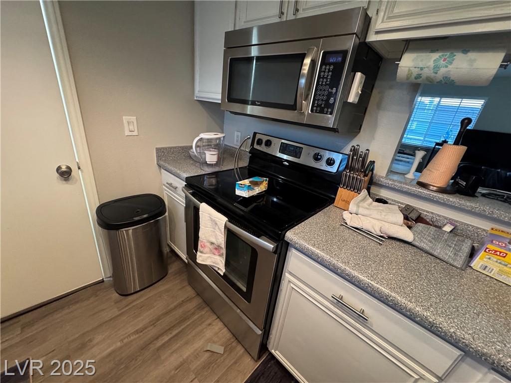 FHA & VA APPROVED COMMUNITY – OWNER-OCCUPIED ONLY! Beautifully maintained LARGE 1-bedroom, 1-bath condominium located in a gated East Las Vegas community near Boulder Highway! Two-tone interior paint, updated carpet, tile entry, and luxury vinyl plank flooring highlight this inviting floor plan. The modern kitchen offers laminate countertops, stainless steel electric range, dishwasher, and microwave, plus washer and dryer. The spacious living area features vaulted ceilings, two-way fireplace shared w/the primary suite, large walk-in closet. Enjoy community amenities including two sparkling pools, spa, basketball court, dog area, and gated entry. HOA dues cover water, sewer, and trash, providing low-maintenance living, peace of mind. Conveniently located near shopping, dining, parks, Galleria Mall, local casinos, major freeways, Great for anyone seeking an affordable, move-in-ready residence. Buyer/Buyer’s agent to verify all information including measurements, schools, and utilities.