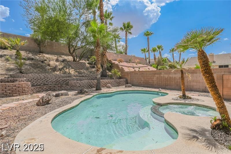 Brand new QUARTZ COUNTERS w/undermount stainless sink! POOL service included! GREEN VALLEY RANCH 1-story w/heated POOL/SPA! NEW plush TAN carpet+8LB pad! The DISTRICT shopping/dining/movies/gaming at your door. GVR acres of parks/paths/playgrounds~ TOP SCHOOLS~Silver Knights~Hend Multi-Gen+Library~EZ access to I215! Nearly 3000 SF SINGLE STORY w/POOL/SPA, on huge totally private 1/4 ACRE LOT in GV Ranch! Relax in your own LAGOON-style HEATED POOL & SPA surrounded by swaying palm trees. Huge COVERED PATIO for backyard entertaining. NEW stainless steel appliances! 6 NEW remote LED ceiling fans in all bedrooms, living & family room! Powder rm w/new quartz vanity & new toilets. TONS of tile, neutral paint. Open layout: 4 true beds/3 baths/3 CAR GARAGE! Primary bedroom has French door to pool, huge walkin closet w/BUILT-INS! SXS FRIDGE+front load WASHER/DRYER included! NEW AC unit,6 ceiling fans, garage storage cabinets, BBQ incl. 3/6/9 mo LEASE OK! Can be furnished upon request. DOGS OK