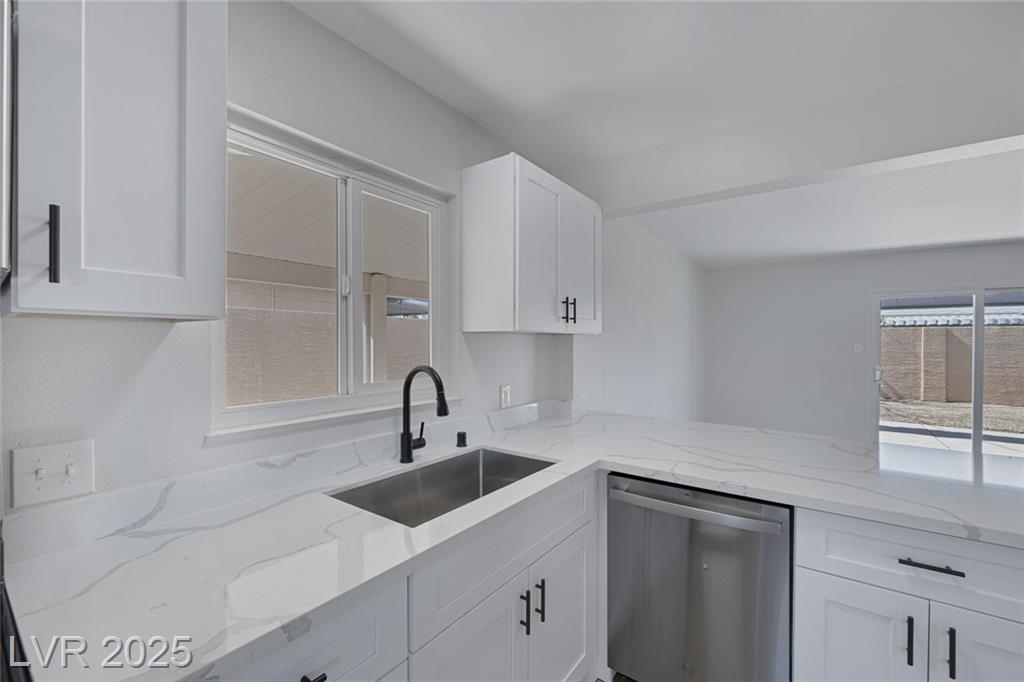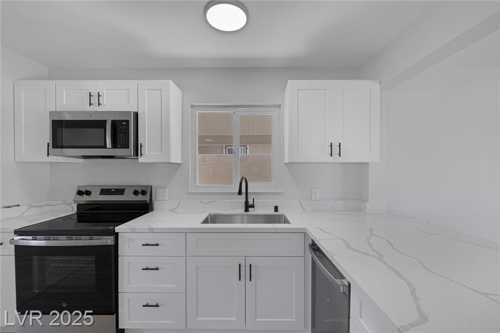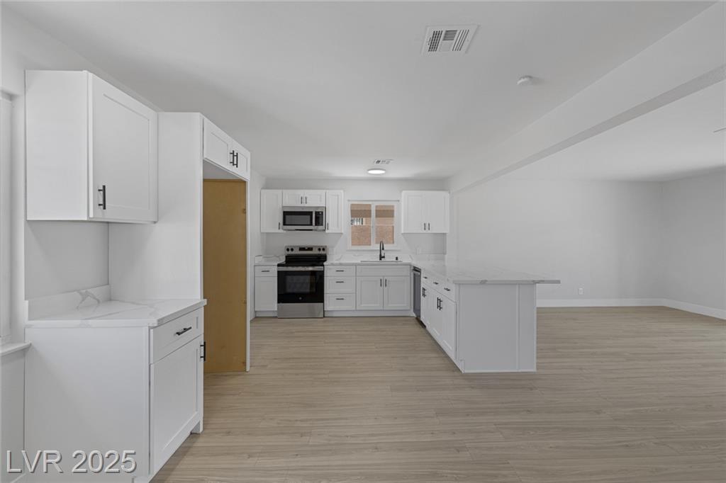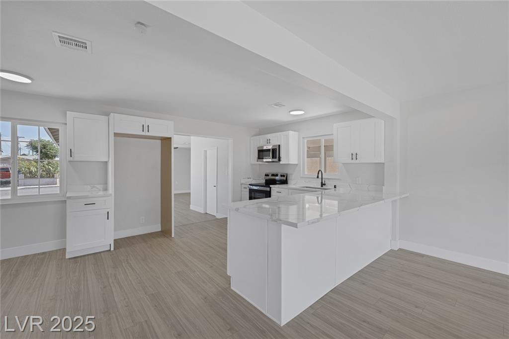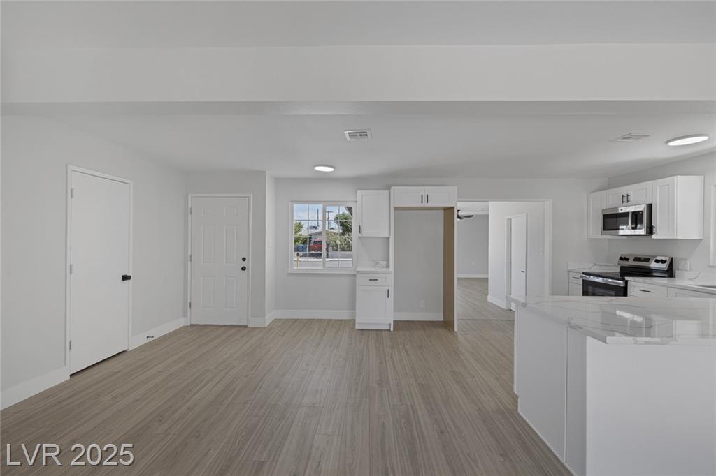 This exceptional single-story home in Las Vegas offers a perfect blend of comfort and style. The front yard has great curb appeal with desert landscaping and mature palm trees. Interior features an open floor plan with NEW luxury vinyl flooring that adds both beauty and durability. Kitchen with NEW shaker cabinets, NEW quartz countertops, and NEW stainless steel appliances that provide a sleek and functional space for cooking and entertaining! The home features a spacious garage conversion, perfect for a home office, playroom, or entertainment area. Both the primary and secondary bedrooms are generously sized, ensuring ample space for relaxation. With new windows enhancing natural light and energy efficiency, along with freshly painted interiors and exteriors, this home is truly move-in ready. Whether you’re enjoying the serene outdoor space or the beautifully designed interior, this property is a perfect retreat in the heart of Las Vegas. Don’t miss your chance to make it your own!