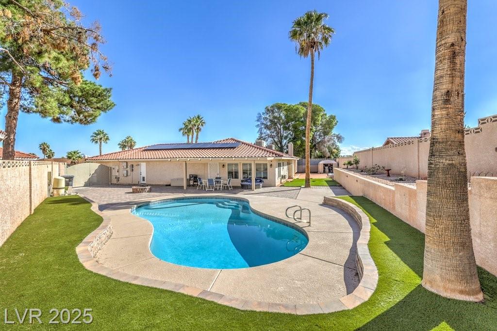 Savings, savings, savings! Seller to pay off $55,000 solar system at close of escrow! This beautiful Henderson home sits on a quiet cul-de-sac on ¼ acre with no HOA while offering plenty of privacy and flexibility. The backyard is a true oasis, featuring a resurfaced pool with upgraded tile, decking, and new equipment, perfect for relaxing or entertaining. Inside, you’ll find a spacious open floor plan with a cozy fireplace, upgraded finishes, and thoughtful touches throughout. The oversized lot provides room for endless possibilities, whether it’s RV parking, a garden, or an outdoor entertainment area. Don’t miss your chance to own this exceptional home that combines savings, comfort, and style in one of Henderson’s most desirable areas!