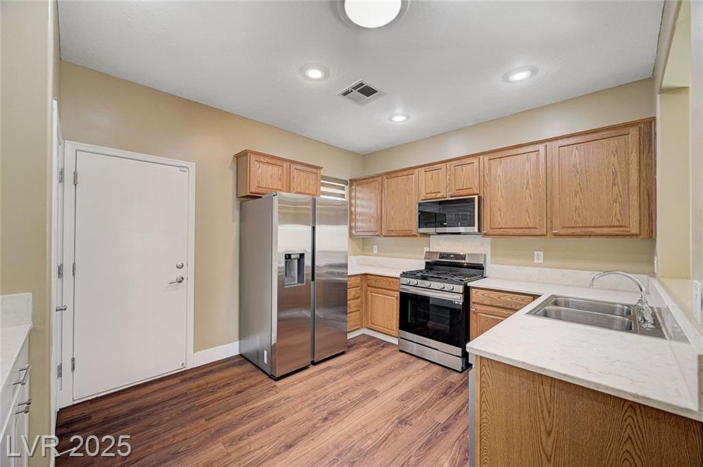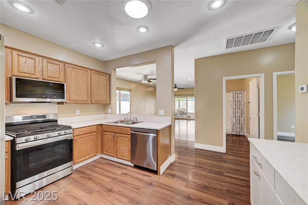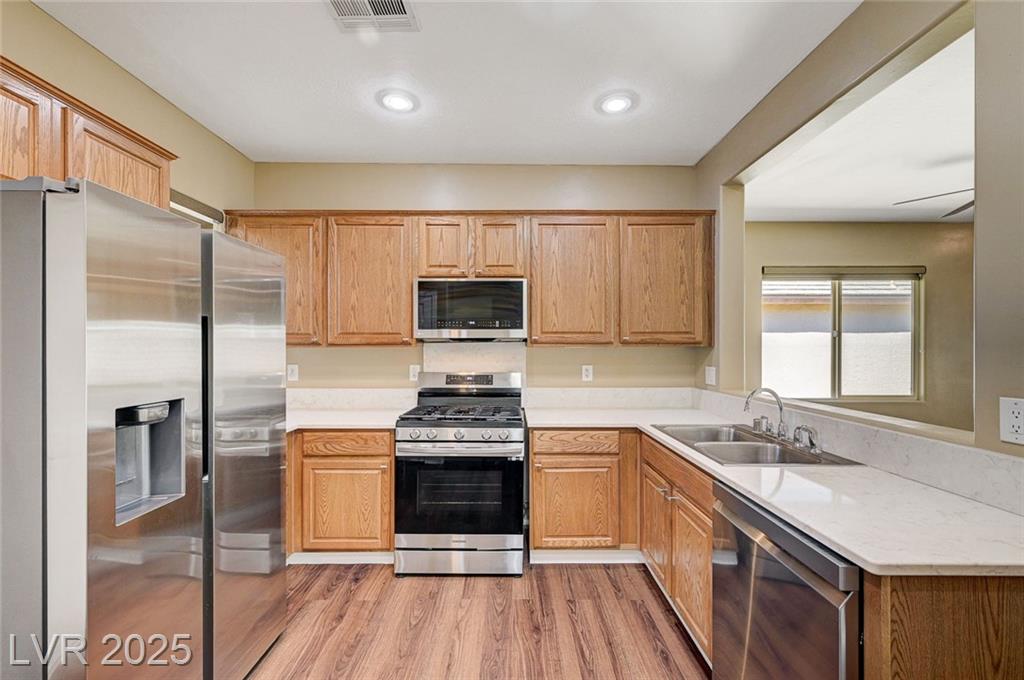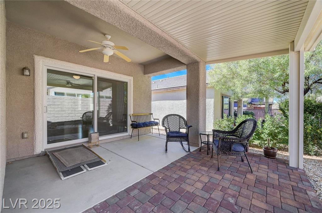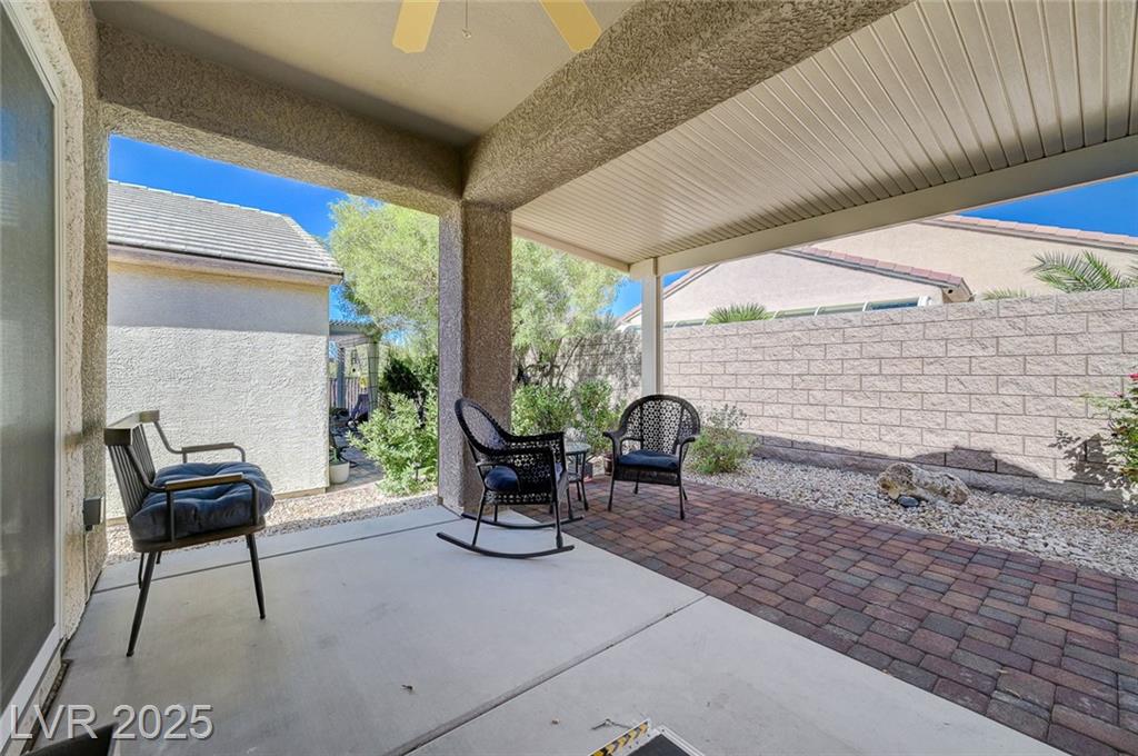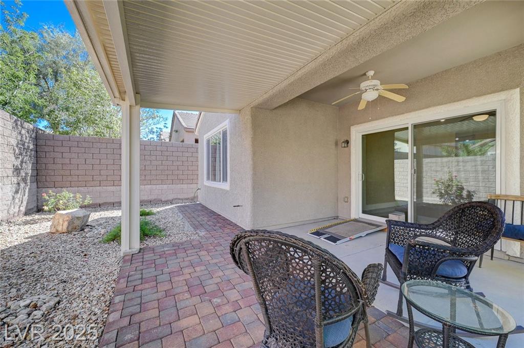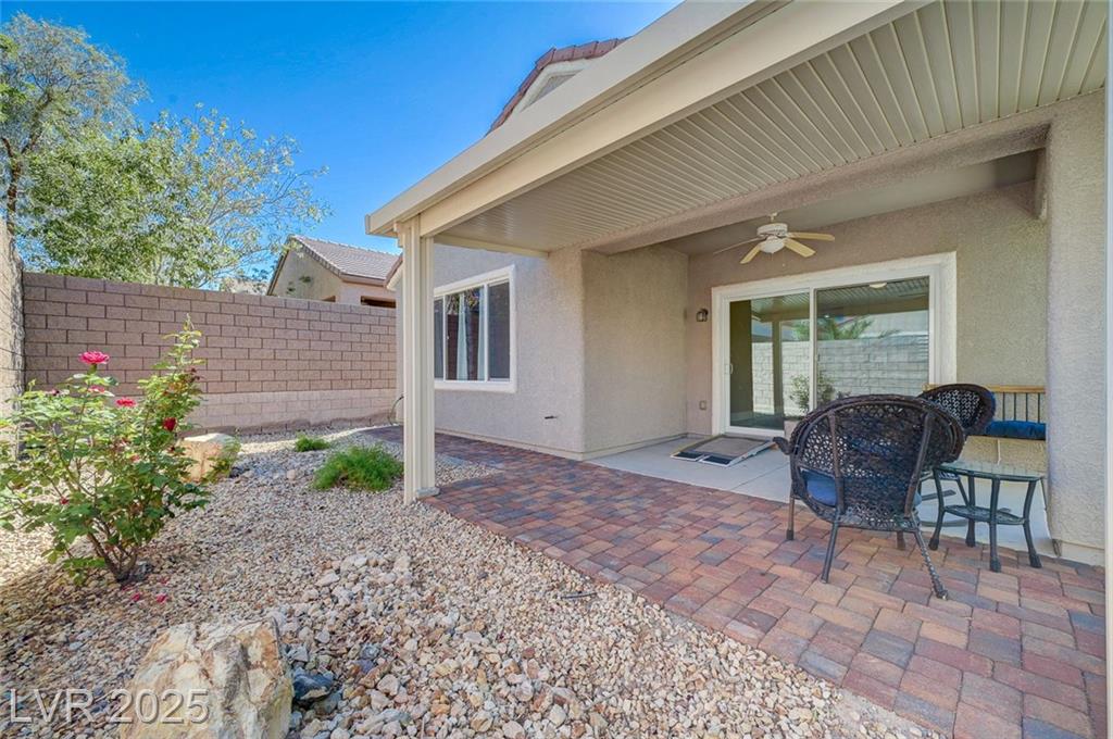 Nestled in the peaceful, age-restricted community of Solera Del Webb, this 3-bed, 2-bath retreat spans 1,248 SF on a 4,356 SF lot. Matching hard flooring flows through-out the home. Ceiling fans enhance every room, welcoming a gentle desert breeze throughout. The kitchen offers ample space for a table & chairs, with direct access to the garage for everyday ease. The extended patio with a full cover creates the perfect setting for morning coffee or sunset gatherings. Located just moments from the community center, residents enjoy a sparkling pool, relaxing spa, & fitness room. A timeless haven where comfort meets convenience in one of Henderson’s most welcoming active-adult neighborhoods.