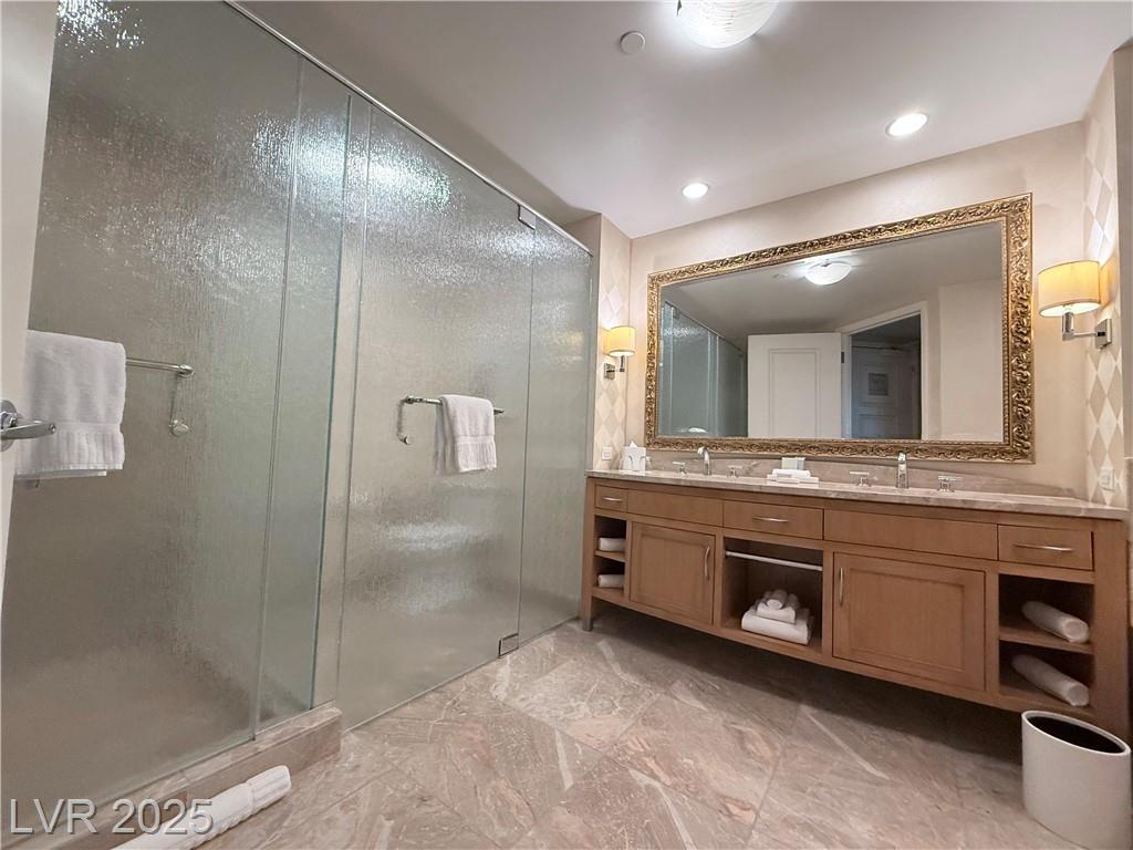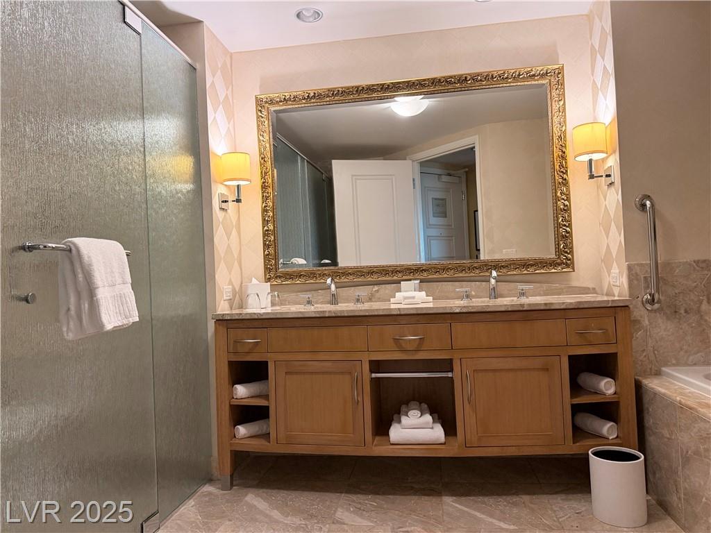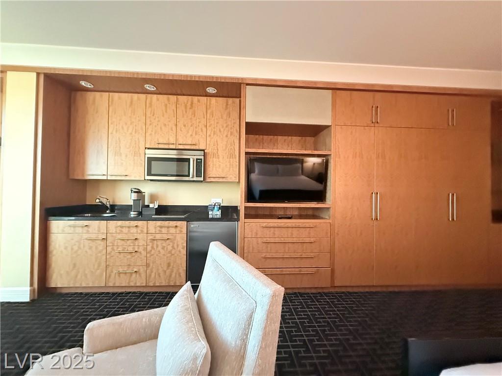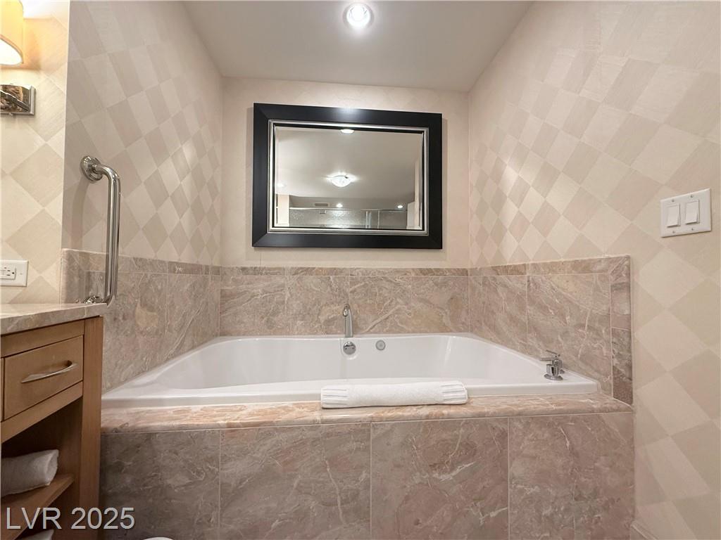 Experience refined elegance at the iconic Trump International Hotel Las Vegas. This beautifully designed studio residence blends sophistication with comfort, offering 534 square feet of stylish living space and captivating Strip views from towering floor-to-ceiling windows. The interior exudes warmth and modern luxury, featuring custom cabinetry, granite surfaces, and a sleek kitchenette for effortless convenience. Relax in the king-sized bed surrounded by rich finishes, or unwind in the lavish marble bathroom with its deep soaking tub and separate shower. Perfect as a private retreat or an exceptional investment opportunity, this residence delivers the ultimate Las Vegas lifestyle—luxury, service, and glamour at your doorstep.