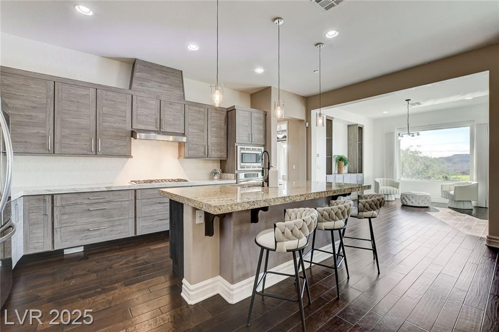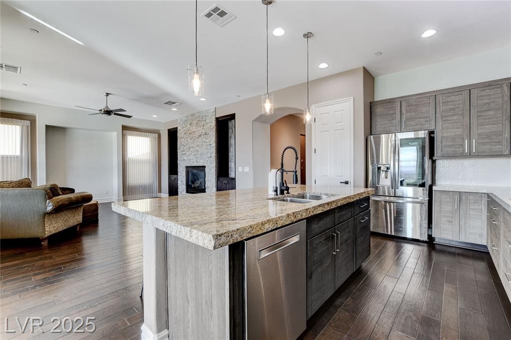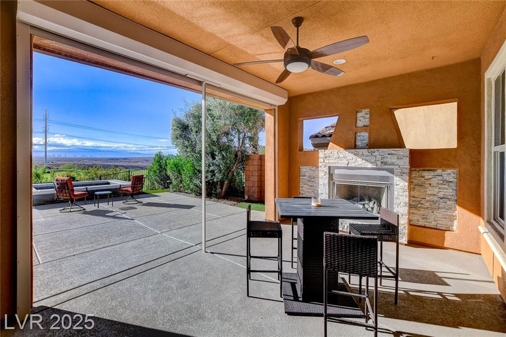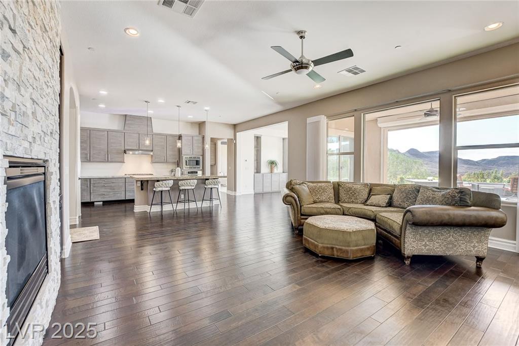Elegant Single-story residence located along the Falls Golf Course in the exclusive Bella Fiore community of Lake Las Vegas. This home boasts a fully remolded gourmet kitchen adorned with granite and quartz countertops accompanied with custom cabinetry that elevate the beauty and elegance. Rich hardwood floors throughout providing a lavish living experience at every turn. Step outside and enjoy your breath-taking Panoramic view of the Fabulous Las Vegas Strip all while enjoying and infinity edge pool and spa providing an ideal setting for entertaining guests. This retreat of a home blends elegance and relaxation offering a lifestyle of exclusivity.