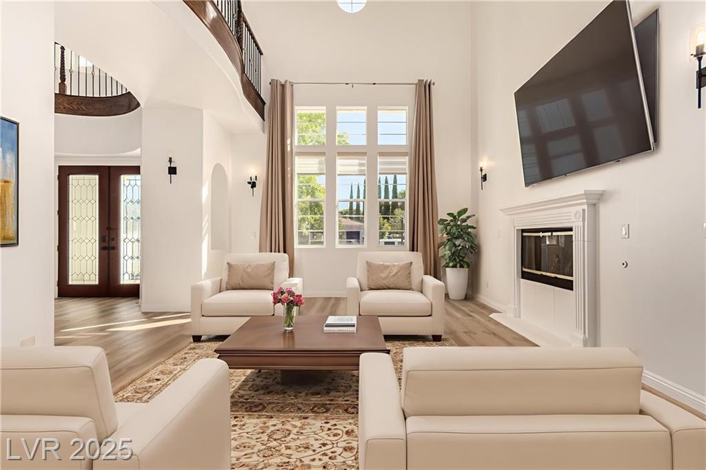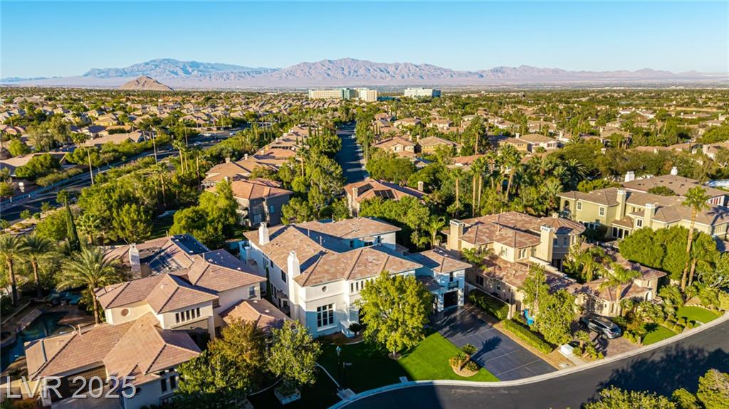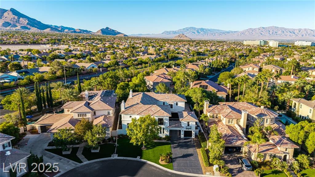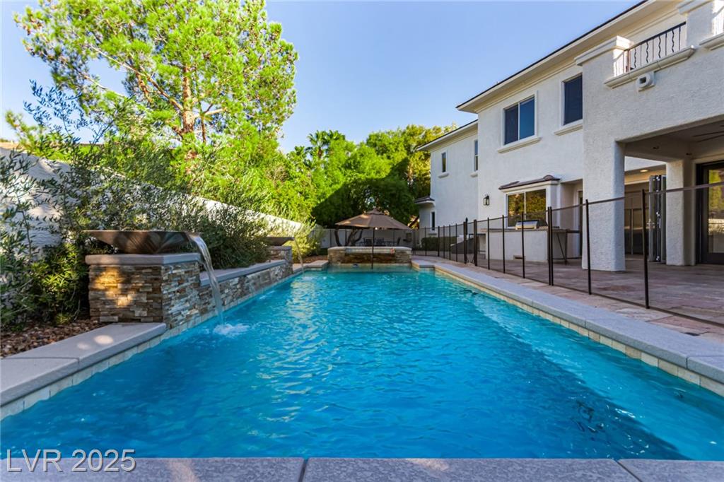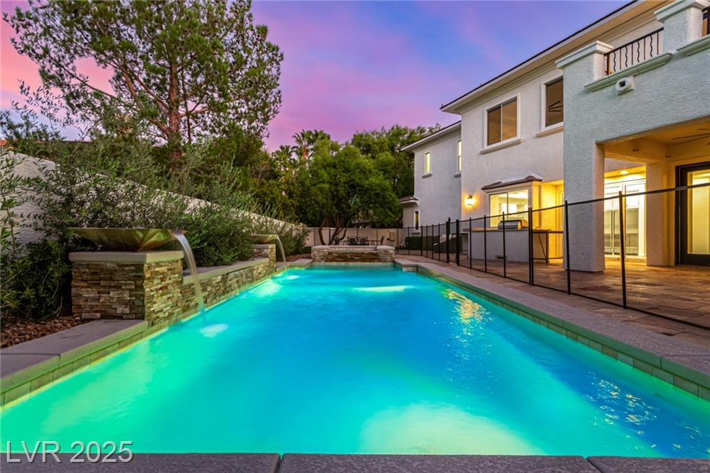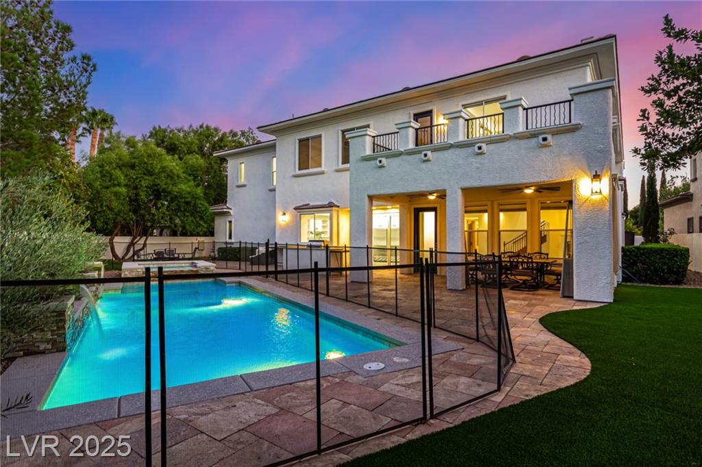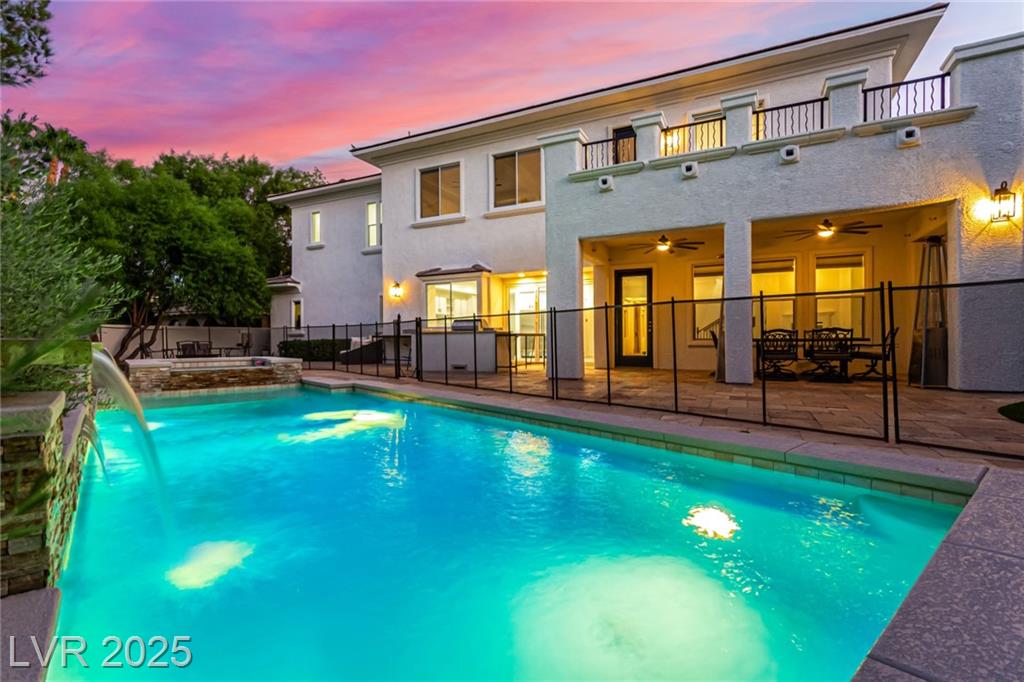 Welcome to Palisades,1 of Summerlin’s most exclusive guard-gated enclaves,where timeless elegance meets modern sophistication.Stunning estate spans over 6,100 sq. ft.of exquisite design,6 beds,7 baths,& detached casita is luxurious.Step into grand double drs into a hm that radiates refinement.Dramatic ceilings & impeccable craftsmanship.Chef’s kitch is a true masterpiece,w/ oversized island,custom cabinetry,w/i pantry.The fam & liv rms are each anchored by cozy fireplaces for ambiance.Primary suite is a retreat w/dual W/I closets,spa-inspired bath w/soaking tub & walk-through shower,private balcony overlooking the lush backyard.Each bdrm offers private baths,creating privacy for guests.Designed for true indoor-outdoor liv,residence features expansive sliding drs that open to a resort-style backyard.Enjoy a sparkling pool & spa w/waterfall,b/i BBQ island,covered patio,manicured landscaping & ambient lighting.Detached casita is an ideal space for flex liv/office w/ garage & entrance