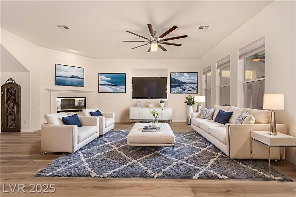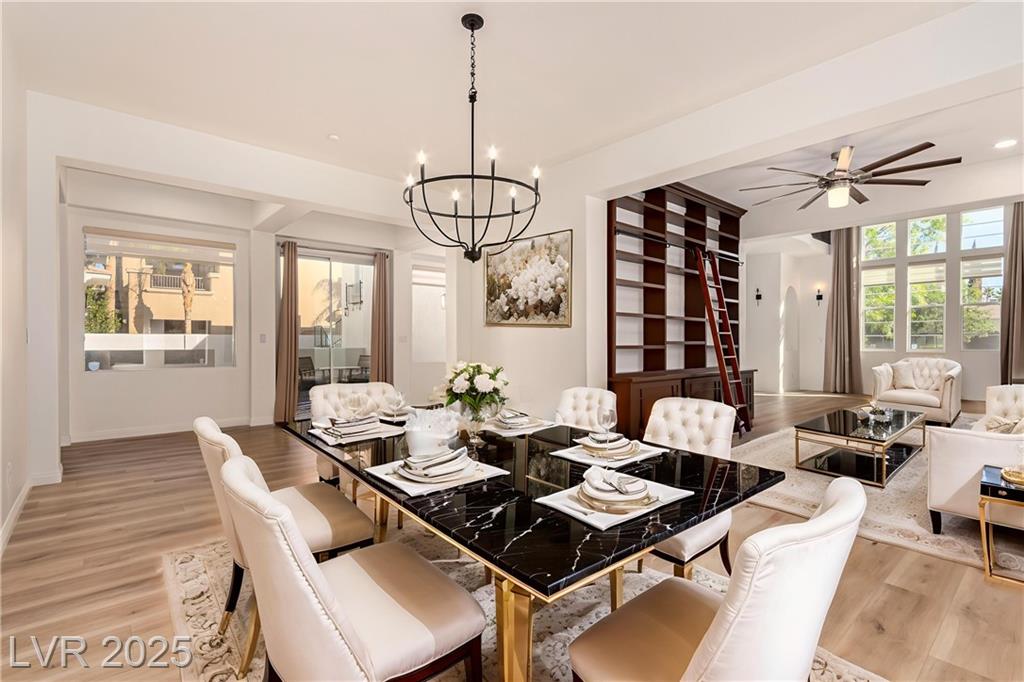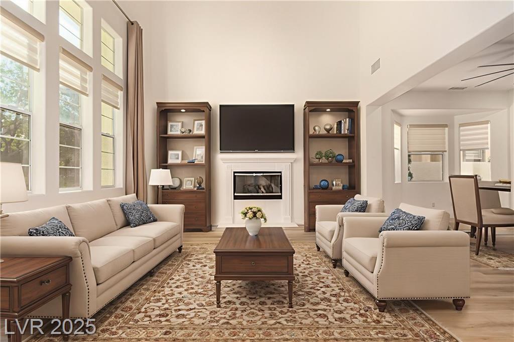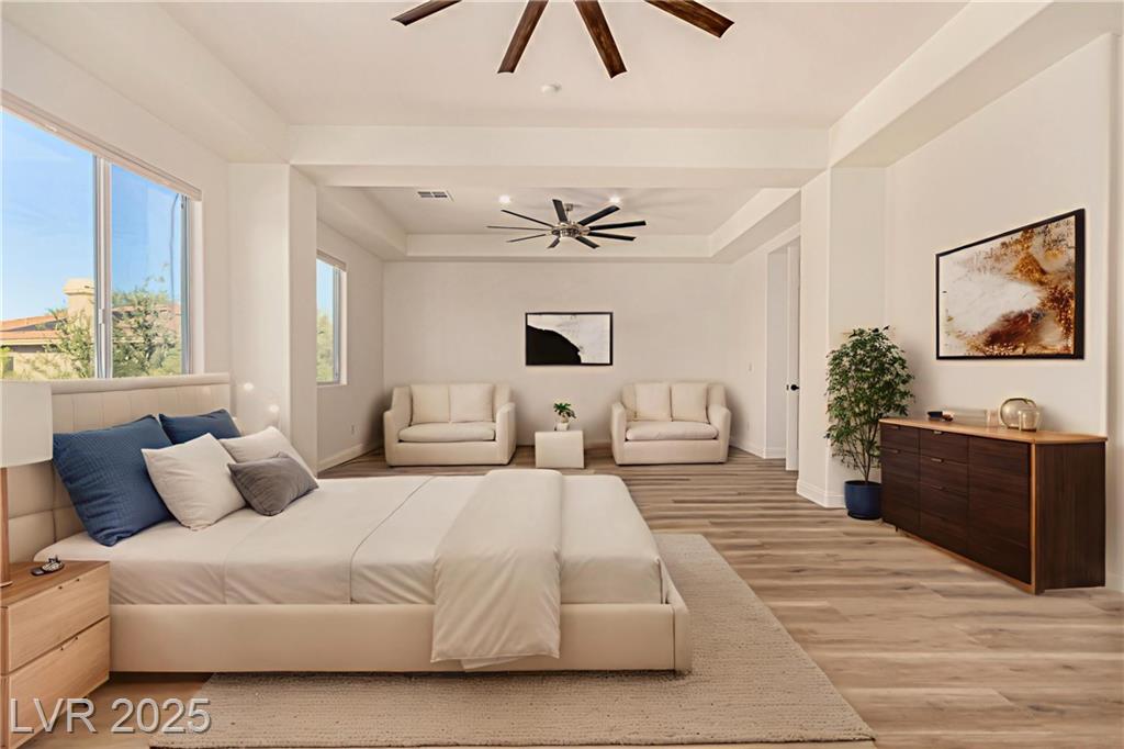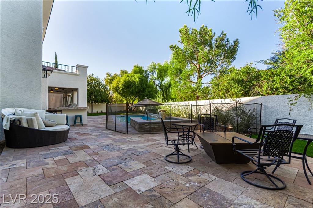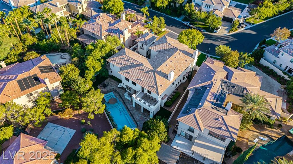 Welcome to Palisades,1 of Summerlin’s most exclusive guard-gated enclaves,where timeless elegance meets modern sophistication.Stunning estate spans over 6,100 sq. ft.of exquisite design,6 beds,7 baths,& detached casita is luxurious.Step into grand double drs into a hm that radiates refinement.Dramatic ceilings & impeccable craftsmanship.Chef’s kitch is a true masterpiece,w/ oversized island,custom cabinetry,w/i pantry.The fam & liv rms are each anchored by cozy fireplaces for ambiance.Primary suite is a retreat w/dual W/I closets,spa-inspired bath w/soaking tub & walk-through shower,private balcony overlooking the lush backyard.Each bdrm offers private baths,creating privacy for guests.Designed for true indoor-outdoor liv,residence features expansive sliding drs that open to a resort-style backyard.Enjoy a sparkling pool & spa w/waterfall,b/i BBQ island,covered patio,manicured landscaping & ambient lighting.Detached casita is an ideal space for flex liv/office w/ garage & entrance