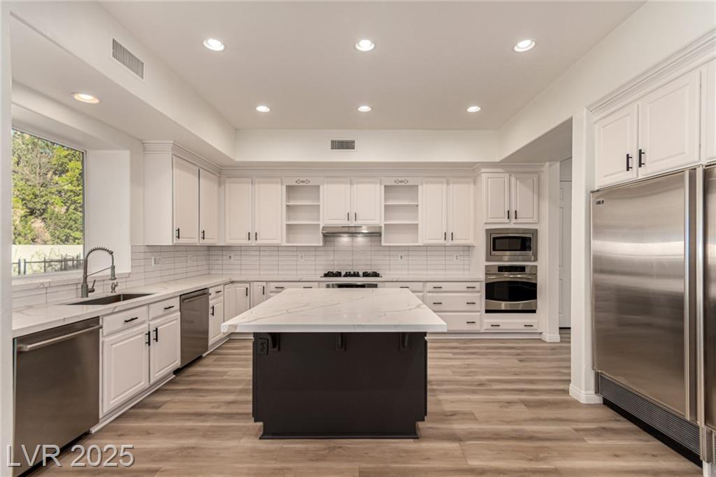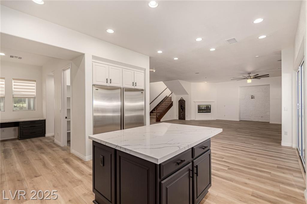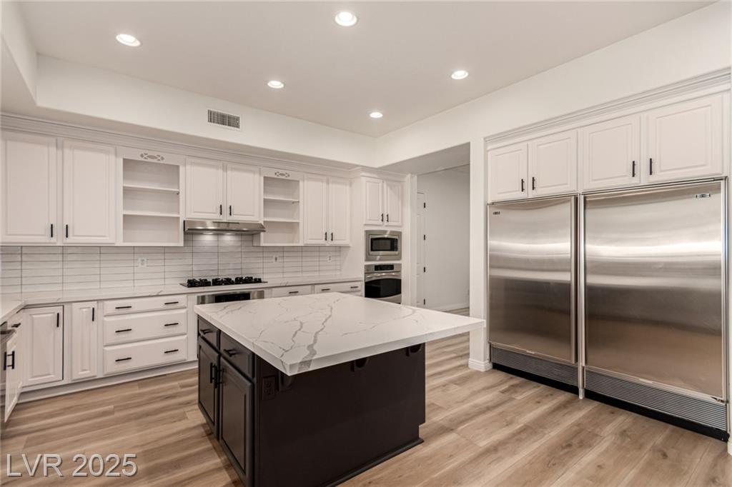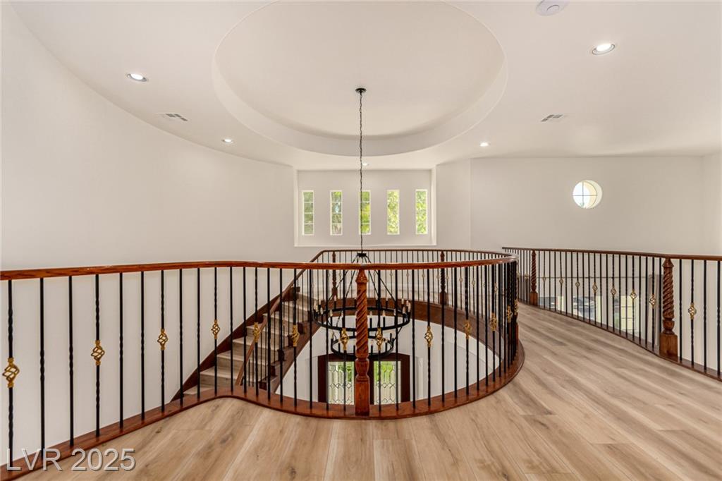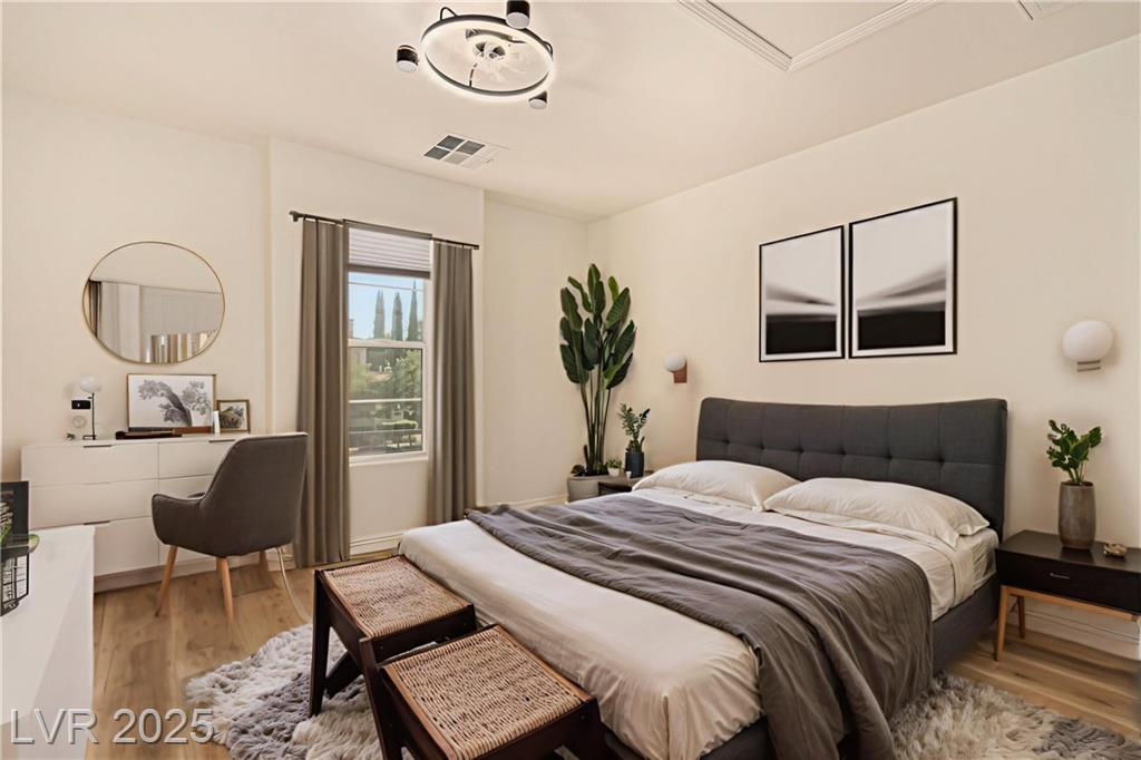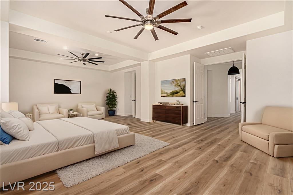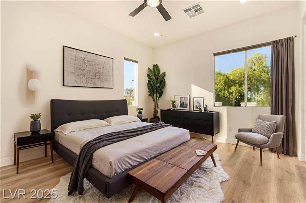 Welcome to Palisades,1 of Summerlin’s most exclusive guard-gated enclaves,where timeless elegance meets modern sophistication.Stunning estate spans over 6,100 sq. ft.of exquisite design,6 beds,7 baths,& detached casita is luxurious.Step into grand double drs into a hm that radiates refinement.Dramatic ceilings & impeccable craftsmanship.Chef’s kitch is a true masterpiece,w/ oversized island,custom cabinetry,w/i pantry.The fam & liv rms are each anchored by cozy fireplaces for ambiance.Primary suite is a retreat w/dual W/I closets,spa-inspired bath w/soaking tub & walk-through shower,private balcony overlooking the lush backyard.Each bdrm offers private baths,creating privacy for guests.Designed for true indoor-outdoor liv,residence features expansive sliding drs that open to a resort-style backyard.Enjoy a sparkling pool & spa w/waterfall,b/i BBQ island,covered patio,manicured landscaping & ambient lighting.Detached casita is an ideal space for flex liv/office w/ garage & entrance