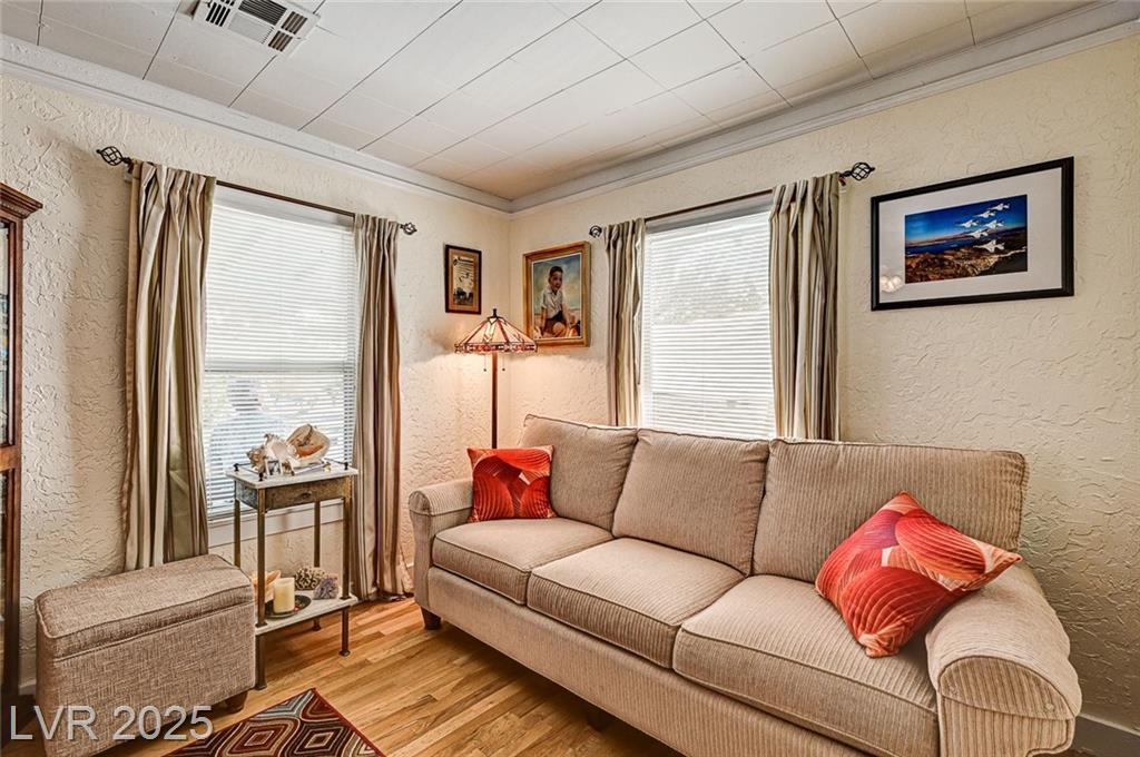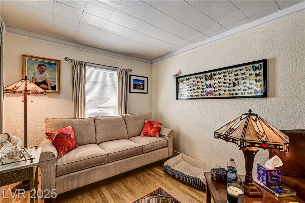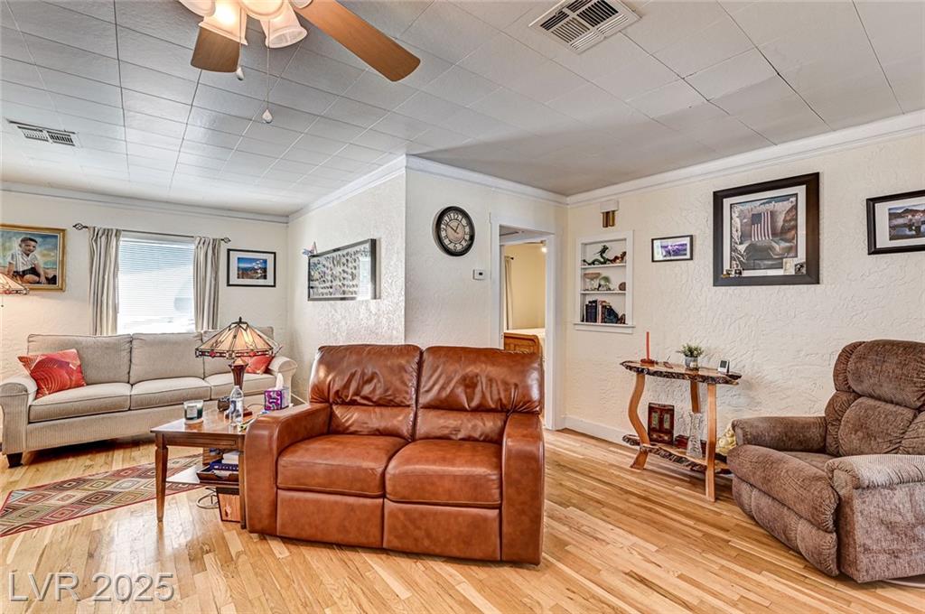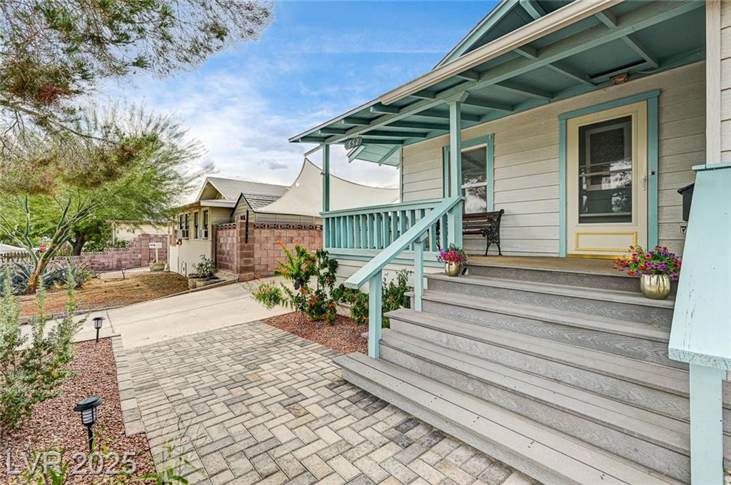 Well Maintained home - Near downtown - cozy rooms with original hardwood flooring in living area - NO HOA - All electric -Custom Landscaping and backyard has two trees - separate one car garage used for storage and converted the garage door to door/but could be converted back to garage door - alley access to garage and backyard - shed also stays - garden area . Your chance to own a part of History by living in Boulder City. The owner has listed the property contingent on his finding another property to replace this residence. Seller Firm on price.