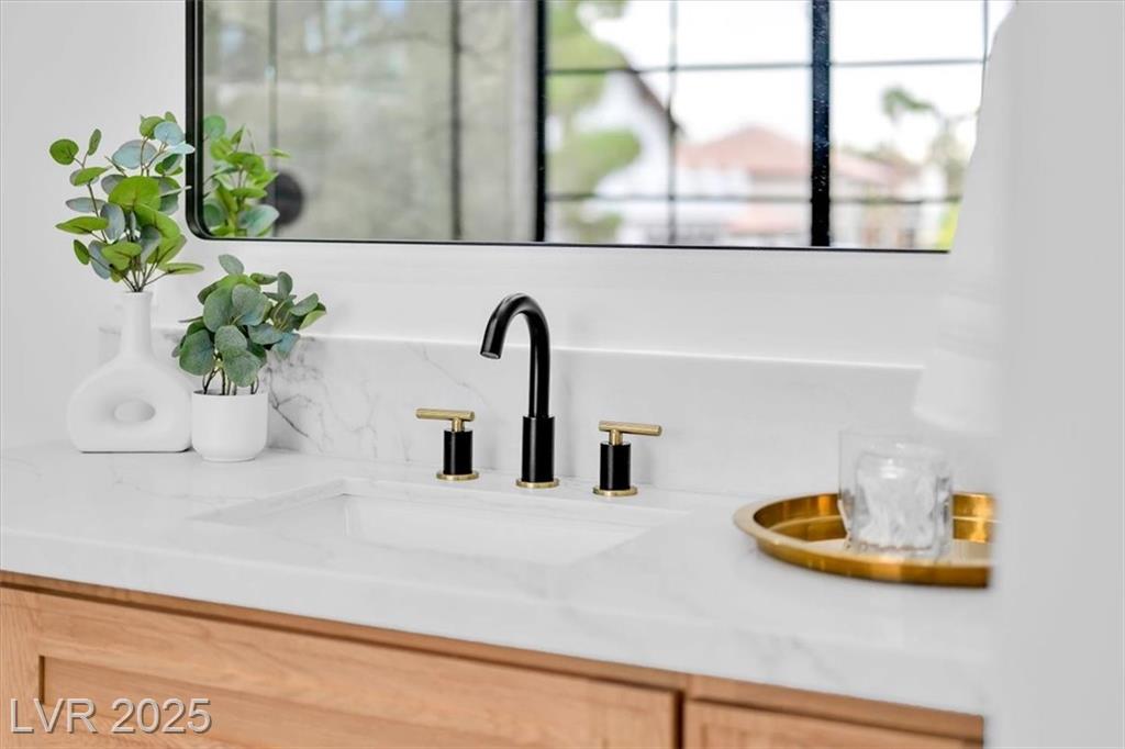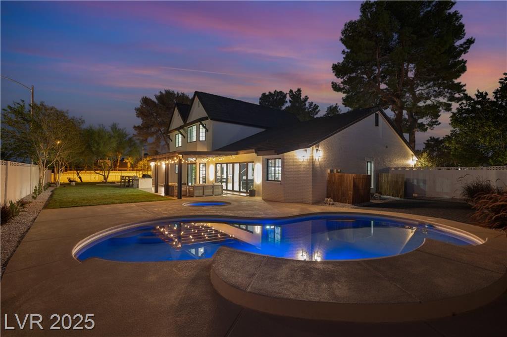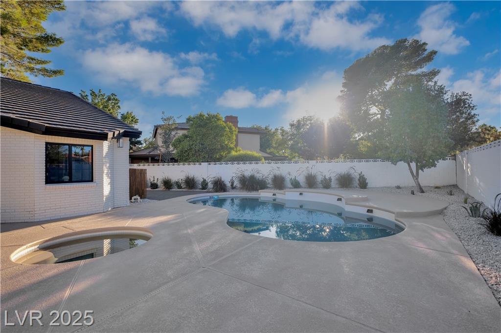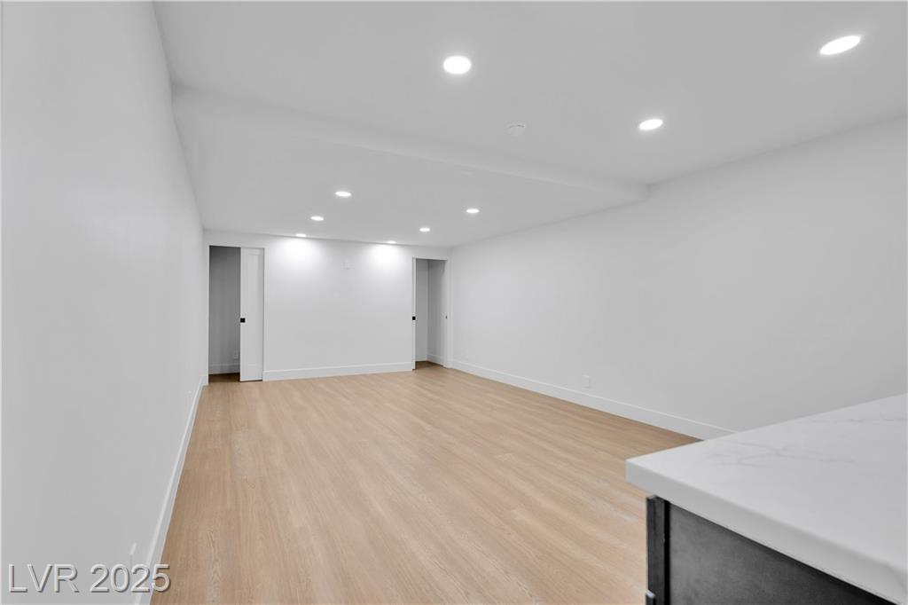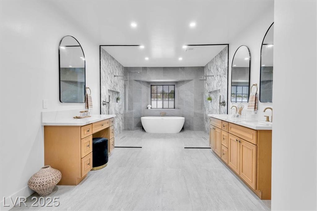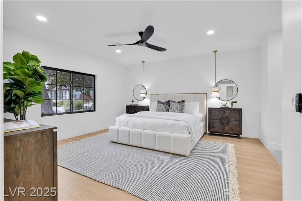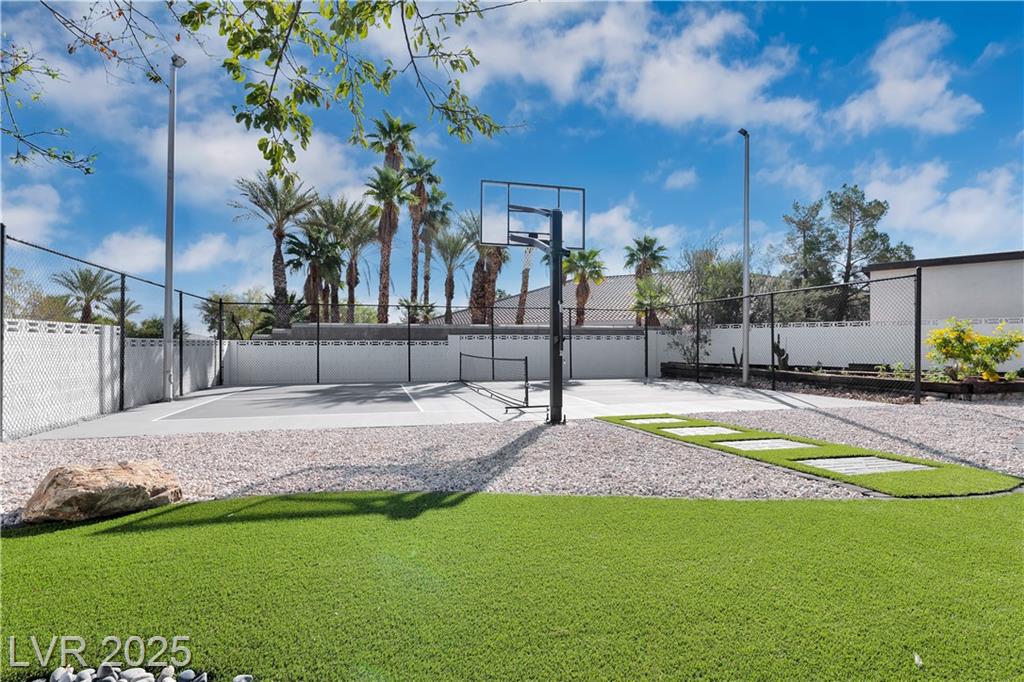 Luxury Residence in Prestigious Section 10, known for its sprawling estates, oversized lots, and timeless prestige. This fully renovated 6-bedroom, 5.5-bath luxury residence offers over 5,400 sqft of living space, including a versatile 1,100 sqft basement or next-gen suite. Highlights include a chef’s kitchen with quartz waterfall island, hidden prep kitchen with butler’s pantry, with Z-Line appliances. Expansive glass sliders open to a resort-style pool & spa, pickleball, basketball courts 4-hole mini golf, RV parking with full hookups, & lush desert landscaping. The spa-inspired primary suite boasts dual showers, freestanding soaking tub, walk-in closet, vanity, & private washer/dryer. Additional upgrades include wide-plank luxury vinyl flooring, smart home lighting, Tesla charging station, epoxy garage floors, and even a doggie spa. Set on nearly half an acre with no HOA, this estate blends modern glamour with the prestige of Section 10, just minutes from the Strip.