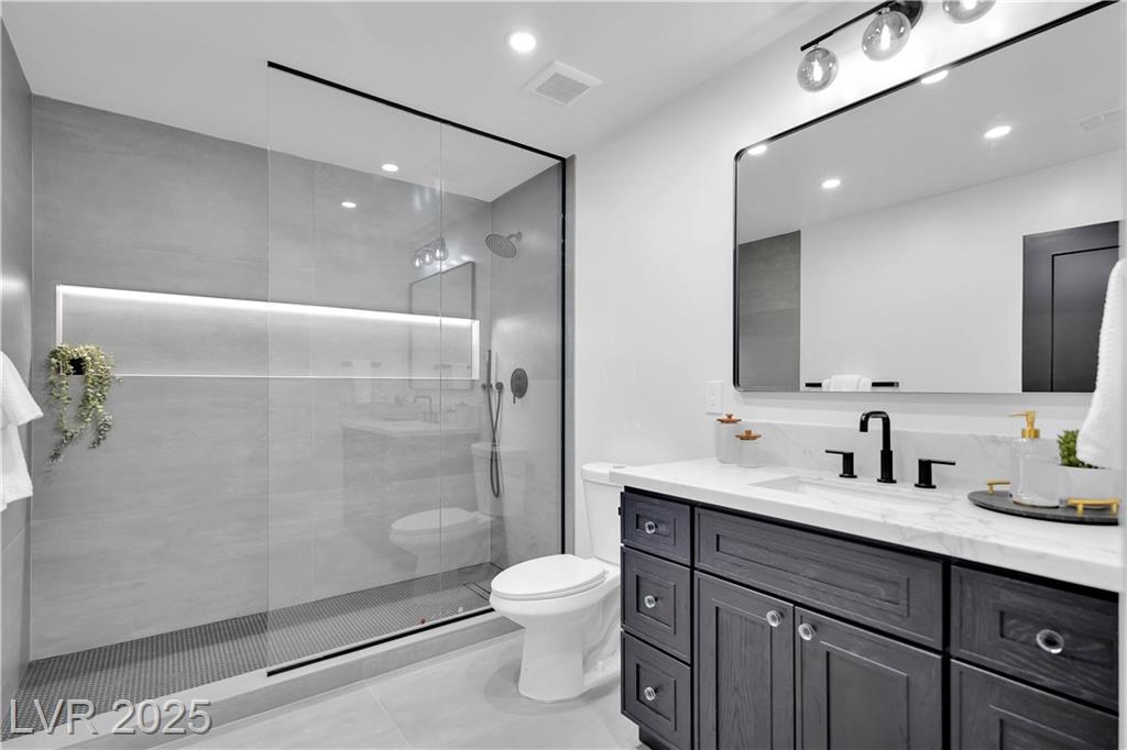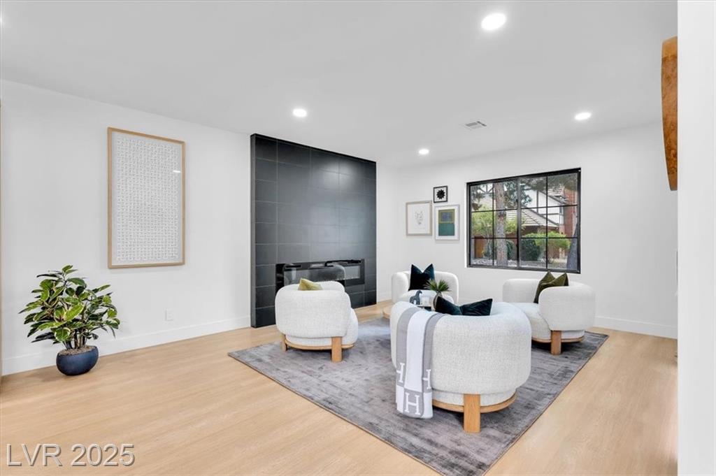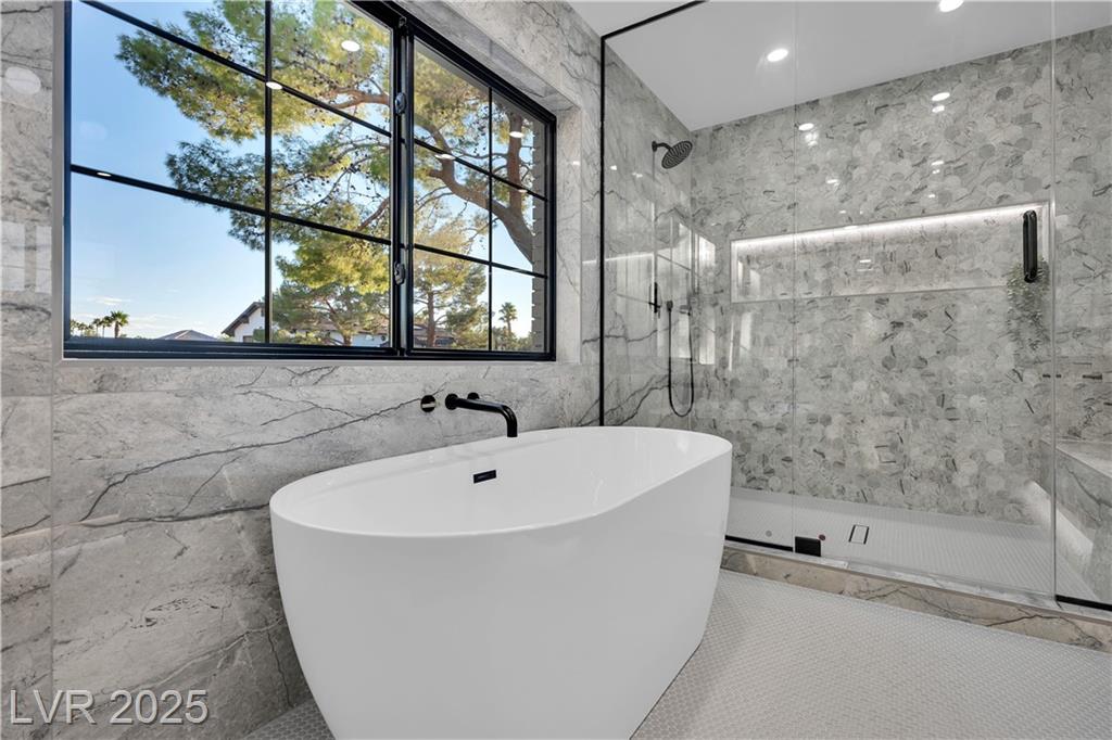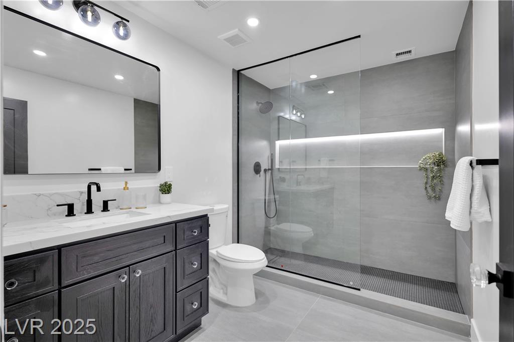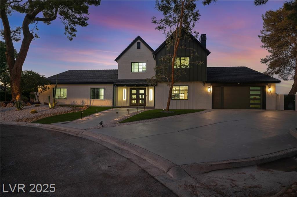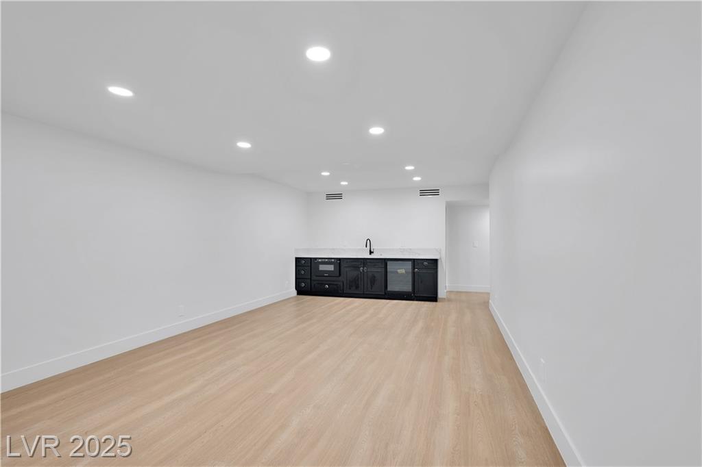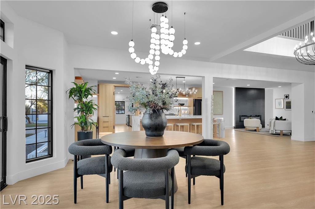 Luxury Residence in Prestigious Section 10, known for its sprawling estates, oversized lots, and timeless prestige. This fully renovated 6-bedroom, 5.5-bath luxury residence offers over 5,400 sqft of living space, including a versatile 1,100 sqft basement or next-gen suite. Highlights include a chef’s kitchen with quartz waterfall island, hidden prep kitchen with butler’s pantry, with Z-Line appliances. Expansive glass sliders open to a resort-style pool & spa, pickleball, basketball courts 4-hole mini golf, RV parking with full hookups, & lush desert landscaping. The spa-inspired primary suite boasts dual showers, freestanding soaking tub, walk-in closet, vanity, & private washer/dryer. Additional upgrades include wide-plank luxury vinyl flooring, smart home lighting, Tesla charging station, epoxy garage floors, and even a doggie spa. Set on nearly half an acre with no HOA, this estate blends modern glamour with the prestige of Section 10, just minutes from the Strip.