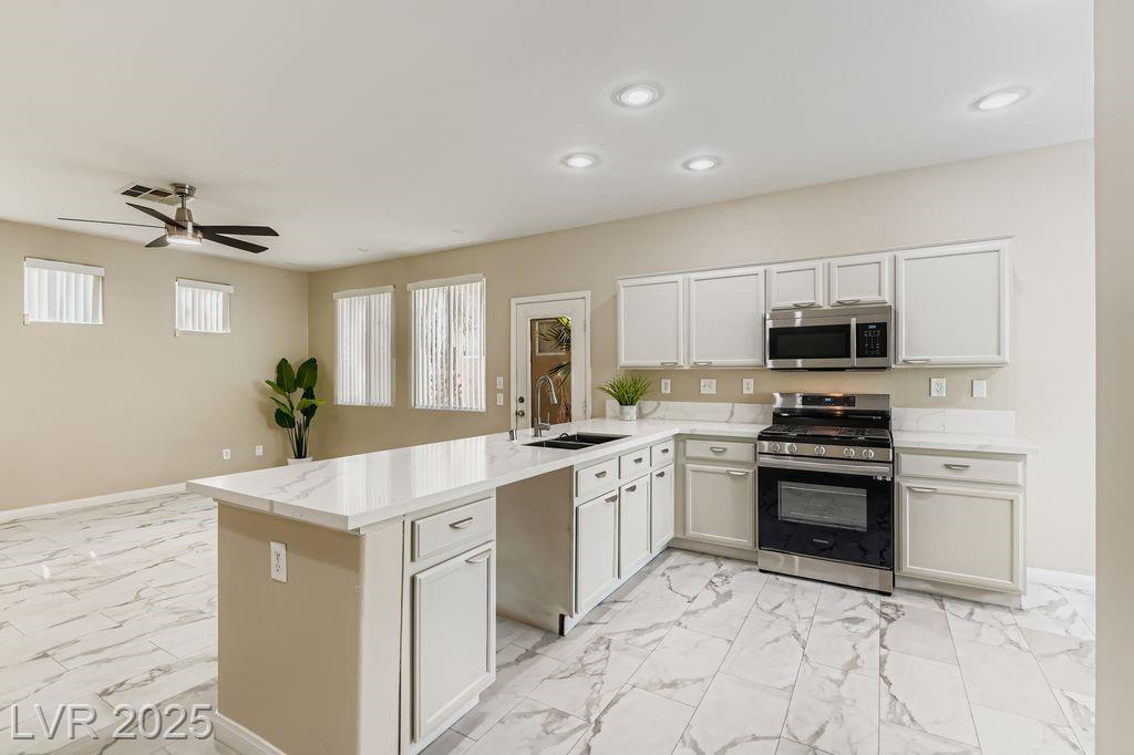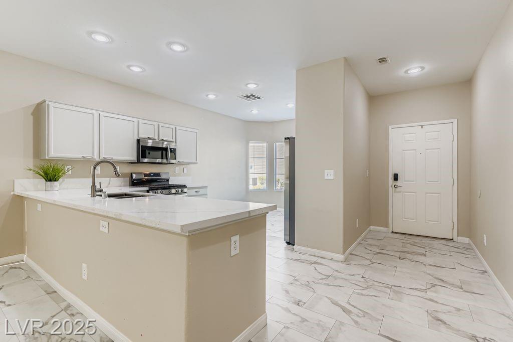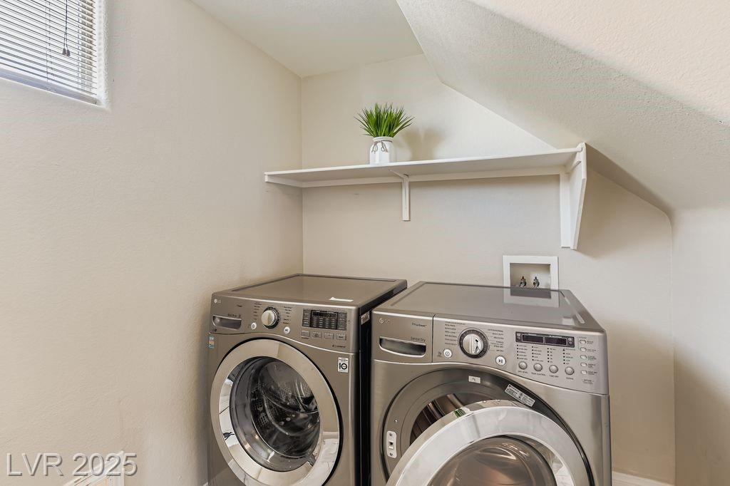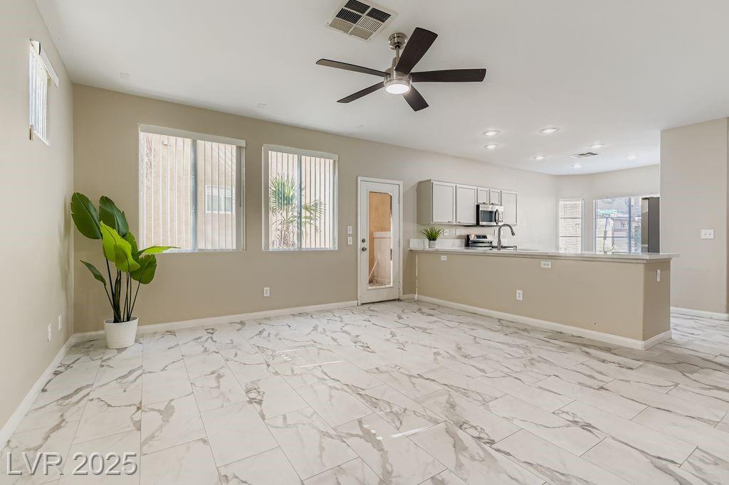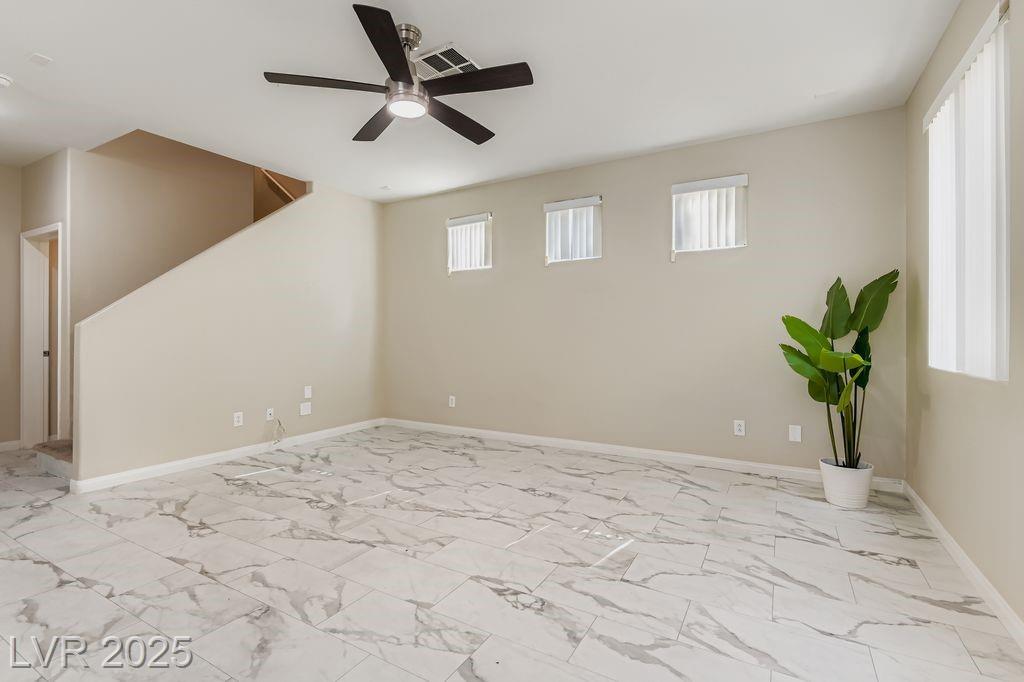 Location, convenience, and lifestyle come together in this 3-bedroom, 2.5-bath home within a private gated community in Southwest Las Vegas. Just minutes from the I-215, Durango Hotel & Resort, Harry Reid International Airport, and the Las Vegas Strip, this home puts you i the central hub of entertainment, dining, shopping, and more. Inside, a bright and open floor plan features versatile two-tone paint, luxury vinyl plank flooring, and marble quartz countertops that elevate the kitchen space. The flowing living and dining areas create a comfortable space for entertaining or relaxing. Upstairs features a primary suite with a walk-in closet and dual-sink vanity bath, as well as two well-appointed guest bedrooms and a full bath. For an outdoor retreat, unwind in the low-maintenance backyard, featuring desert landscaping and mature palm trees. This charming home is a must-see for anyone seeking a welcoming and comfortable place to call “home". Schedule your private showing today!