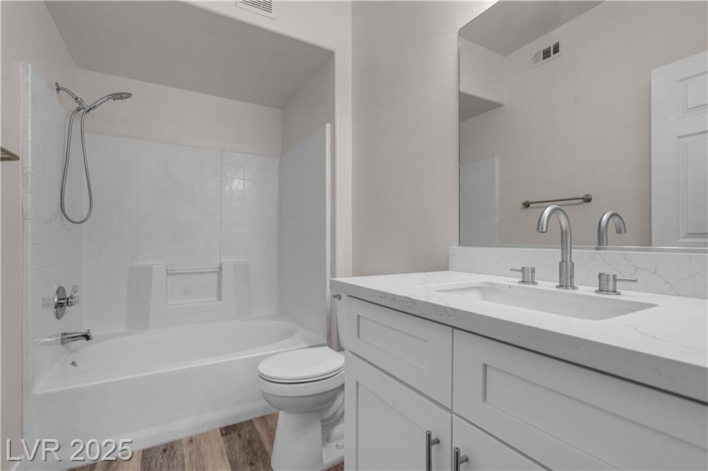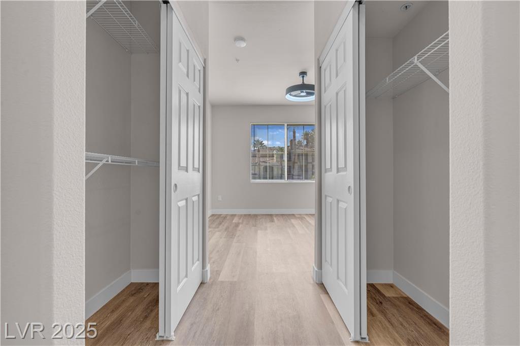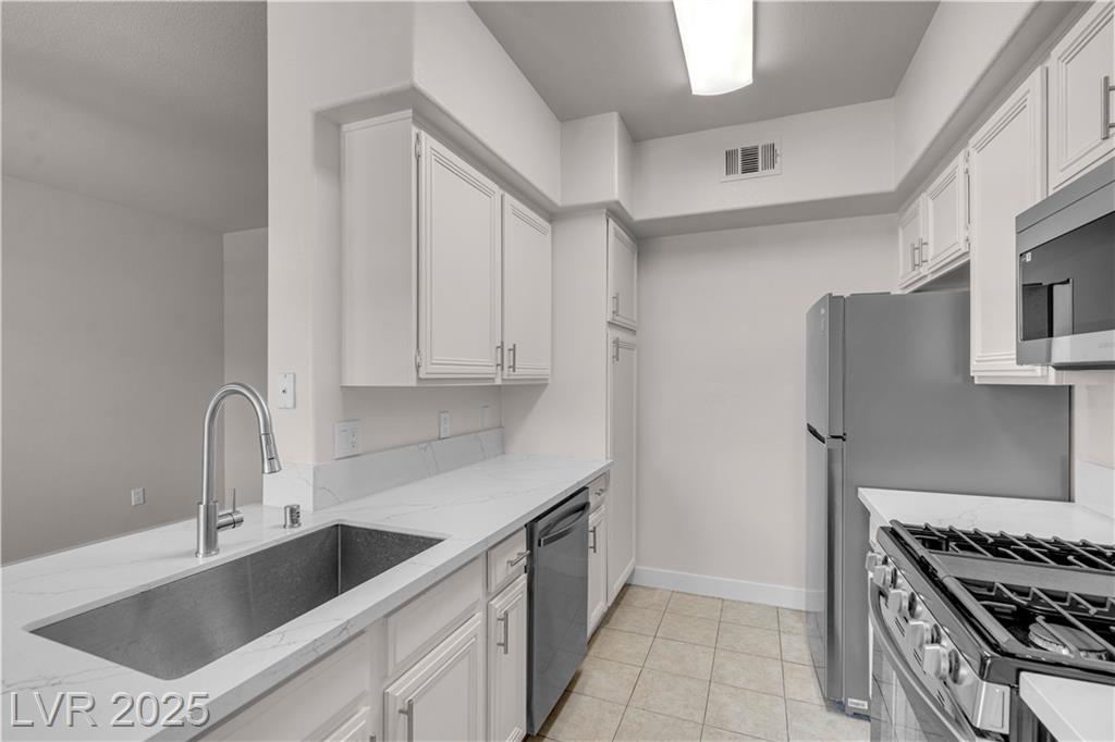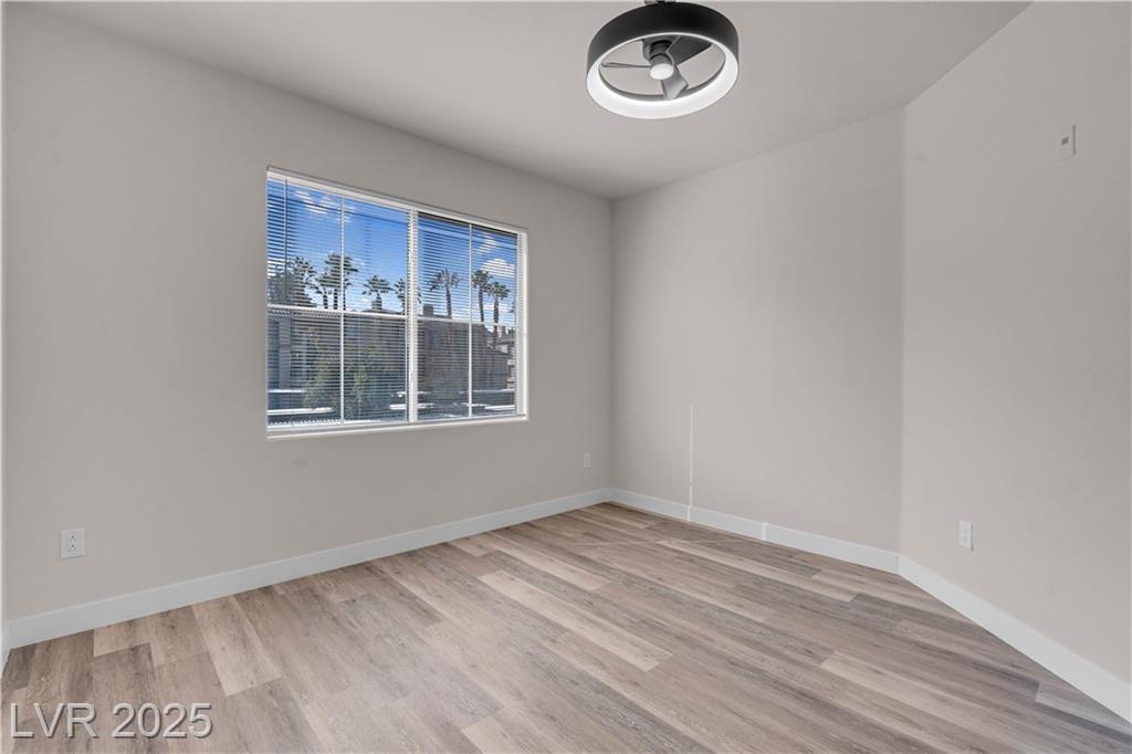 Welcome to this beautifully upgraded 2-bedroom, 2-bath condo in a desirable gated community! This 943 sq. ft. second-floor home features brand-new kitchen appliances, fresh paint, new wood laminate flooring, updated hardware, stylish ceiling fans, a modern countertop, and refreshed vanity. The open floor plan separates the primary suite, offering two closets and a linen cabinet, from the spacious second bedroom with a walk-in closet. Relax by the fireplace or on your private balcony. Just 3 minutes to Durango Casino, 15 minutes to the airport, and 18 minutes to the Strip, this location is unbeatable—plus you’re within walking distance to shops, dining, and essentials. Enjoy resort-style amenities including three pools, spas, tennis courts, saunas, fitness center, and multiple workout areas. Move-in ready at a competitive price, this home is perfect for first-time buyers, investors, or anyone seeking low-maintenance living with resort-style comfort!