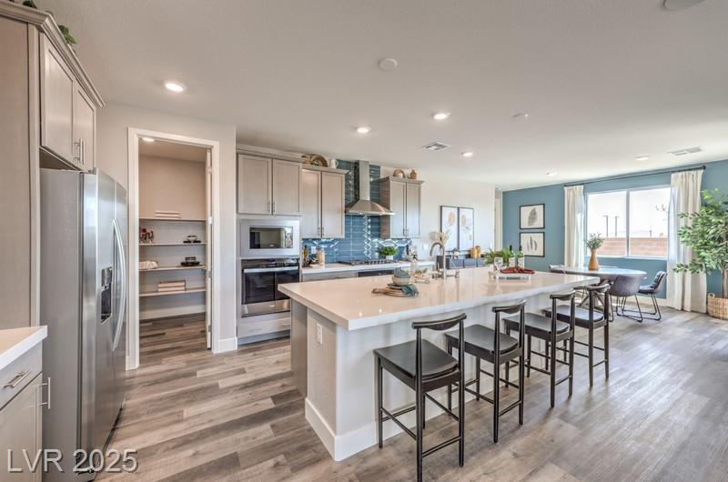 BRAND NEW 3-CAR GARAGE SINGLE STORY WITH INCLUDED MULTI-GEN SUITE backing to the preserve. Backed by Fortune 500 Company. Elevation E with Stainless Steel Whirlpool Dishwasher, Range, & Microwave, LVP flooring, Quartz Kitchen/Bath Countertops, Smart Home Features, Tankless Water Heater, Included Patio Cover! **NOVEMBER COMPLETION** Gated Community located in The Villages at Tule Springs Masterplan. Ask about our incentives! The Heartland Manor Sales Office is located at: 7670 Amanda Springs Lane, North Las Vegas, NV 89084. Office hours are 10AM-5PM Daily. Can Vary Due to Events and Holidays. PHOTOS ARE OF THE 2754 PLAN MODEL HOME- ARTISTIC RENDERING *material/features/colors can vary & are subject to change* 2754 Plan, Elevation E- ARTISTIC RENDERING; Exterior Features/Colors Will Vary. Elevation is representational only, subject to change.