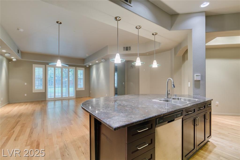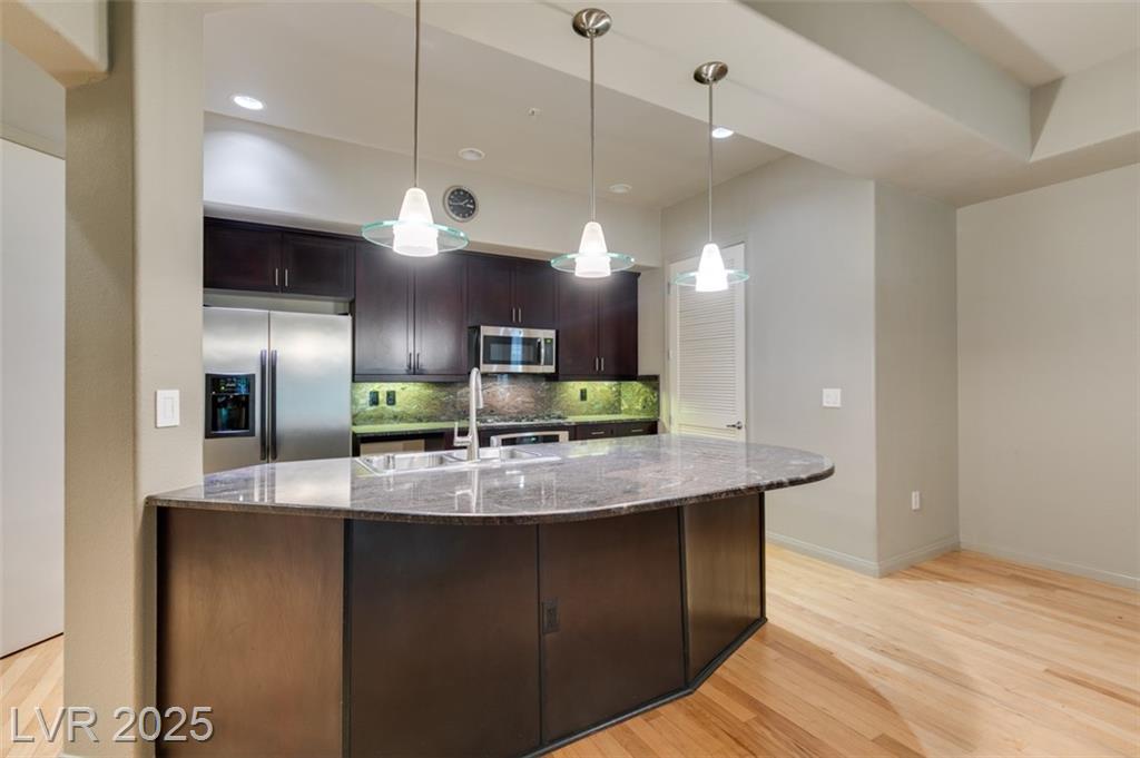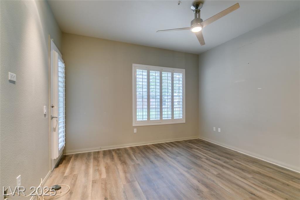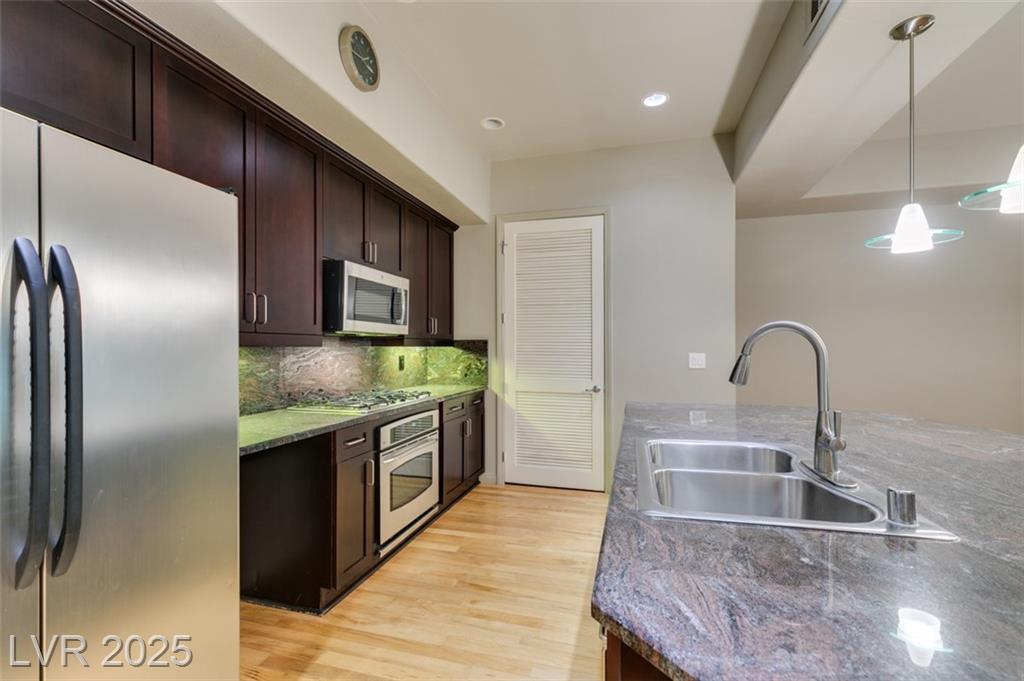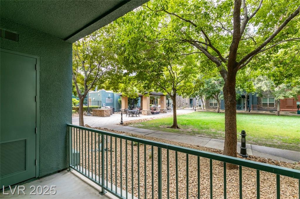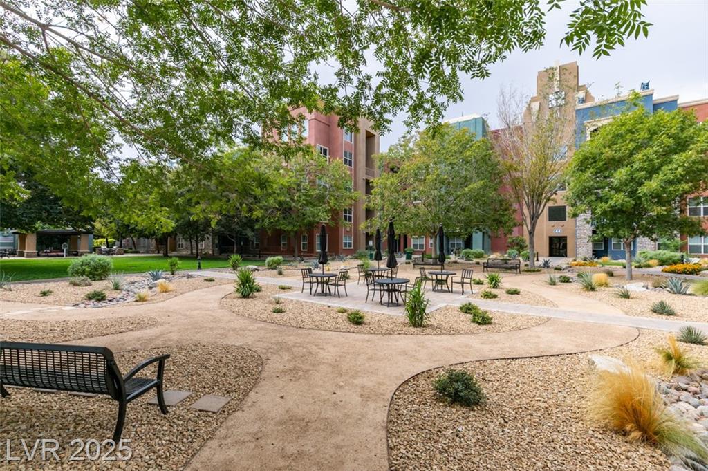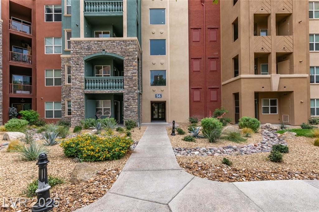 Highly desirable 1st floor condo with numerous upgrades including shutters, surround sound, ceiling fans, and more. Experience upscale mid-rise living in this spacious 3-bedroom, 2-bath home at the sought-after Manhattan Condos, a guard-gated community just minutes from the Las Vegas Strip and Allegiant Stadium. The open-concept layout offers high ceilings, abundant natural light, and a modern kitchen with granite countertops, stainless steel appliances, and a breakfast bar perfect for entertaining. The primary suite features a custom walk-in closet and ensuite bath with dual sinks and a soaking tub. Relax on your private balcony with peaceful community views. Enjoy resort-style amenities including sparkling pools, a state-of-the-art fitness center, yoga studio, clubhouse, business center, and lush green spaces. Pet-friendly community with a premium location offering comfort, security, and luxury at an unbeatable value.