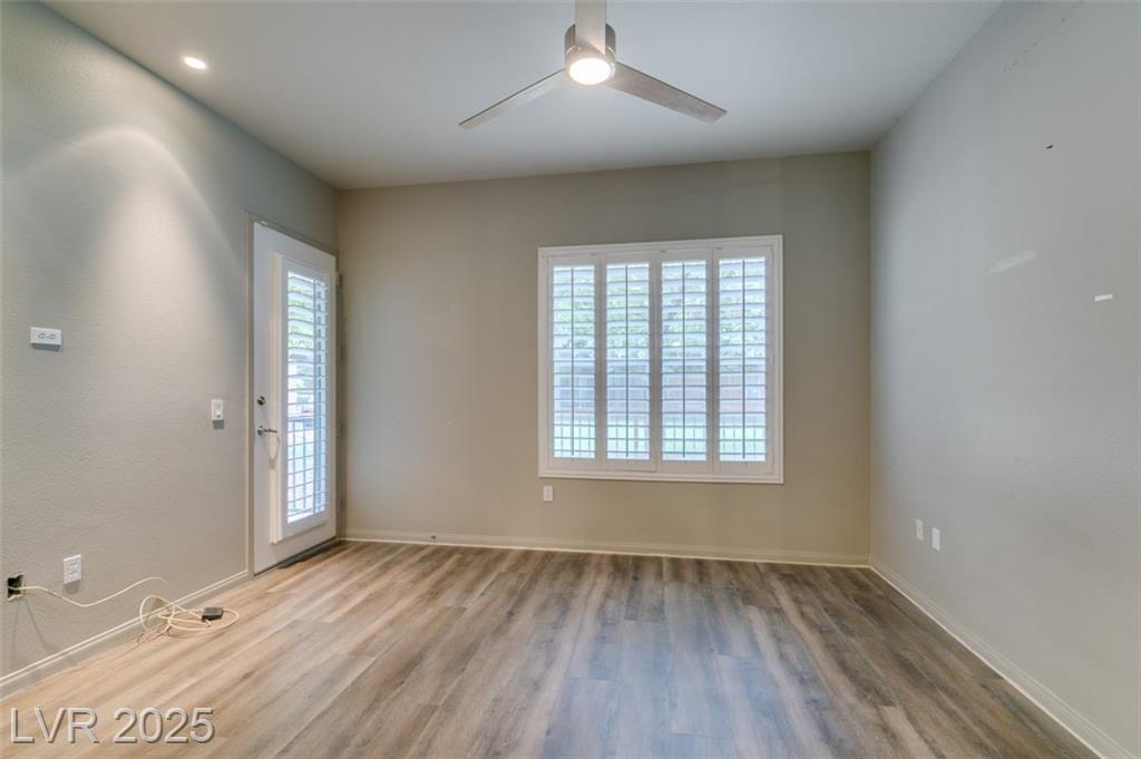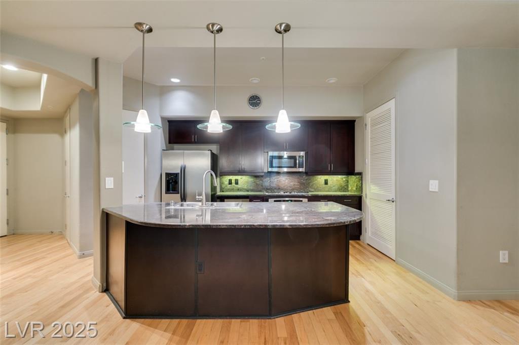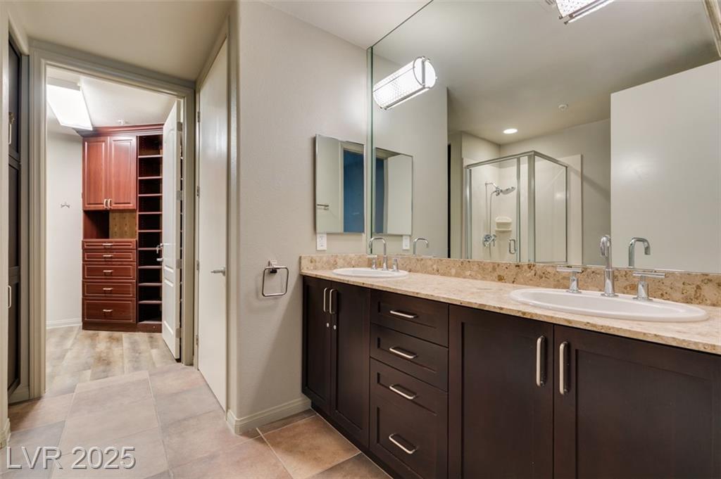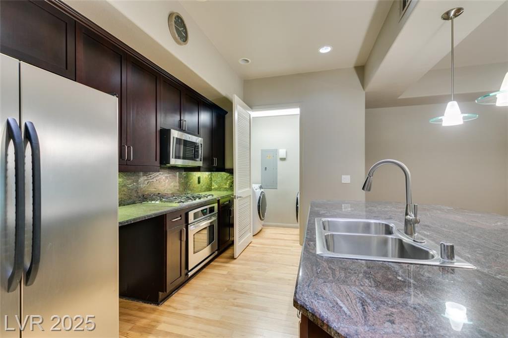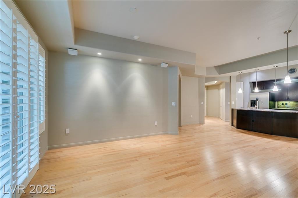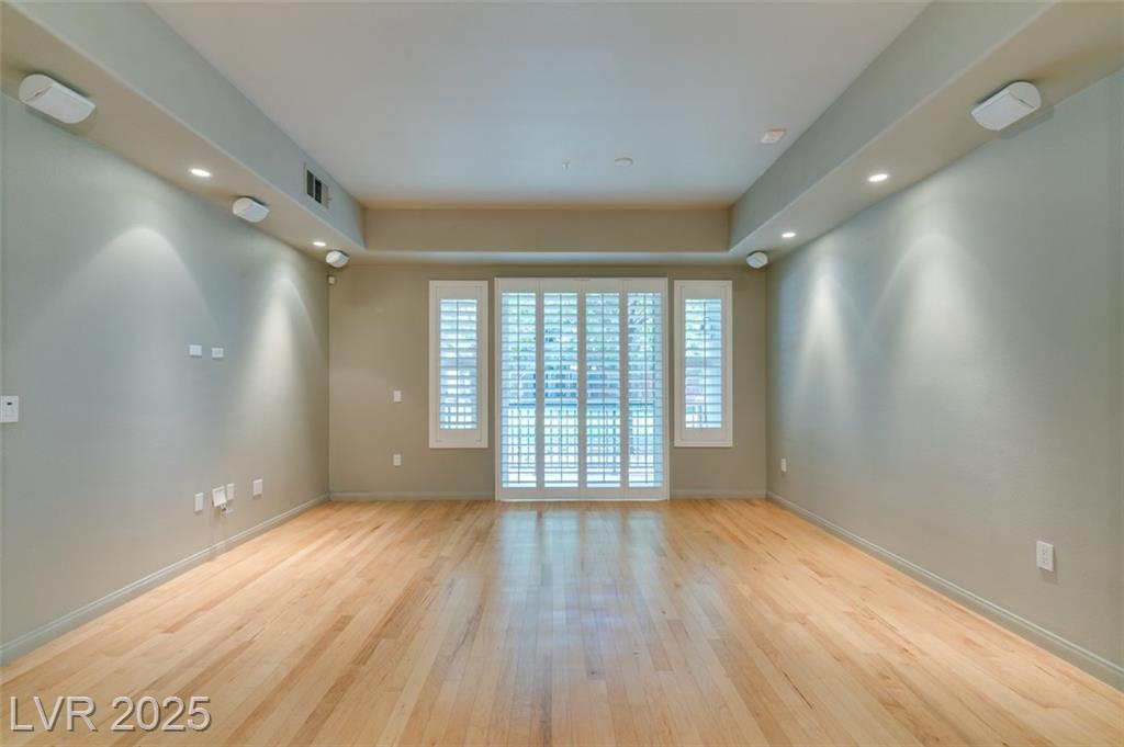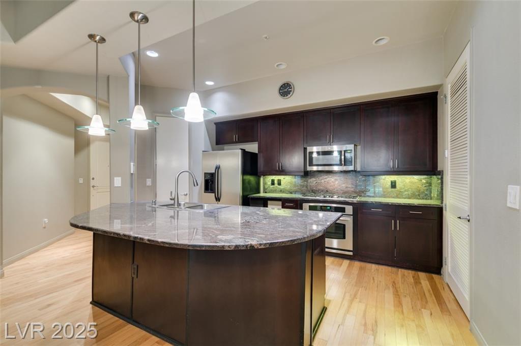 Highly desirable 1st floor condo with numerous upgrades including shutters, surround sound, ceiling fans, and more. Experience upscale mid-rise living in this spacious 3-bedroom, 2-bath home at the sought-after Manhattan Condos, a guard-gated community just minutes from the Las Vegas Strip and Allegiant Stadium. The open-concept layout offers high ceilings, abundant natural light, and a modern kitchen with granite countertops, stainless steel appliances, and a breakfast bar perfect for entertaining. The primary suite features a custom walk-in closet and ensuite bath with dual sinks and a soaking tub. Relax on your private balcony with peaceful community views. Enjoy resort-style amenities including sparkling pools, a state-of-the-art fitness center, yoga studio, clubhouse, business center, and lush green spaces. Pet-friendly community with a premium location offering comfort, security, and luxury at an unbeatable value.