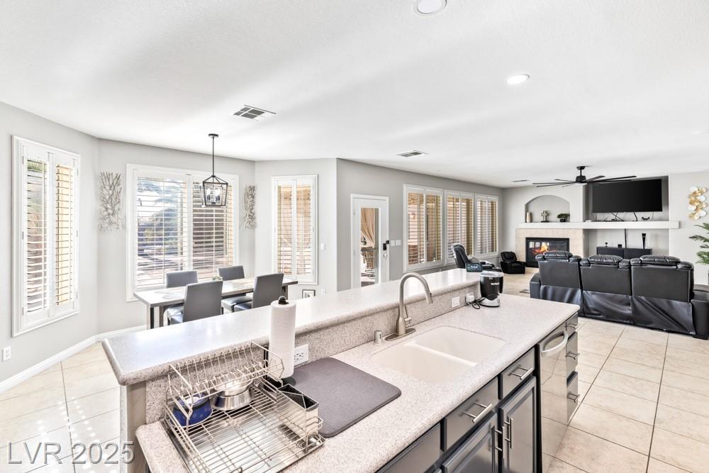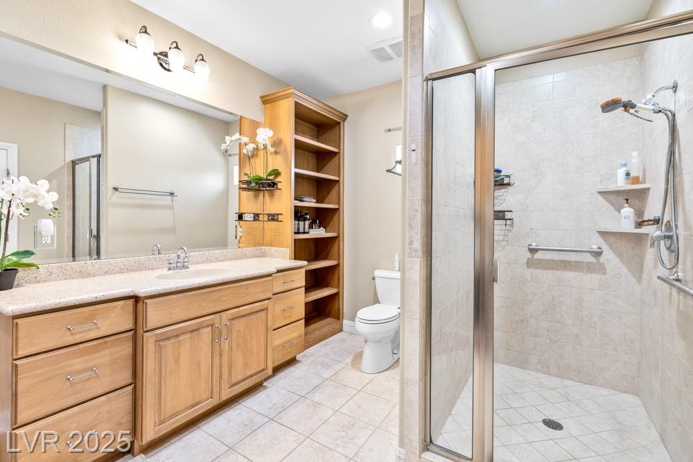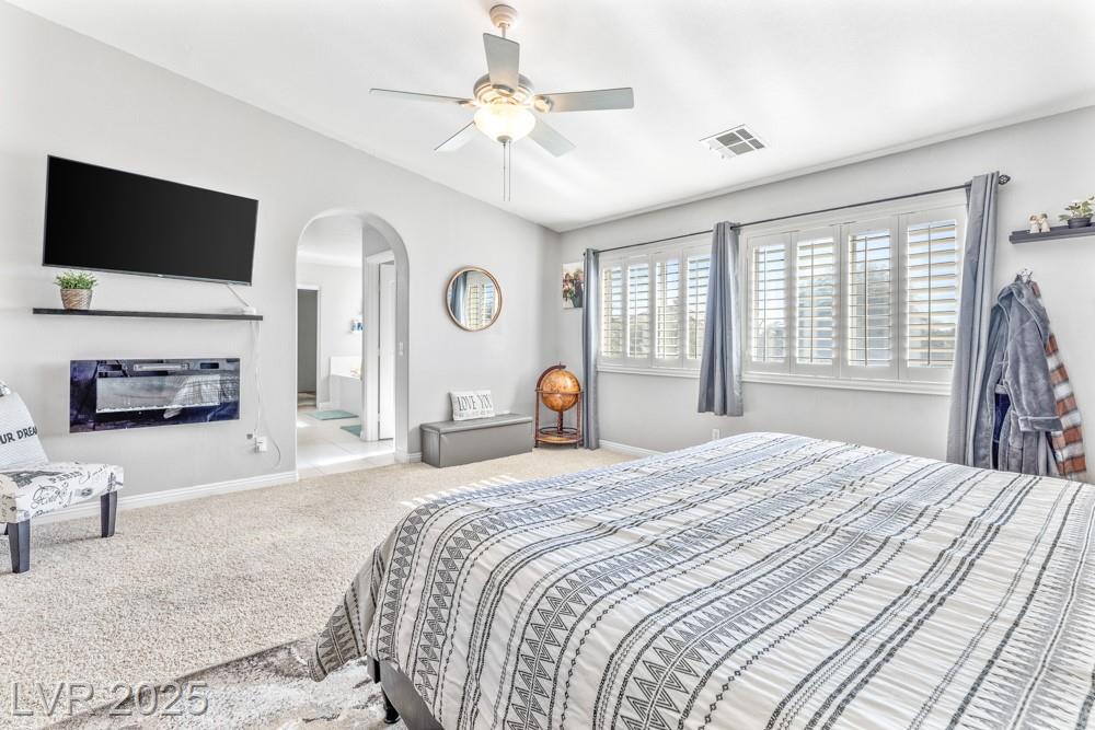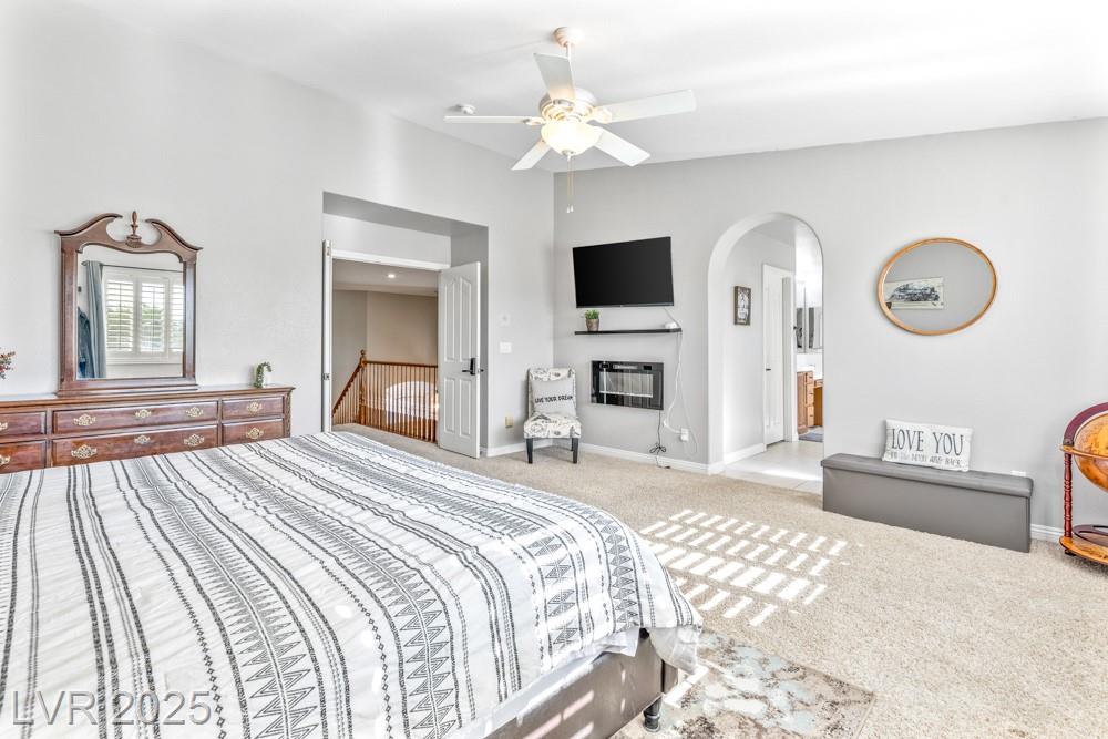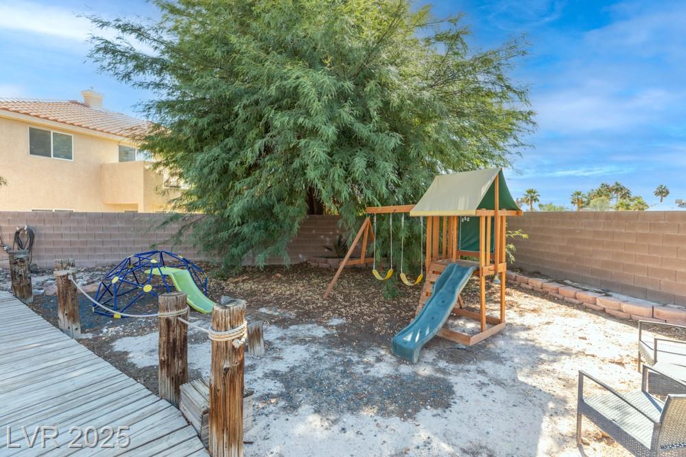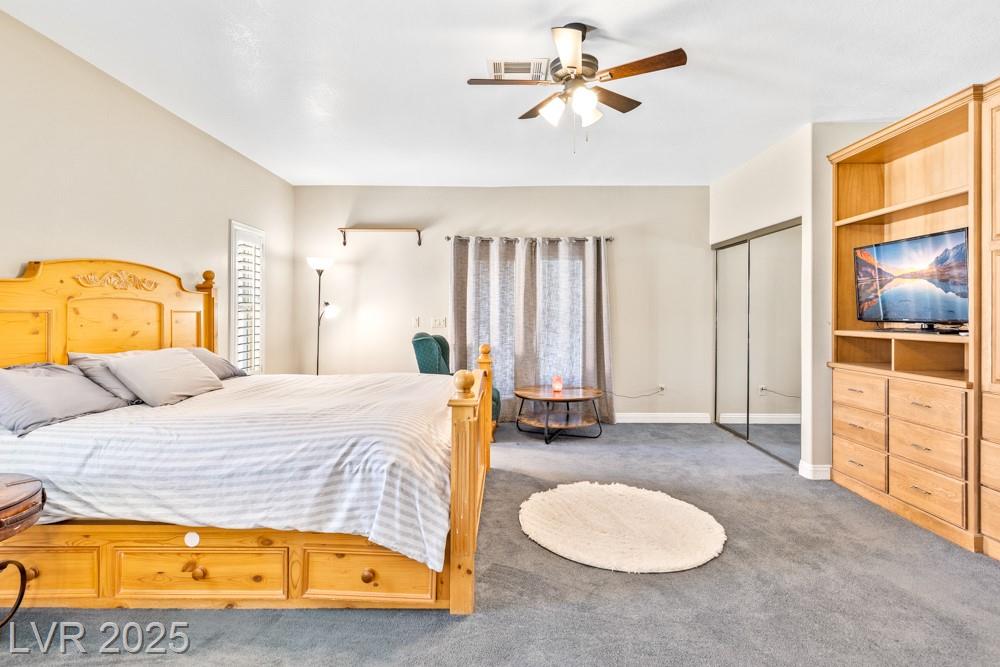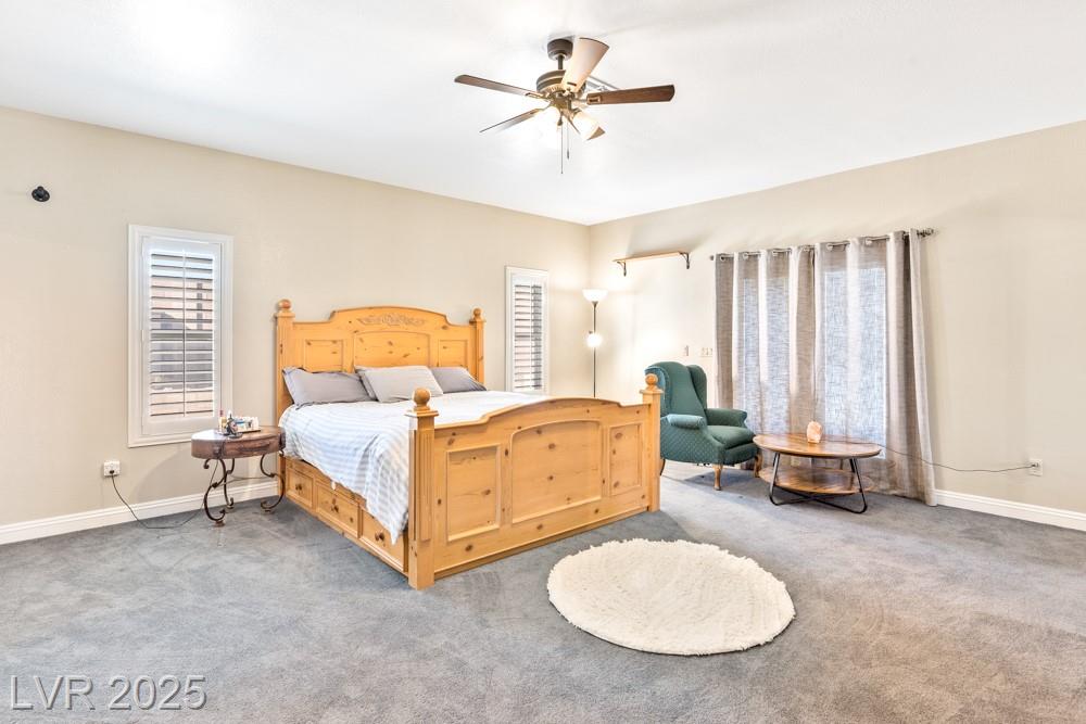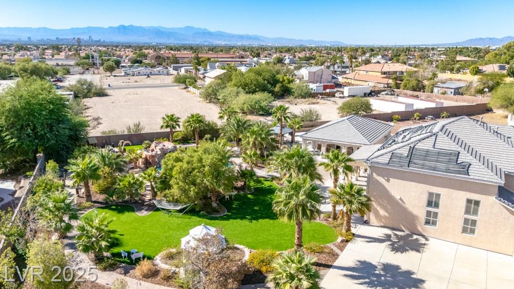 Rare near-1 acre lot with incredible Strip and city views. This property sits on a an oversized pie-shaped corner lot (the largest in the subdivision) and offers everything for true entertaining living. The main house features 6 bedrooms, an open floor plan, plantation shutters, stainless steel appliances, and a large primary suite with a walk-in shower. The separate full-size guest house is ideal for visitors or a mother-in-law suite and includes its own full kitchen, family room, bedroom, and laundry area. Outside, enjoy huge covered patios, light-up gazebos, and a stunning backyard with a waterfall, private cave, and low-maintenance turf. There’s also a massive 5-car garage, RV and boat parking with plenty of room to spare, and open space for entertaining. Sprawling backyard with low-maintenance good looking turf, multiple sitting areas, pool and spa. Rare combination of modern, newer style construction with a very large lot size. Come make this beautiful estate yours today!