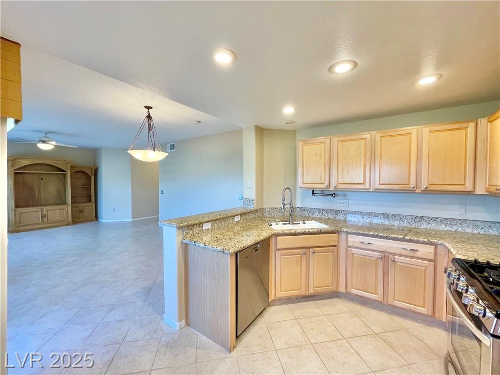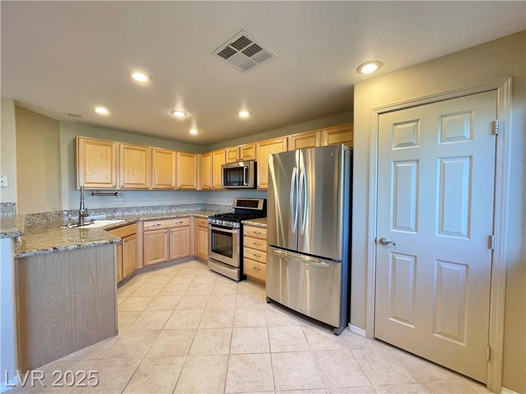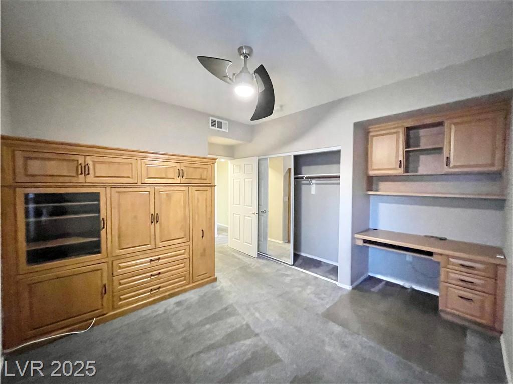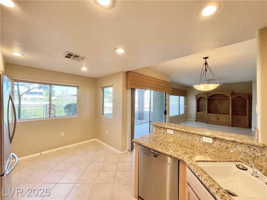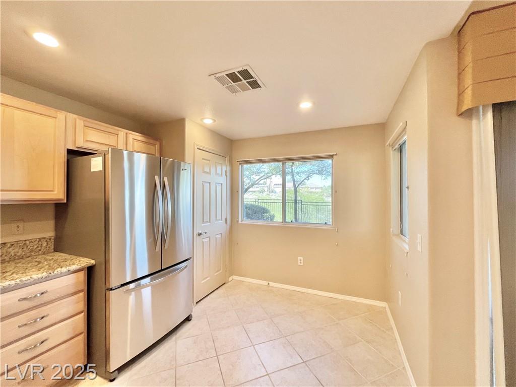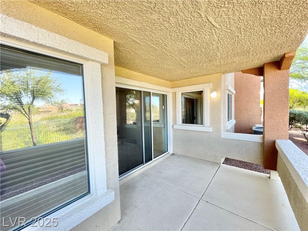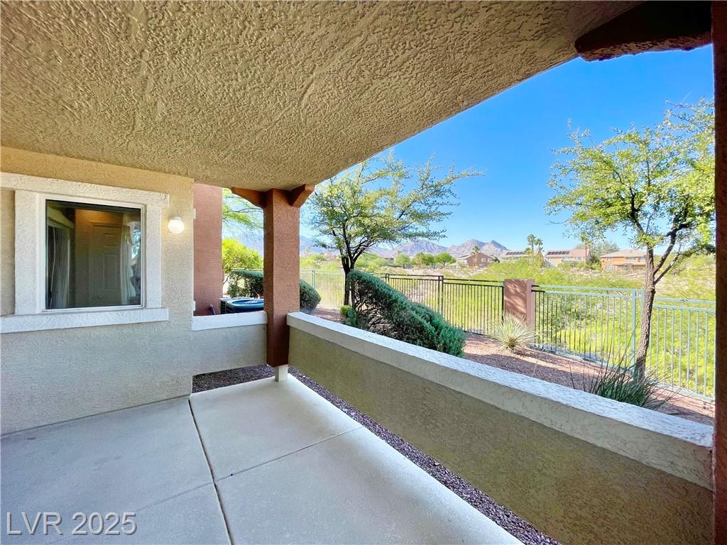 Stunning 2 bed, 2 full bath condo with beautiful desert and mountain views! This First floor unit with No neighbors in the back, is located in the gated community of Amber Ridge in Summerlin. Some features include granite counter tops, stainless steel appliances, tile flooring and carpet in bedrooms. Primary bath with walk-in closet, double sinks, separate shower and tub. Other features include Ceiling fans, spacious separate laundry room, water softener system, covered patio and Attached Tandem 2-car garage. Community amenities include pool, spa, covered patios, barbeques, gym and more!! One small pet considered. All appliances included and Move In Ready!