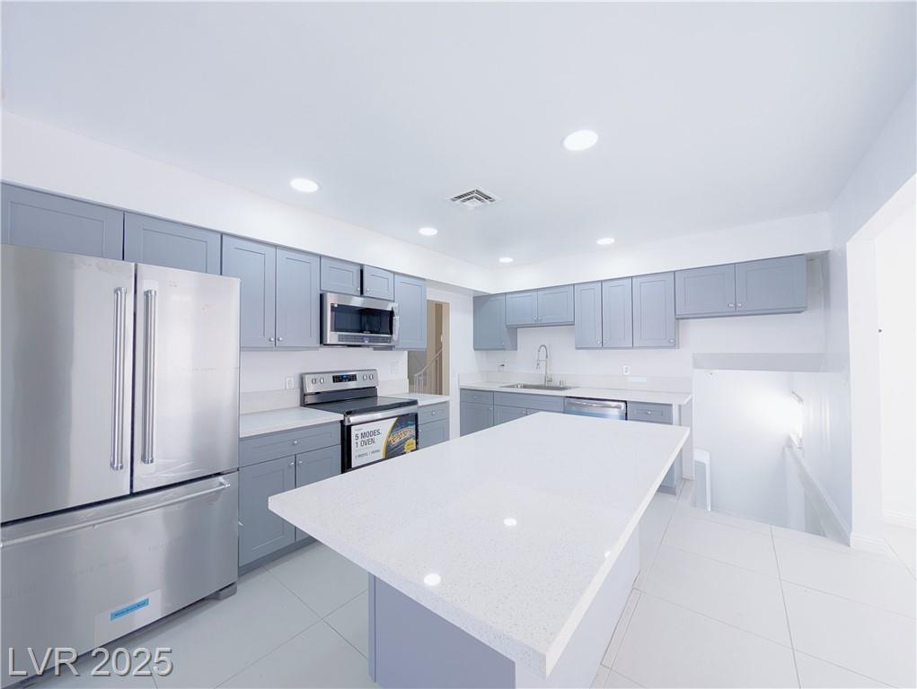 This beautifully upgraded tri-level home offers rare versatility and modern living in a highly convenient location. Featuring brand-new 24x24 porcelain tile flooring throughout the first floor, a fully remodeled kitchen with new gray cabinets, quartz countertops, and stainless steel appliances. The basement includes a full kitchen and bathroom, ideal for guests, multi-generational living, or rental income. Step outside to your private backyard pool, perfect for relaxing or entertaining. Located near schools, shopping, freeway access, and local parks, this home combines comfort, flexibility, and convenience. A truly move-in ready gem with a unique layout that stands out!