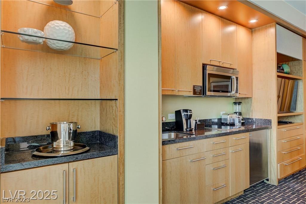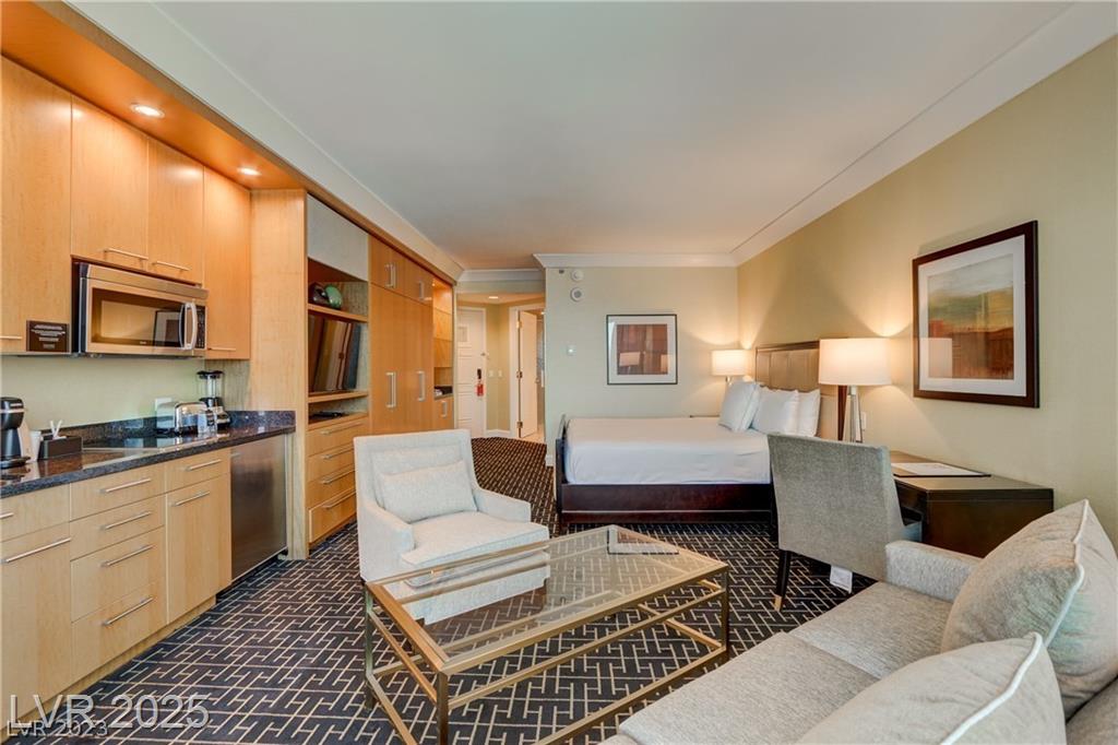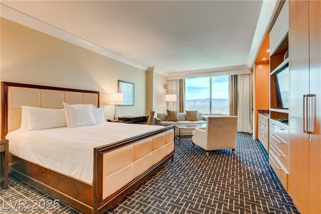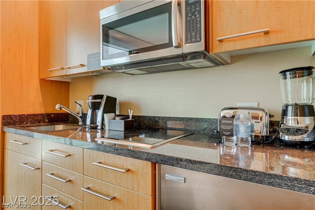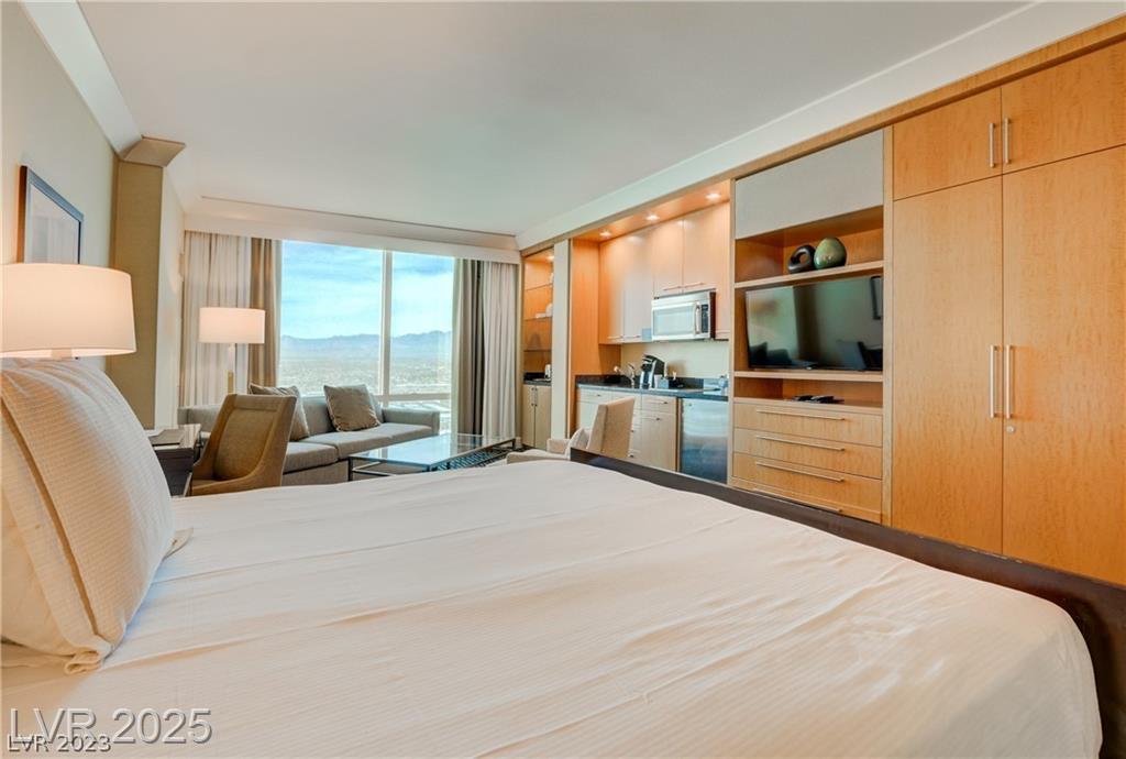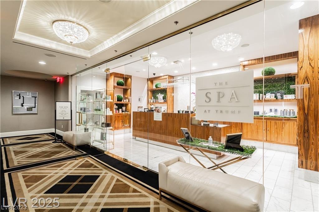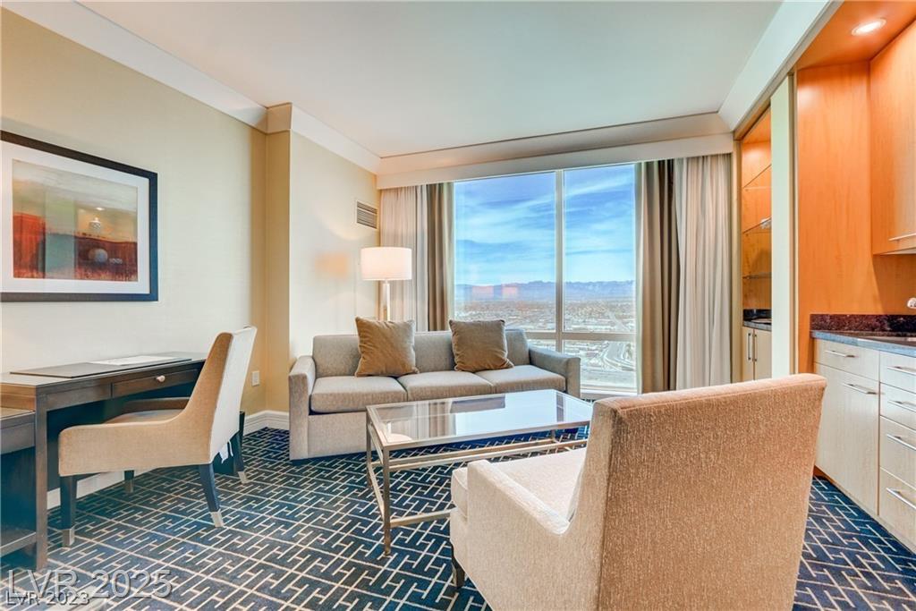Luxurious High Rise living at the Trump. Spectacular sweeping westward views from the 46th floor. Turn key and fully furnished. Granite counters in kitchenette, SS appliances, 24 hour security, concierge and in suite dining. Signature restaurant in Hotel lobby along with luxurious Spa, fitness center and gift shop. Shuttle available to Wynn and Caesars Palace. Just steps away from the Fashion Show Mall.