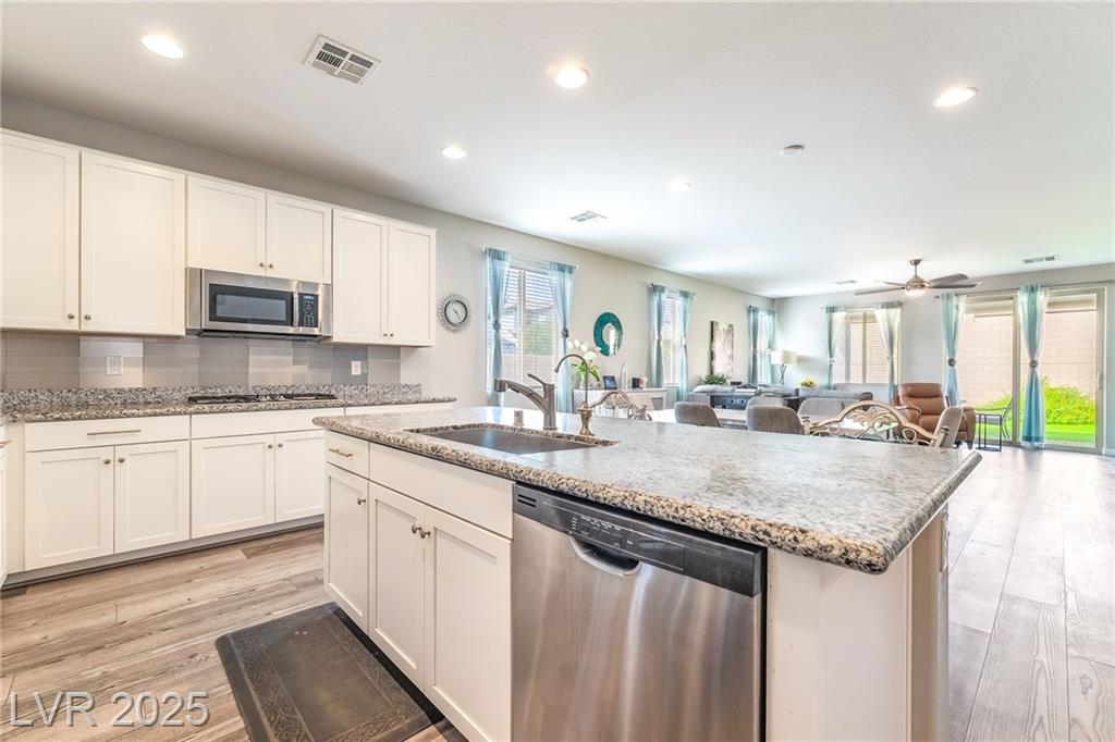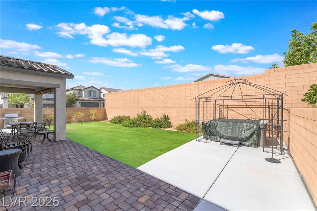 Gorgeous, like new, Single story home in gated community 2019 built almost 2000 sf*Corner lot & Cul-De-Sac*Upgrades galore*Open floor plan flows easily from kitchen to great room for entertaining, with huge office or den*Large center-meet (2 panel) sliding doors at great room*10' ceilings & 8' doors throughout*Beautiful Waterproof Luxury Rigid Core Vinyl Plank and upgraded carpet throughout* Contemporary shaker style cabinets w/crown moulding, door hardware*Custom Granite counter tops in kitchen and island with backsplash* Stainless steel appliances package with refrigerator included*Large walk in pantry* Stylish lighting and ceiling fans in every room*Luxurious master bath includes walk in shower*Inviting professionally landscaped backyard with extended patio cover, artificial low maintenance turf, multiple fans, and cozy SPA for hanging out*Why wait 6 to 8 month for a new build when you can have this turn key home. Super Walmart, restaurants, parks & rec minutes away.