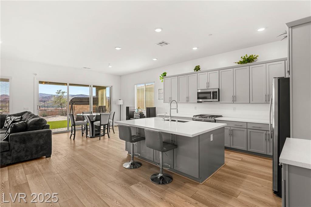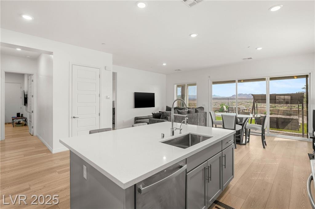 Highly upgraded, move-in ready modern single-story home in the gated Reverie at Lake Las Vegas! This home features 4 bedrooms and 3 baths, including a private Next Gen suite with its own entrance, garage, kitchenette, washer/dryer, and living space, perfect for guests, multi-generational living, or rental use. The open floor plan showcases luxury hardwood flooring throughout, and the backyard is ideal for relaxation or entertaining, with a fully paved patio, covered seating area, and scenic views with no rear neighbors. Located in the award-winning, 320-acre, golf-cart-friendly master-planned community of Lake Las Vegas, residents enjoy water sports, dining, shopping, and entertainment. Don’t miss this opportunity to experience the elevated lifestyle that Lake Las Vegas has to offer. Schedule your private tour today!