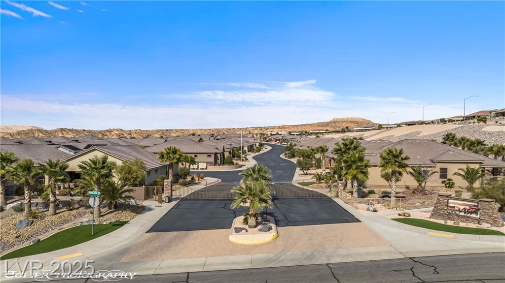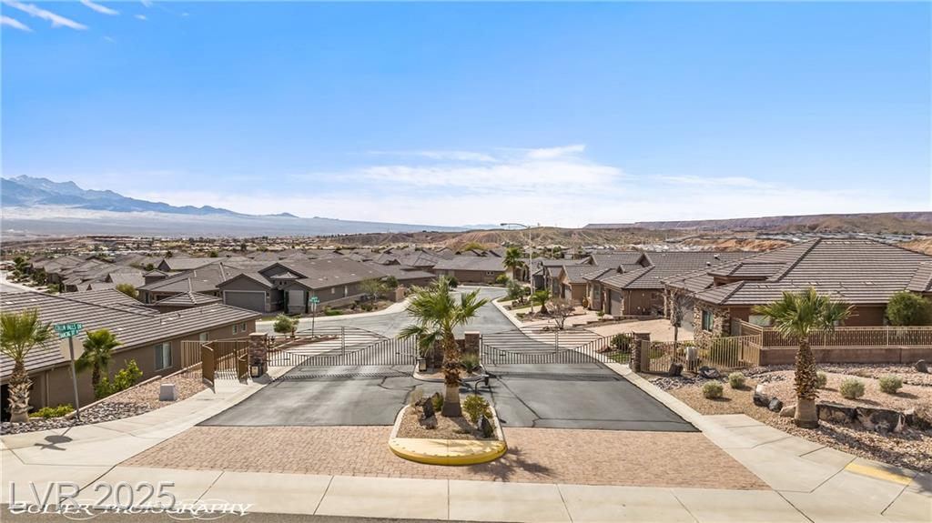 From Las Vegas, take I-15 North toward Salt Lake City. Continue approximately 80 miles to Exit 120 (Falcon Ridge Pkwy) in Mesquite. Turn left onto Falcon Ridge Pkwy, then right onto Pioneer Blvd. Continue about 1.5 miles, then turn left onto Royal Vista Trail and left onto Dancing Sky Trail. The home will be on your right inside the Royal Vistas gated community.