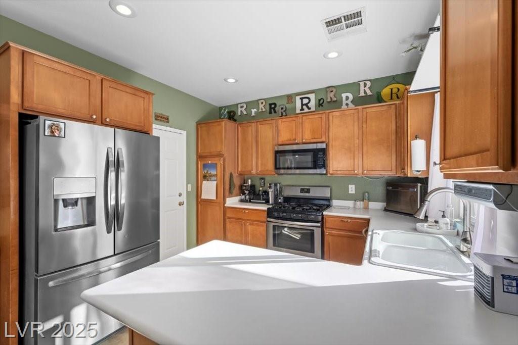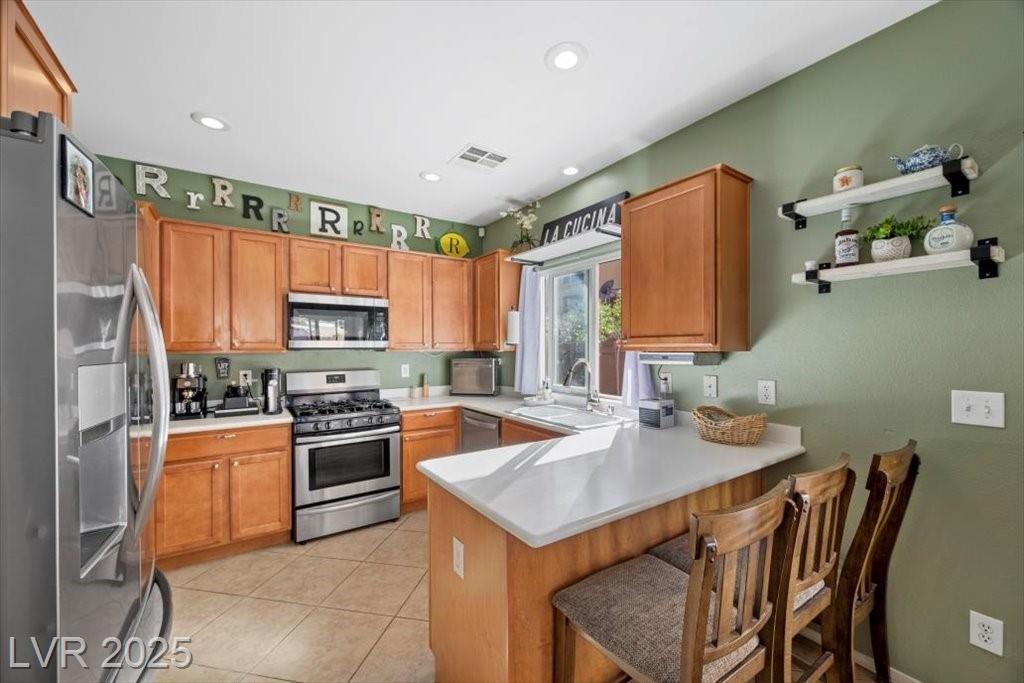 Single-owner home! Welcome to this charming 4 bedroom, 2.5 bath home nestled in the growing and highly desirable Mountains Edge community. 1,558 sq ft of thoughtfully designed space, beauty offers a bright open floor plan, low maintenance backyard, and attached 2 car garage. The kitchen opens to the dining/living area, perfect for entertaining or relaxing evenings at home. Located near William V. Wright Elementary School, Fais Middle School, and Desert Oasis High School. Perfect for buyers seeking strong educational options. The backyard is relaxing with tons of nice shade. This community includes access to "The Club at Yellowstone," which provides multiple pools, a fitness center and as well as an Entertainment Center. Parks, trails, and family events are only just minutes from your door. Schedule your private showing today!