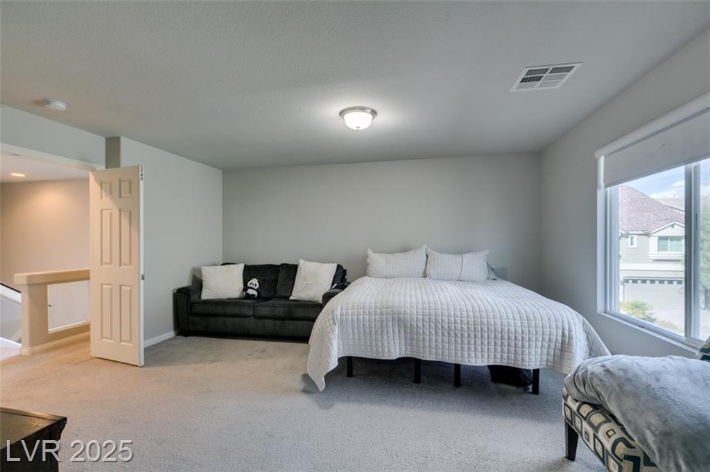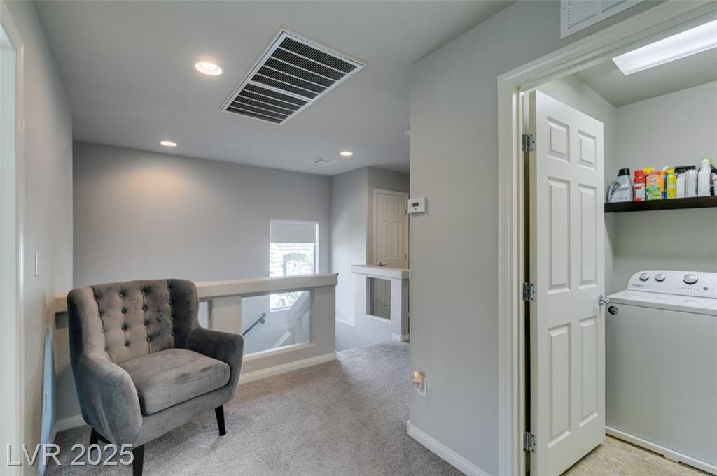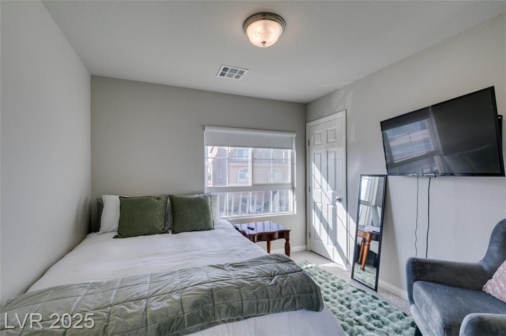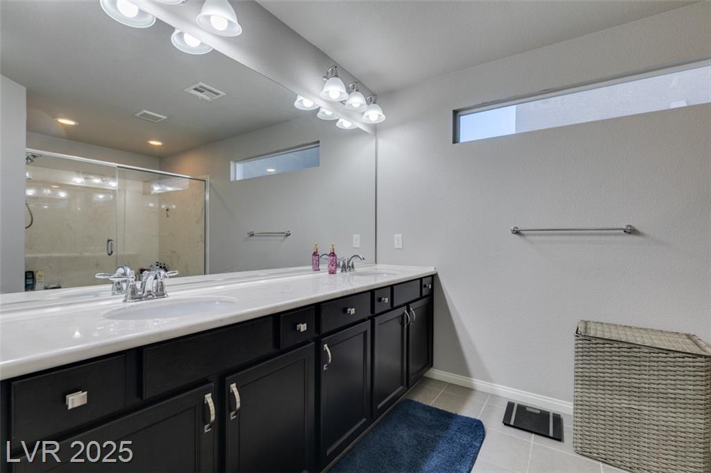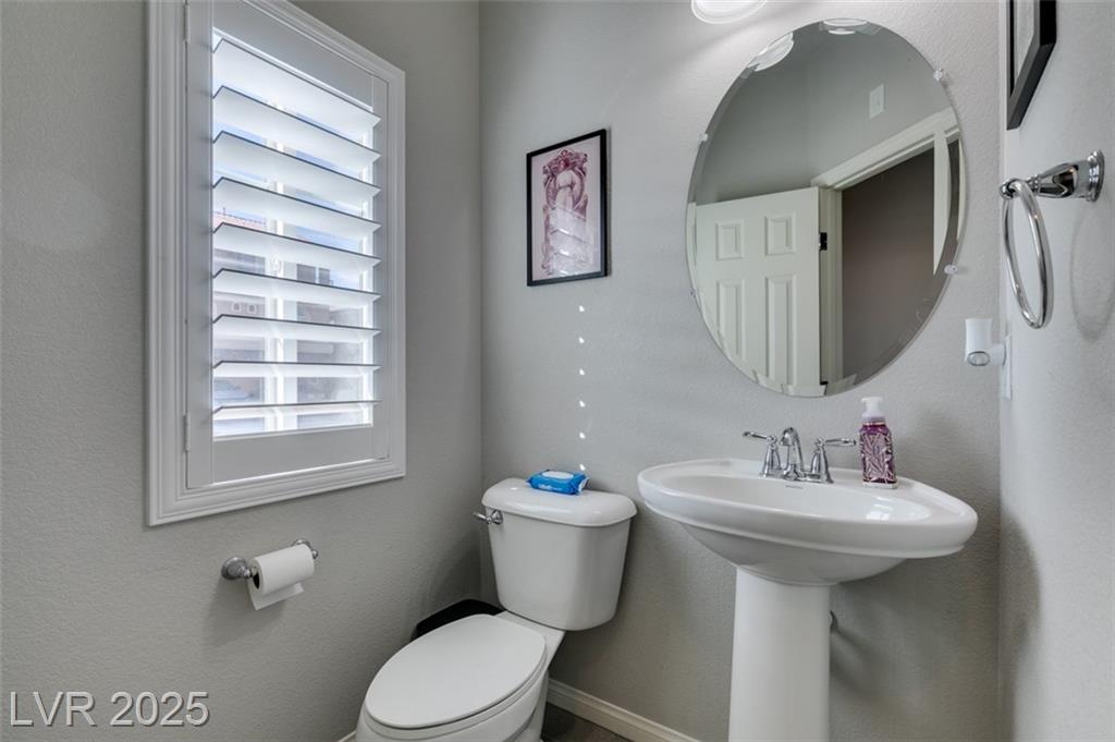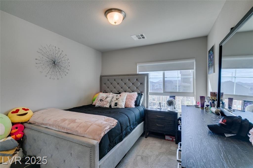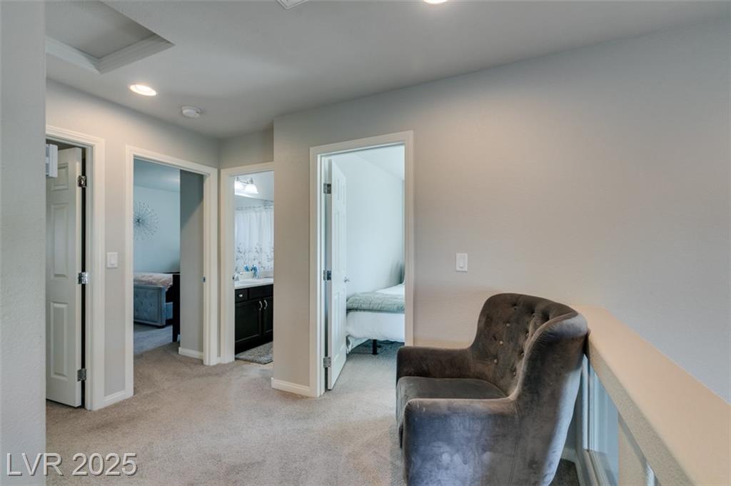 Located in a desirable Southwest Las Vegas neighborhood, this bright and inviting 4-bedroom, 2.5-bath home sits prominently on a corner lot, offering enhanced curb appeal. Open-concept main floor combining living, dining, and kitchen areas — great for entertaining Kitchen with island or breakfast bar, generous cabinet space, pantry, and modern appliances living / family room provides flexible spaces with a modern fireplace Powder room (half bath) conveniently located on the main level Upstairs: four bedrooms and two full bathrooms Primary bedroom with en-suite bath: dual vanities, & walk in shower, walk-in closet Secondary bedrooms are a good size, with ample closet space There is a full bath with duel sinks upstairs to serve the other 3 bedrooms